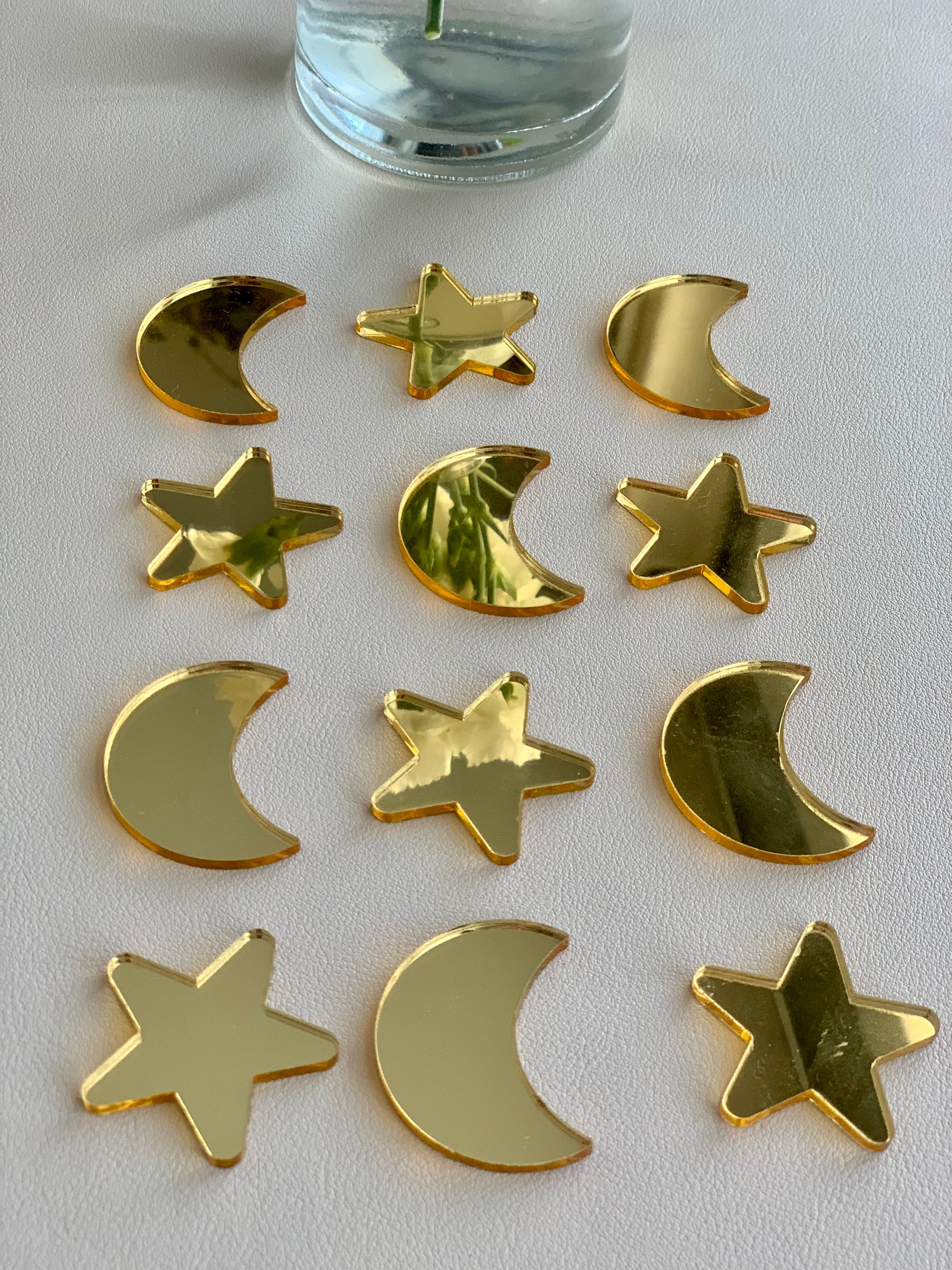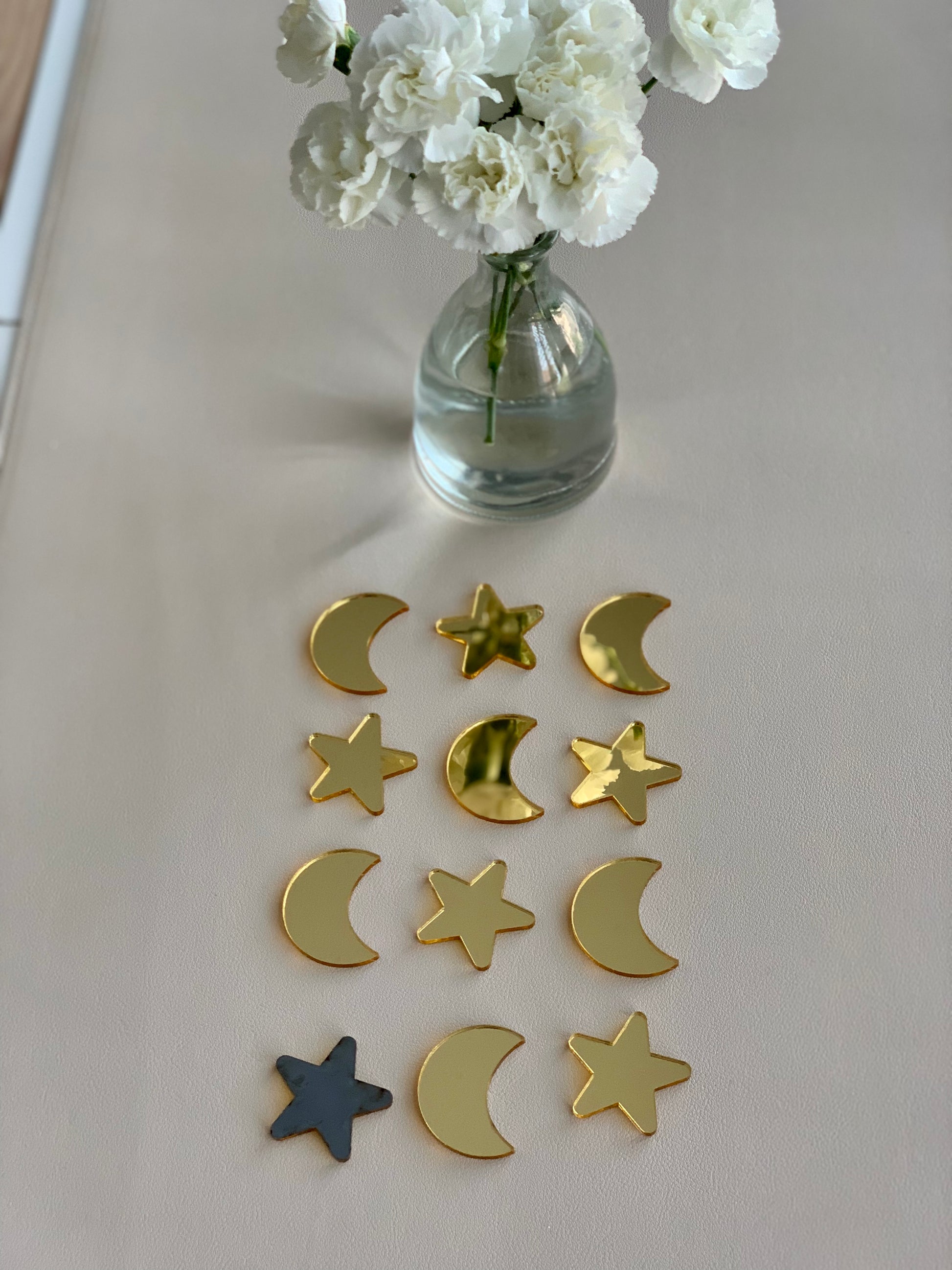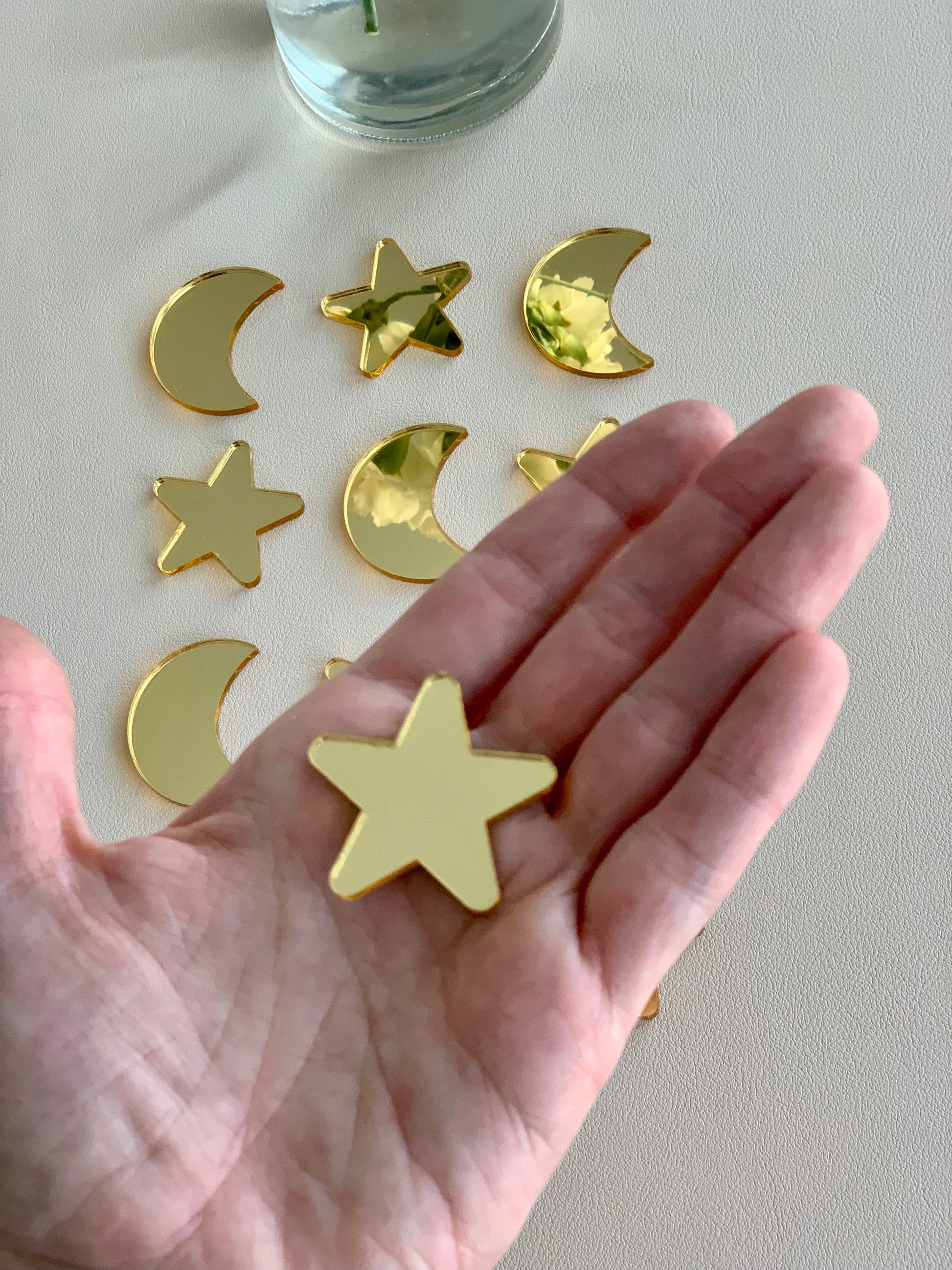Gold Moons & Stars Acrylic Shapes / Loose Parts