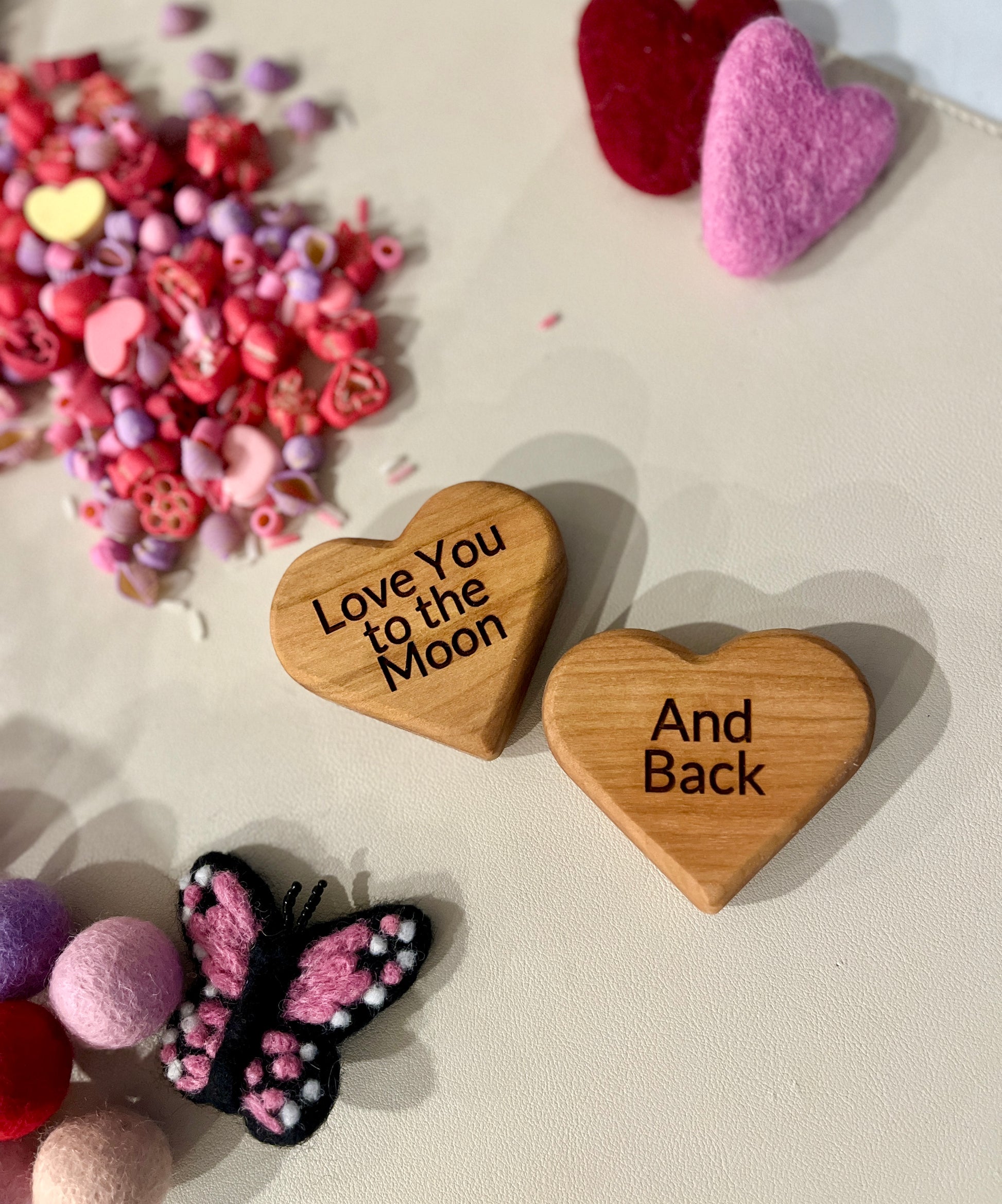 Each heart is meticulously crafted from high-quality cherry or maple wood, providing a timeless and durable token of affection. Express your feelings in a truly unique way by customizing these hearts with names, dates, or special messages. Whether it's a declaration of love, a cherished memory, or a whimsical phrase, our personalized wooden conversation hearts are the ideal keepsake for any occasion. Explore the beauty of heartfelt expression through the warmth of wood, creating lasting memories that will be cherished for years to come.