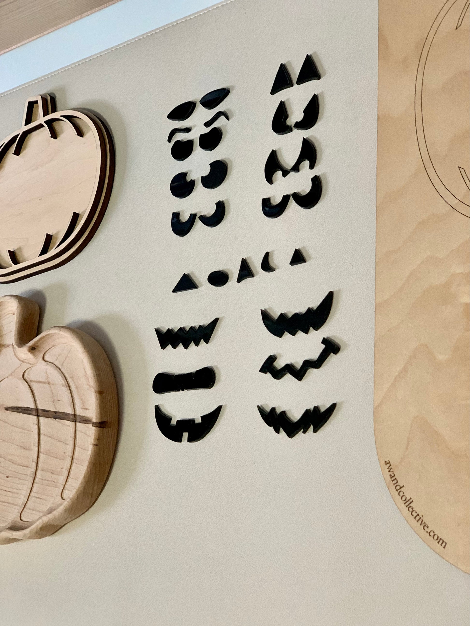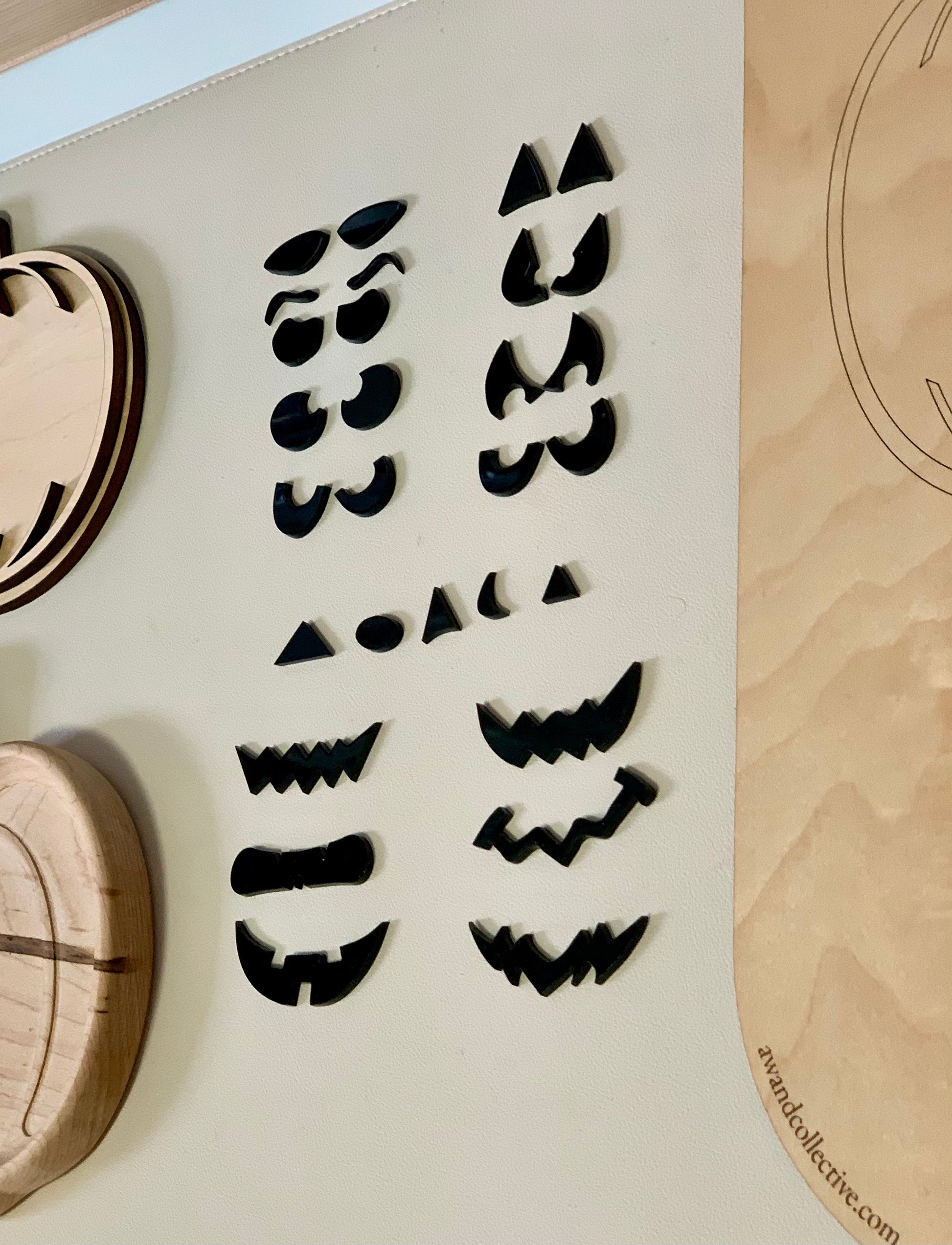 Laser Cut Shapes for Loose Parts in Sensory Play. Build a jack o lantern and decorate your pumpkin tray or flisat inserts.