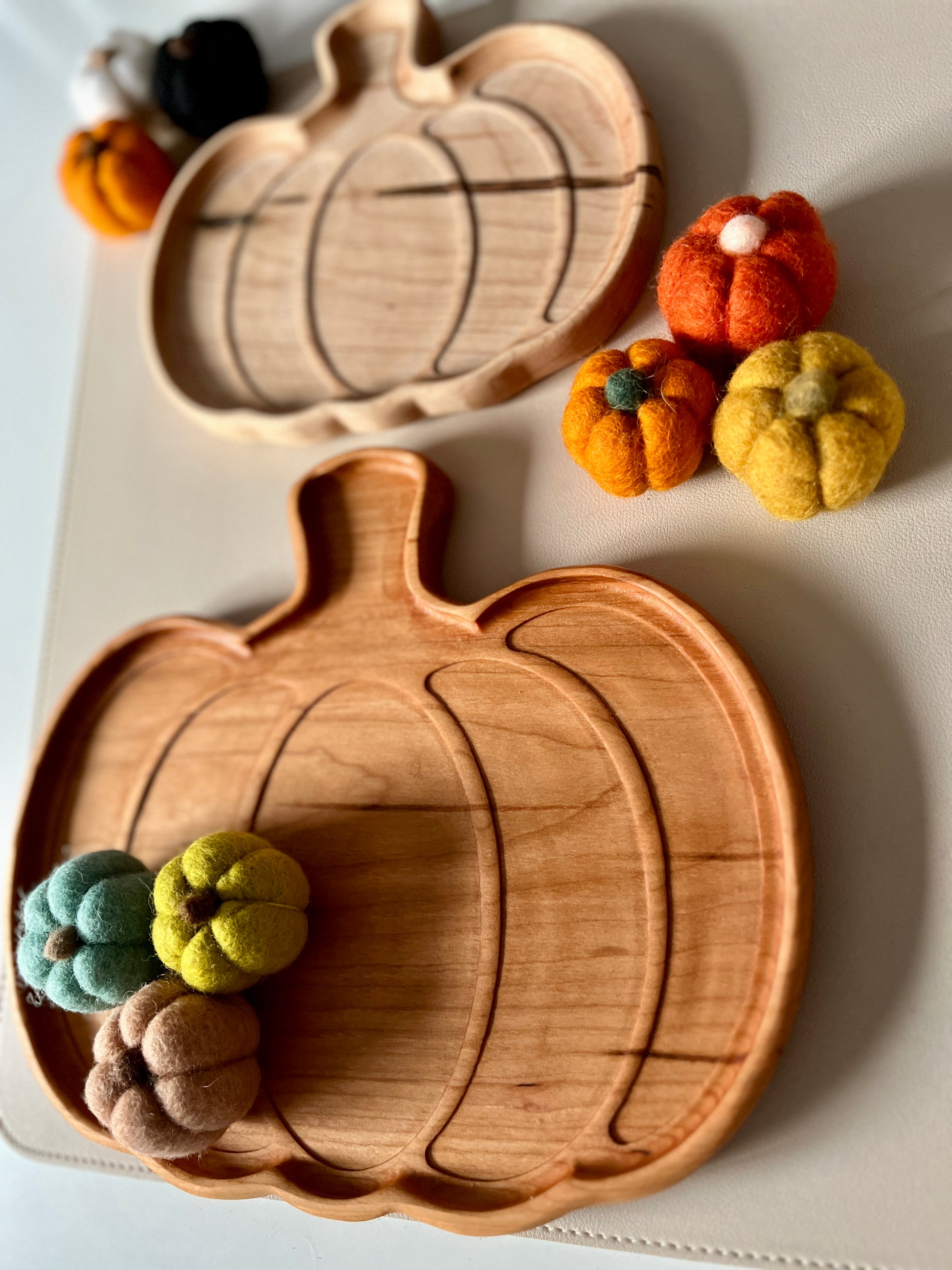Pictured here with some of our felt pumpkins and our regular size pumpkin tray.