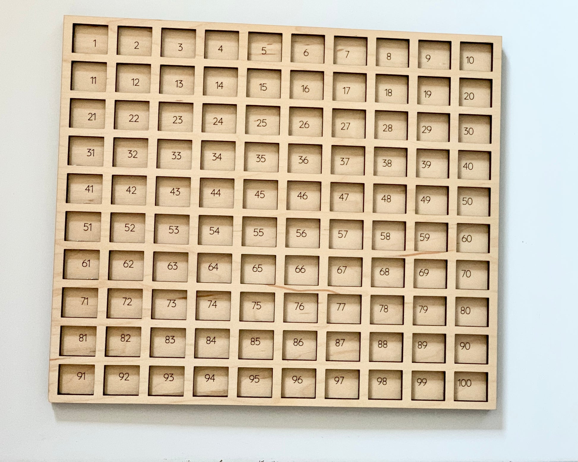 Beautiful hundred board crafted completely in house. Use to help with hand eye coordination, early math, early coding, counting, sorting, sensory play, learning colours and more.