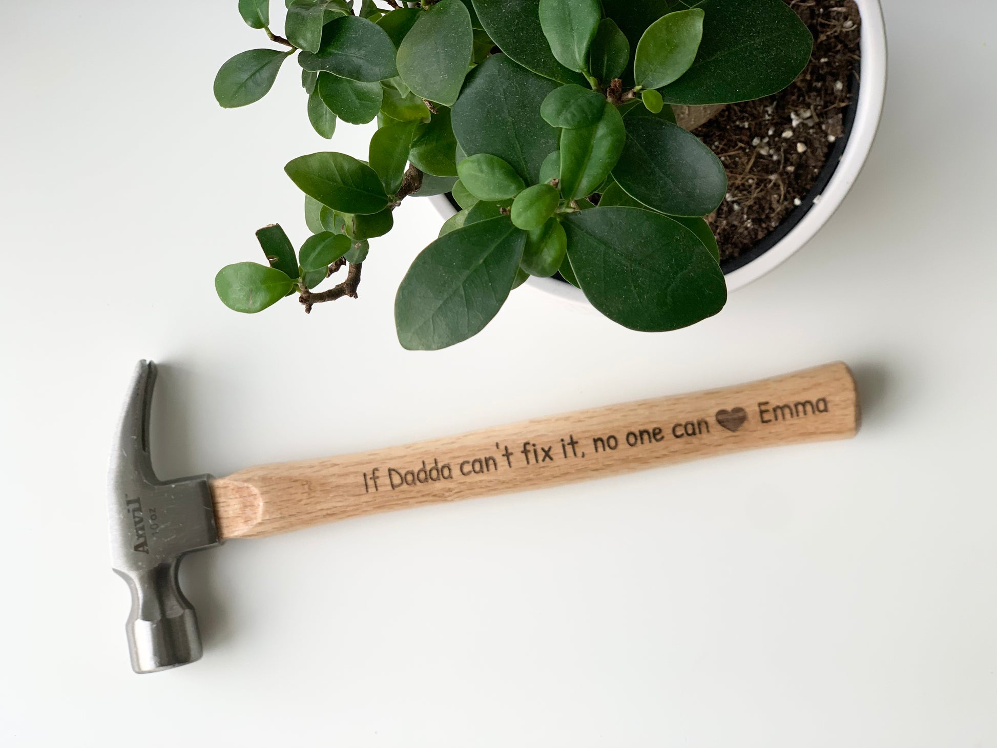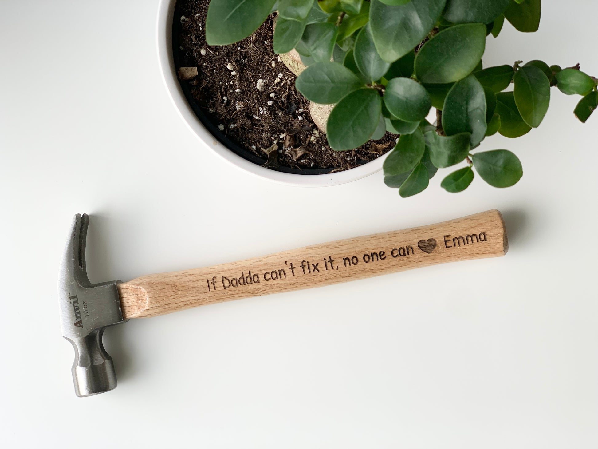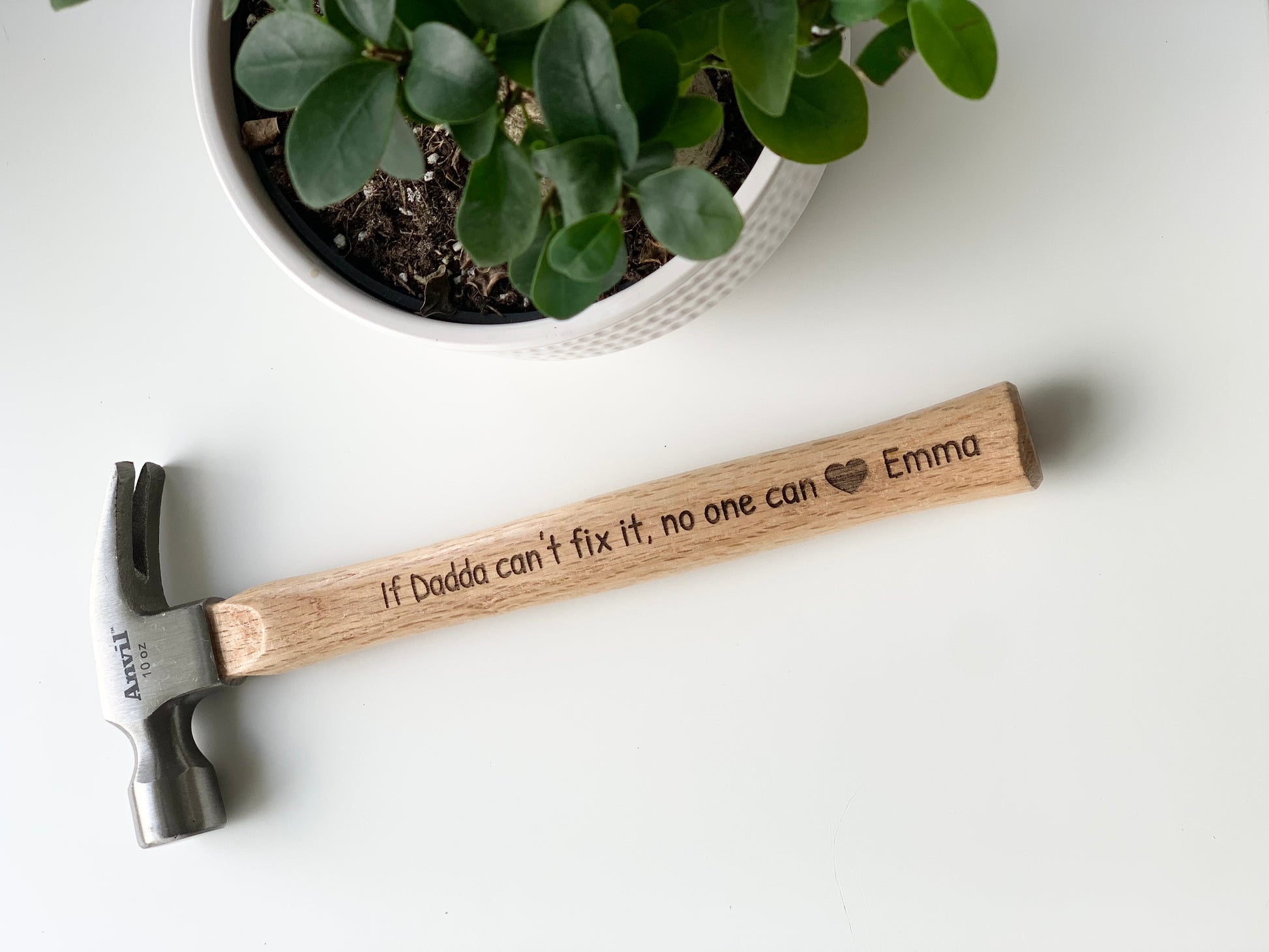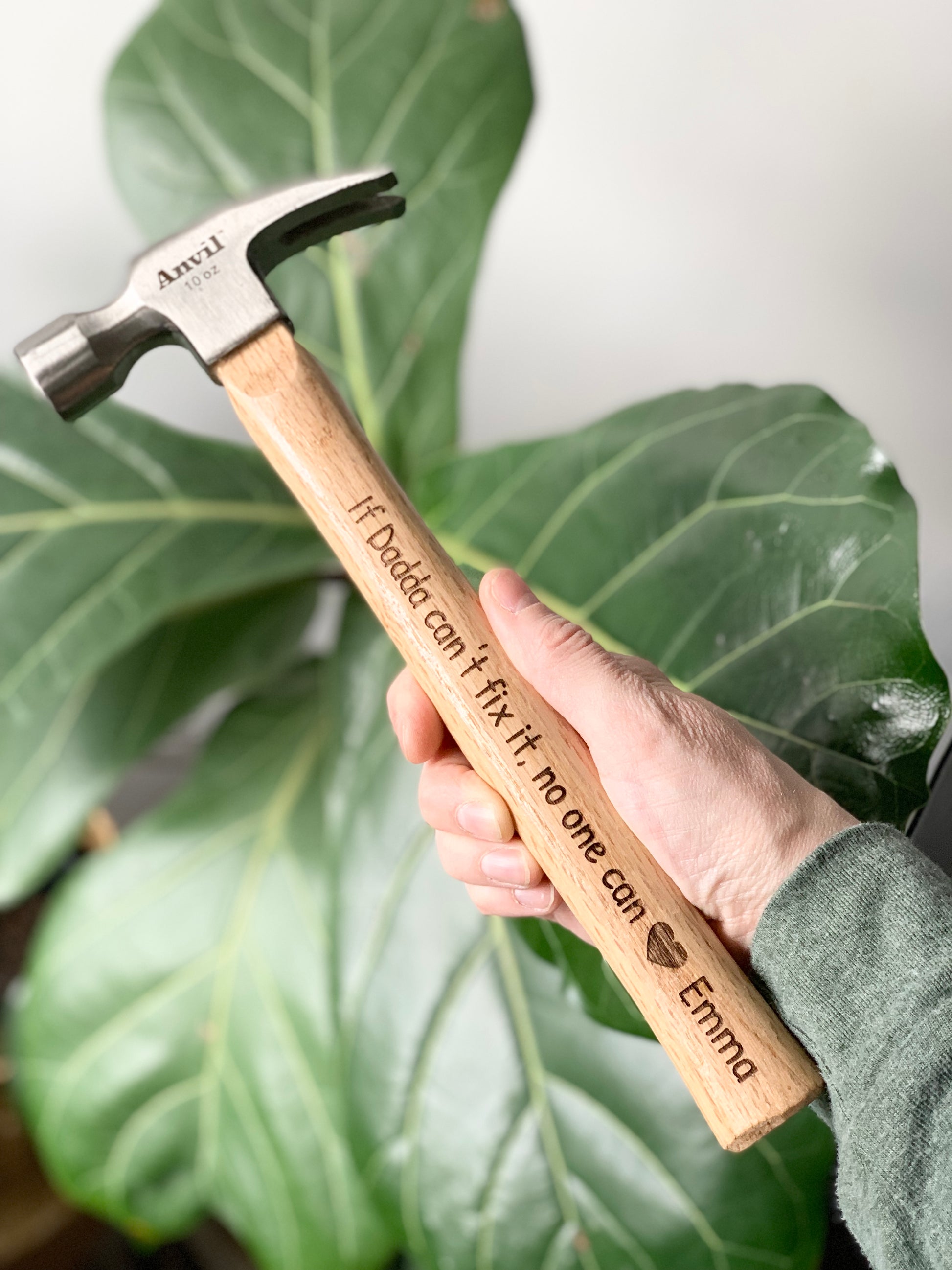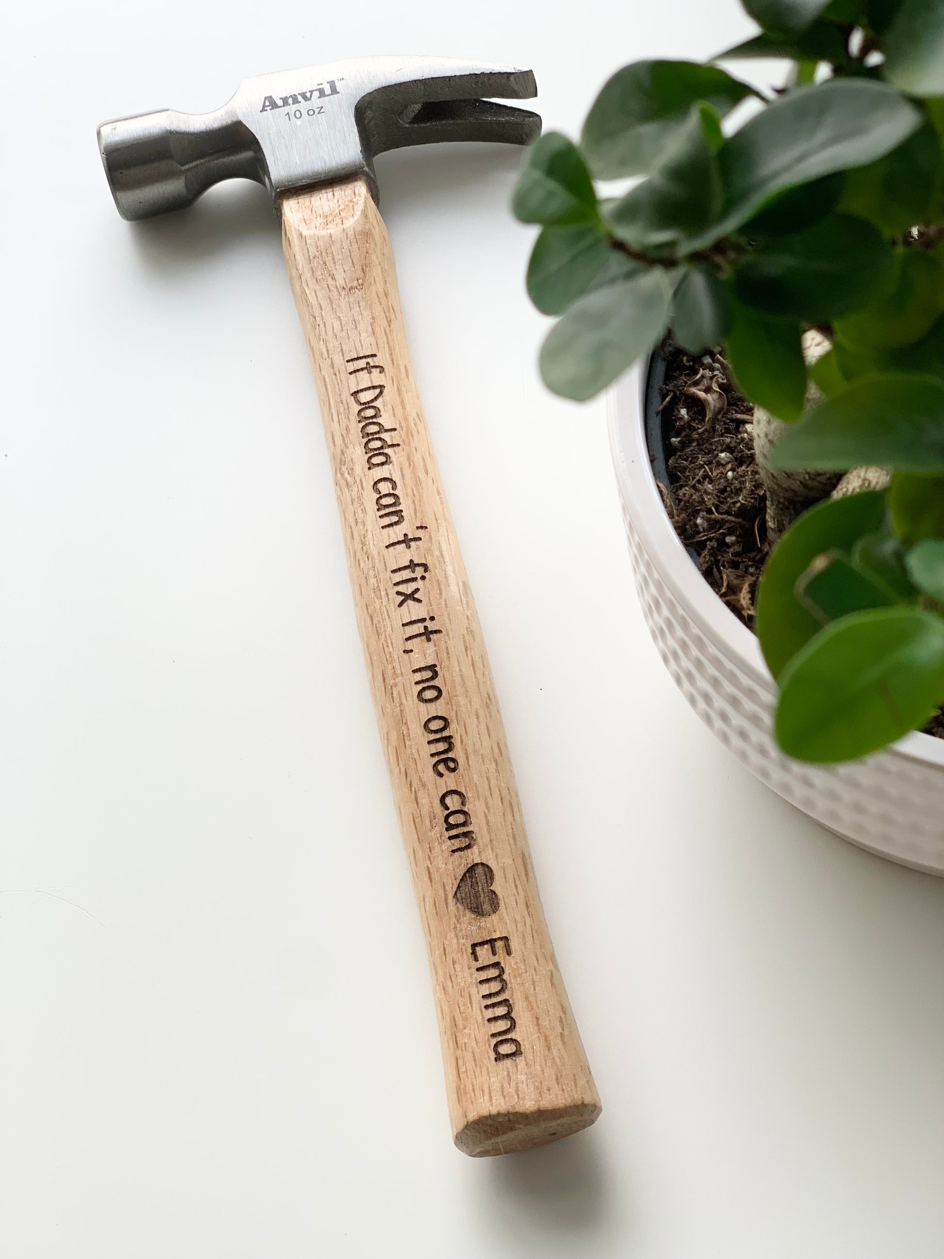 Personalized Hammer with your own custom message laser engraved into the handle. This custom hammer is a great gift for the woodworker in your life. Whether it be for Mother’s or Father’s Day, Gifts for Grandpa or Grandpa, this is the perfect unique and personalized gift for that handy person in your life. It also makes a good 5th “wood” Anniversary gift!!!