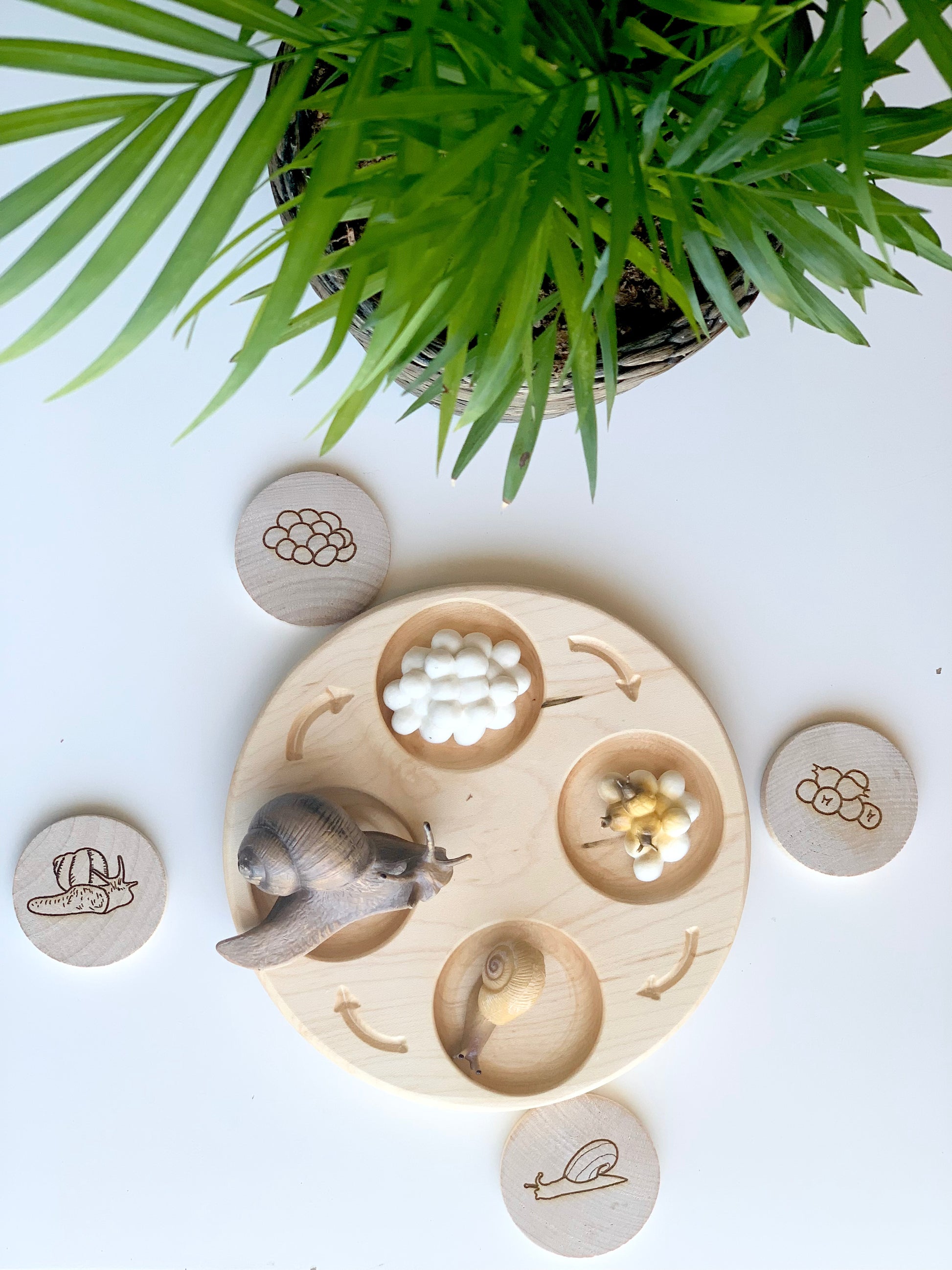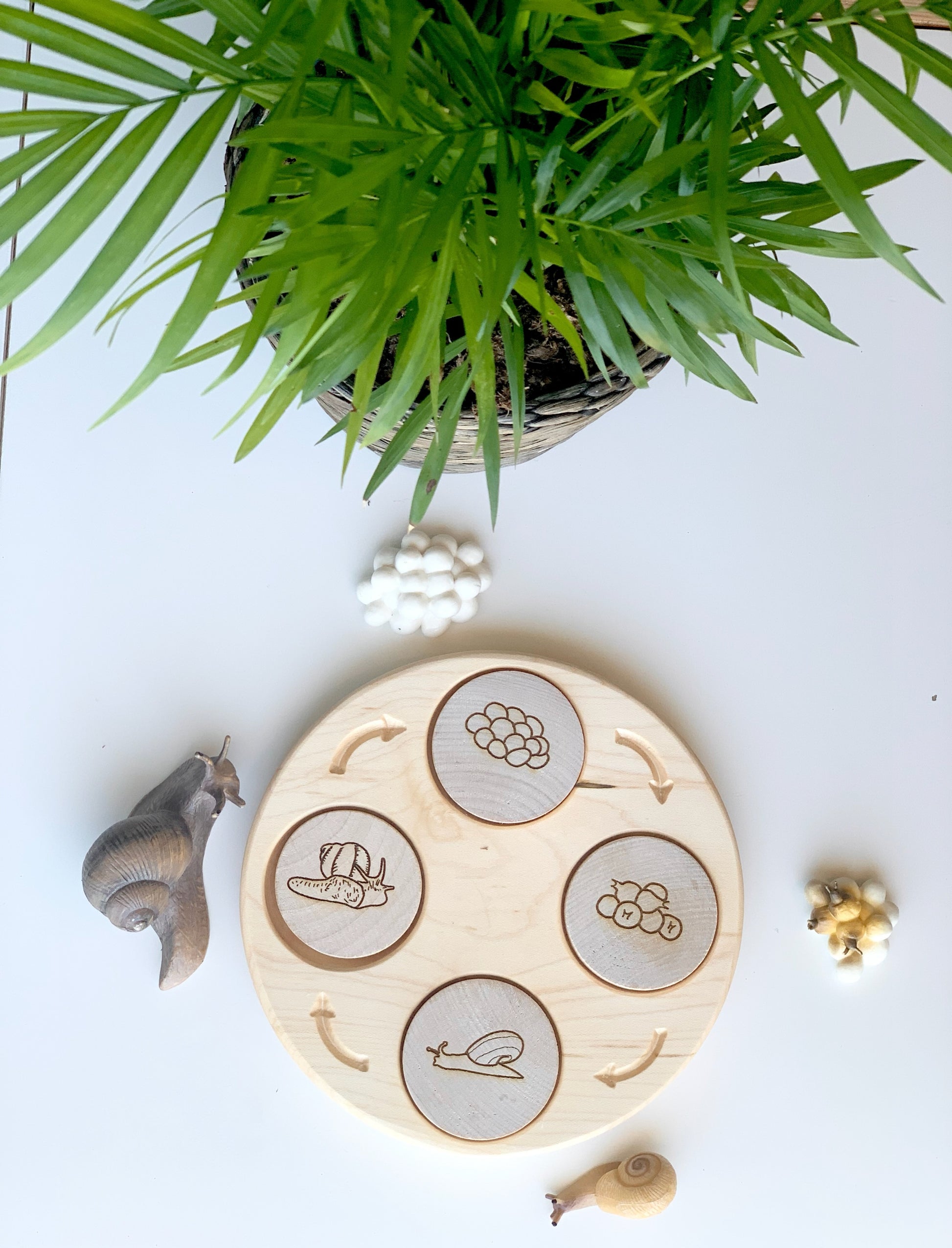 - Life Cycle Tray is 6.6” in diameter. The holes are a little over 2” in diameter and fit our life cycle memory game discs perfectly.