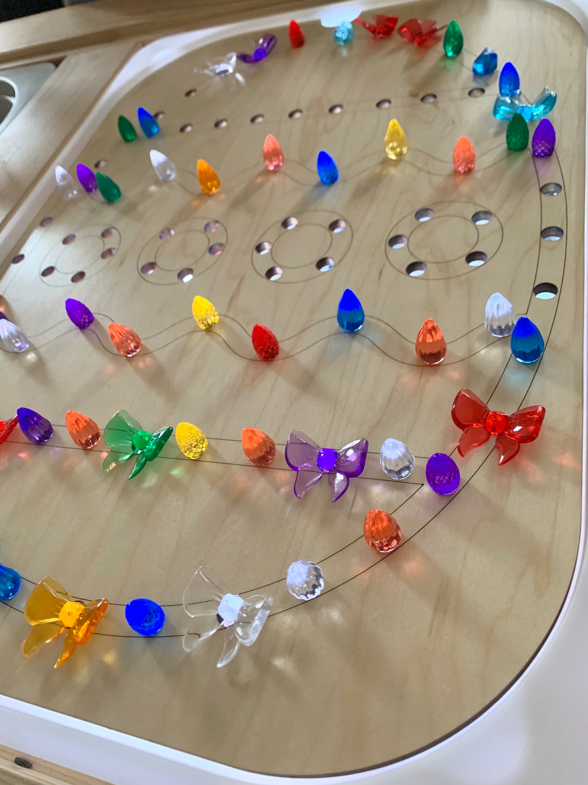 AWandCo is my go-to shop for these types of items. I feel like I am always asking for custom changes, which have always been accomodated. This tray is beautiful, sturdy and my little one loves it to trace and bring with us where ever we go. I also purchased the traceable name acyrlic insert and it has peaked my daughter’s interest in learning her name.