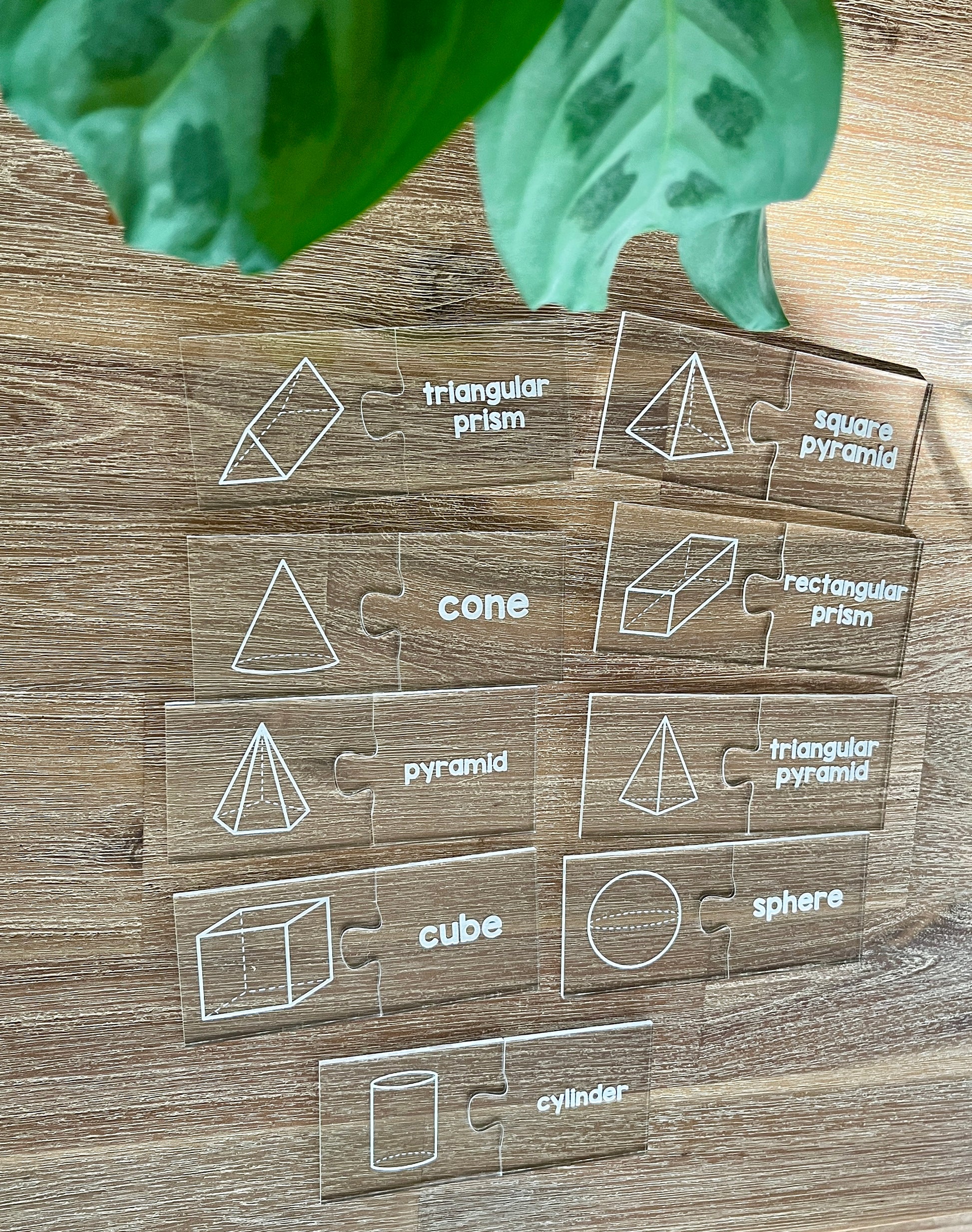 Make learning 3D shapes hands on, visual, and engaging with these dry erasable geometric matching puzzles. Each clear acrylic piece features a beautifully engraved solid shape or corresponding label, designed to help children explore geometry through tactile, interactive play.