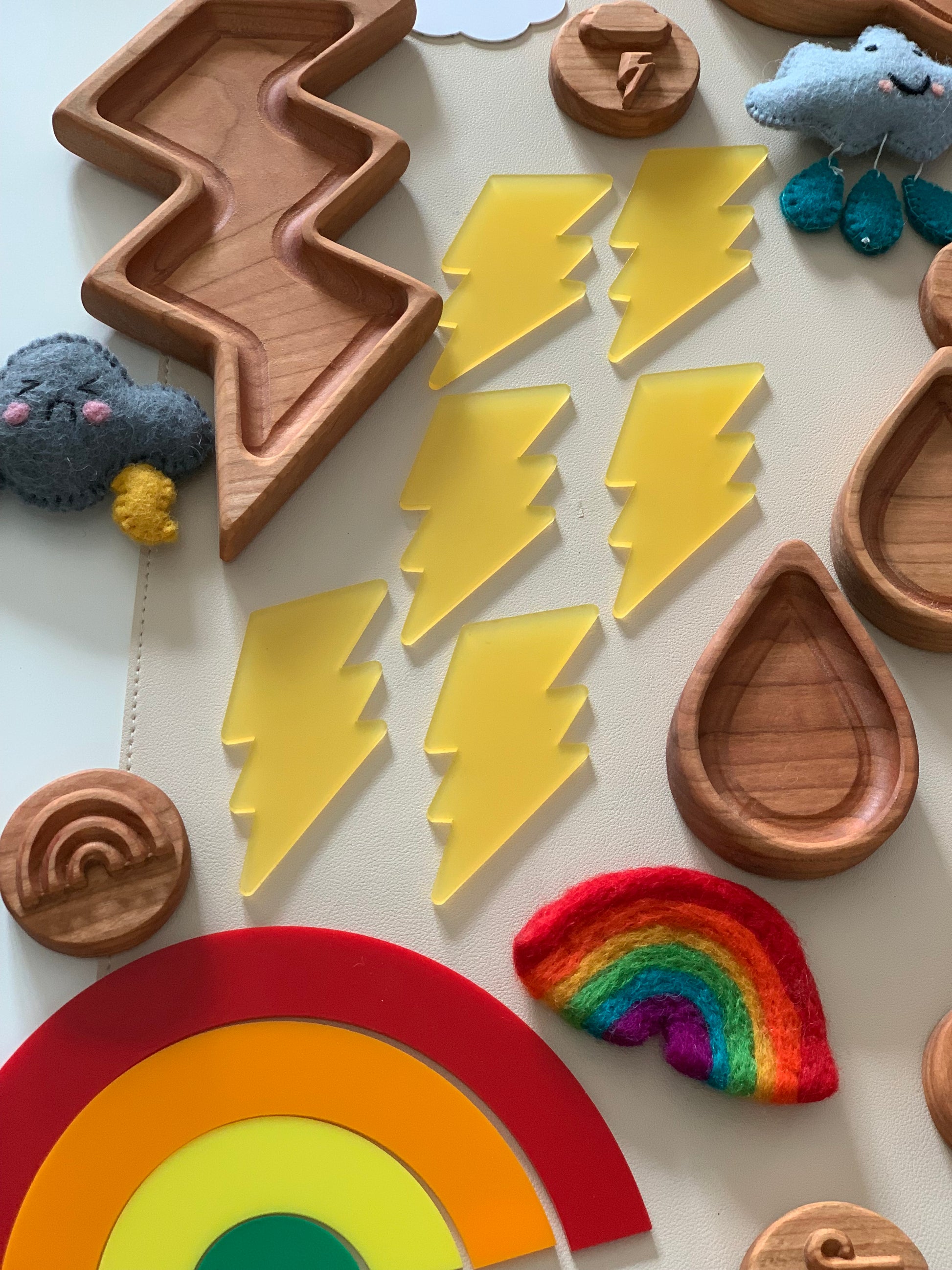 These lightning-shaped dry erase acrylic pieces are an electrifying tool for homeschool and sensory play! Their unique design not only sparks creativity but also adds an exciting twist to learning activities. The high-quality acrylic is both durable and easy to wipe clean, making it perfect for repeated use in a busy homeschool setting.