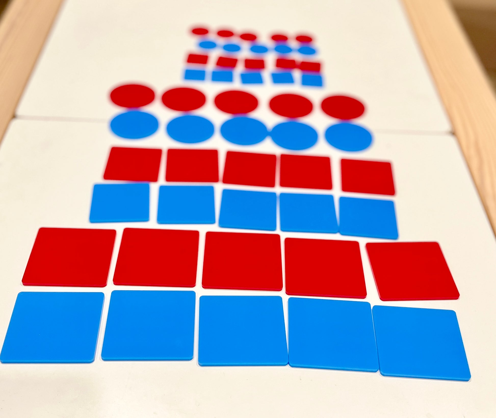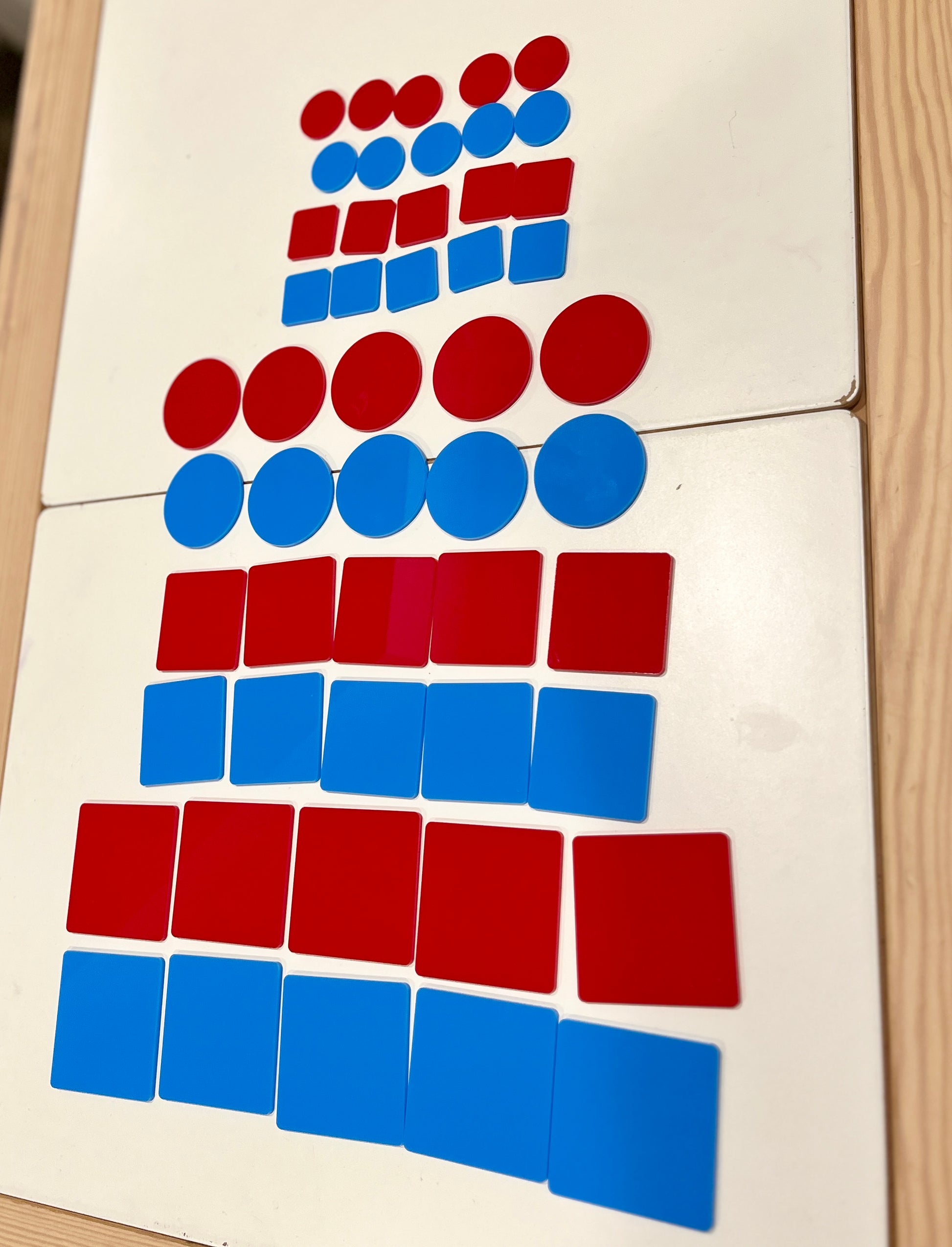 Little Dry Erasables — Set of 10 Montessori Red & Blue Squares or Circles, Multiple Sizes Available