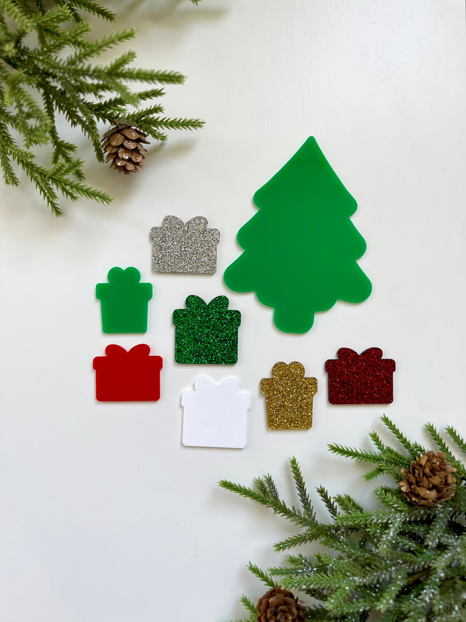 Presents are 1.5 x 1.7, 1.75 x 1.75 and 1.5 x 1.75 inches