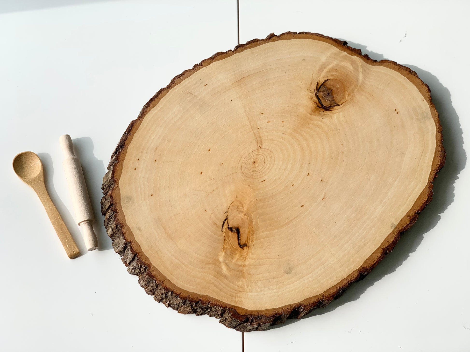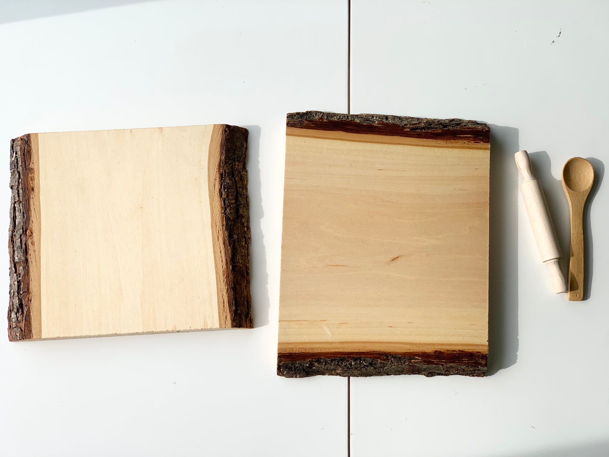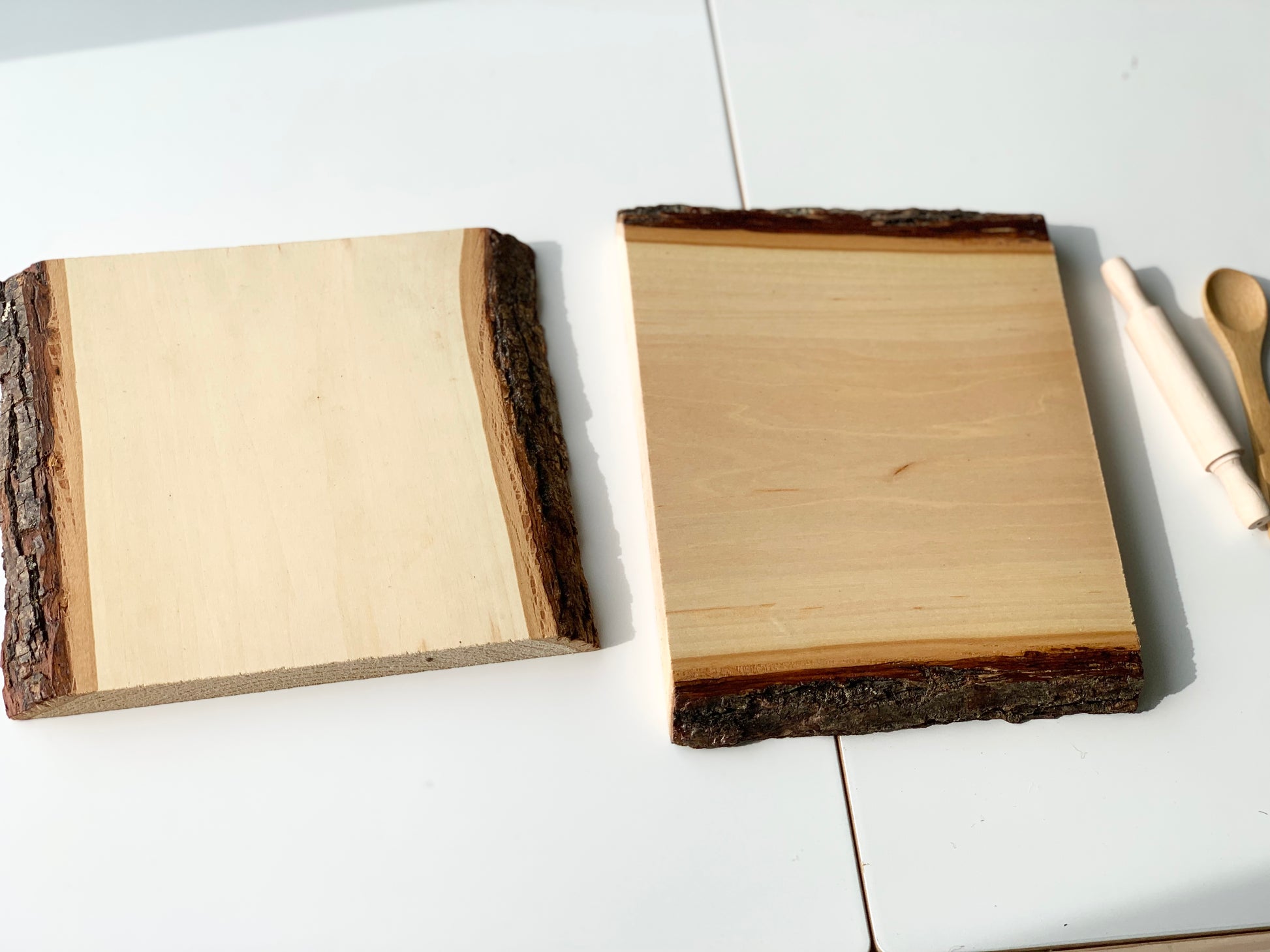 These Live Edge Wood Slices have been clear coated both sides as well as a bit extra on the bark edges. They are perfect for a simple play tray for play dough etc. They are not considered food safe.