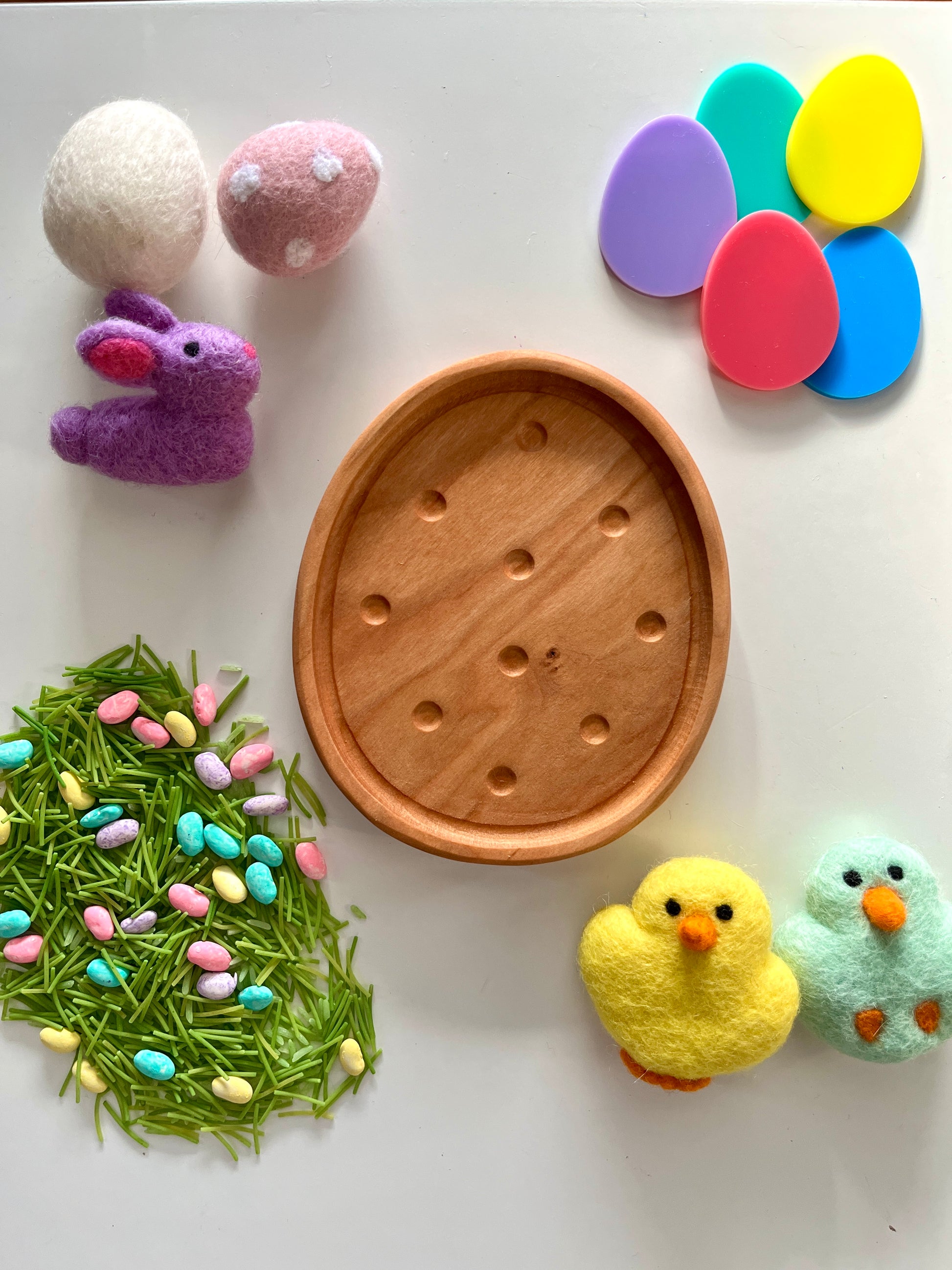 Wooden Easter Egg Sensory Tray – Perfect for Easter & Spring Play!
