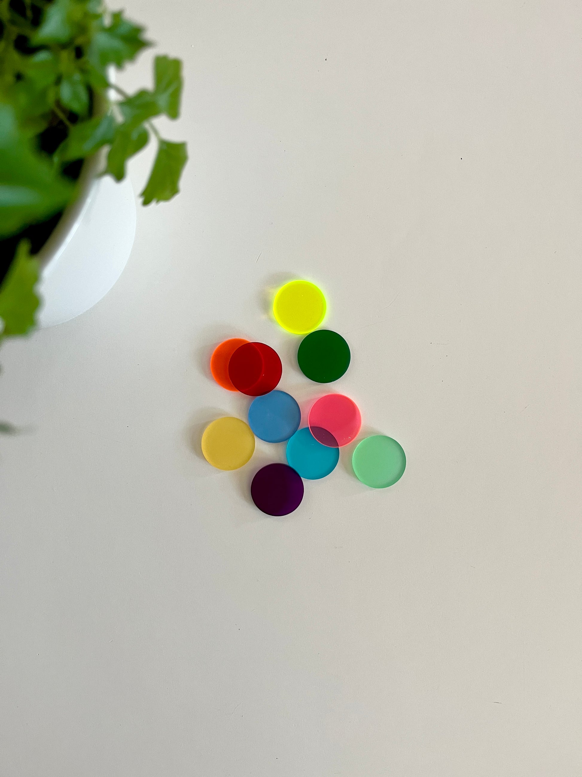 Little Dry Erasables — Set of 10 Translucent Rainbow Squares or Circles / Discs, Multiple Sizes Available