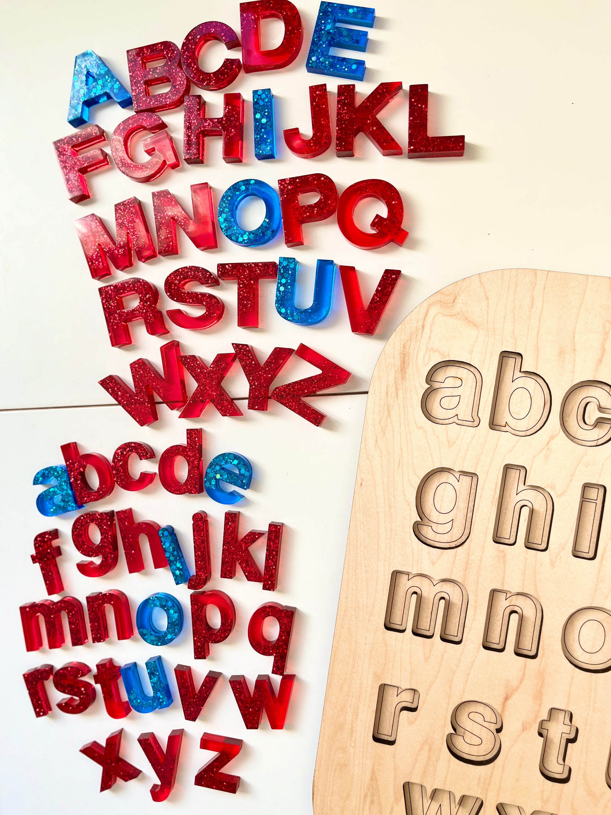 Montessori Resin Alphabet • Uppercase or Lowercase Movable Alphabet Set • Fits Resin Letter Flisat Insert