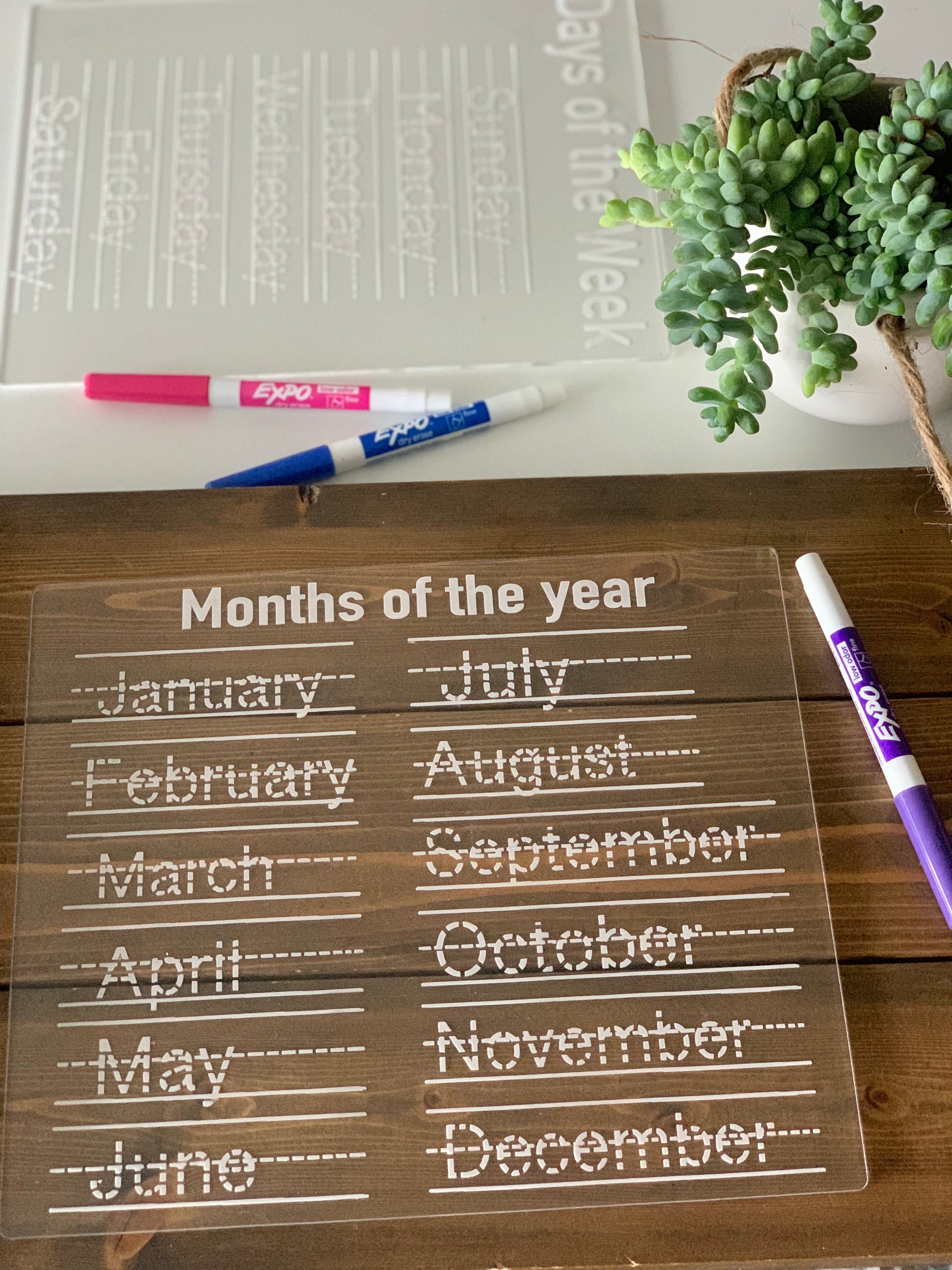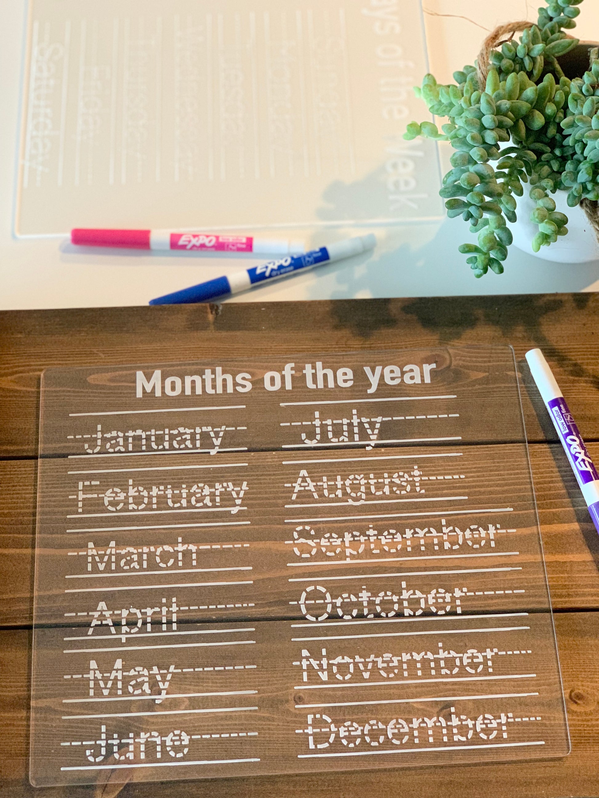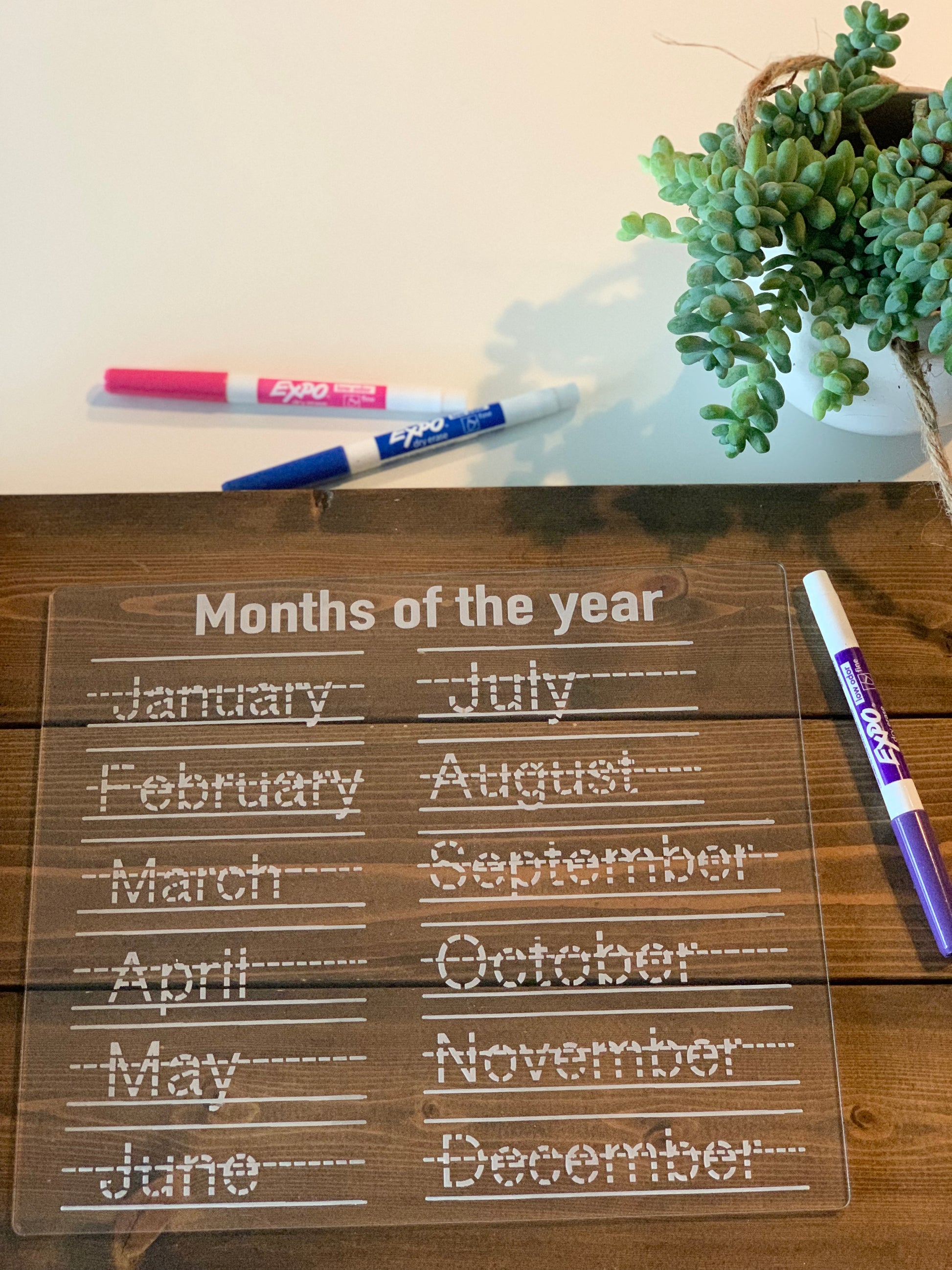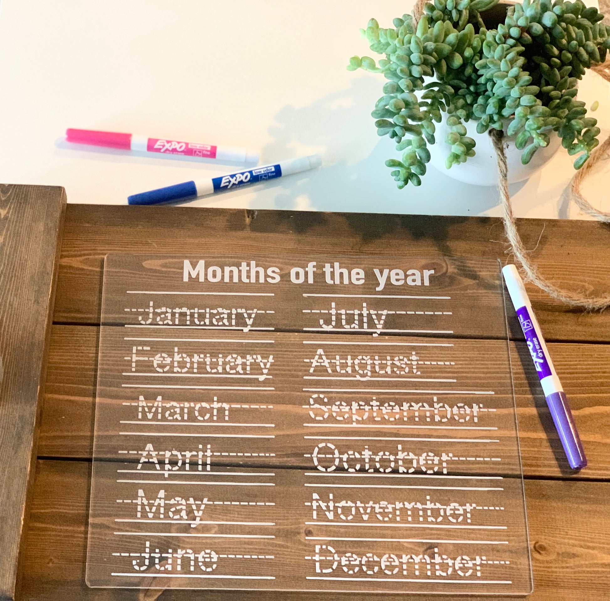 Months of the Year Acrylic Dry Erase Tracing & Writing Board