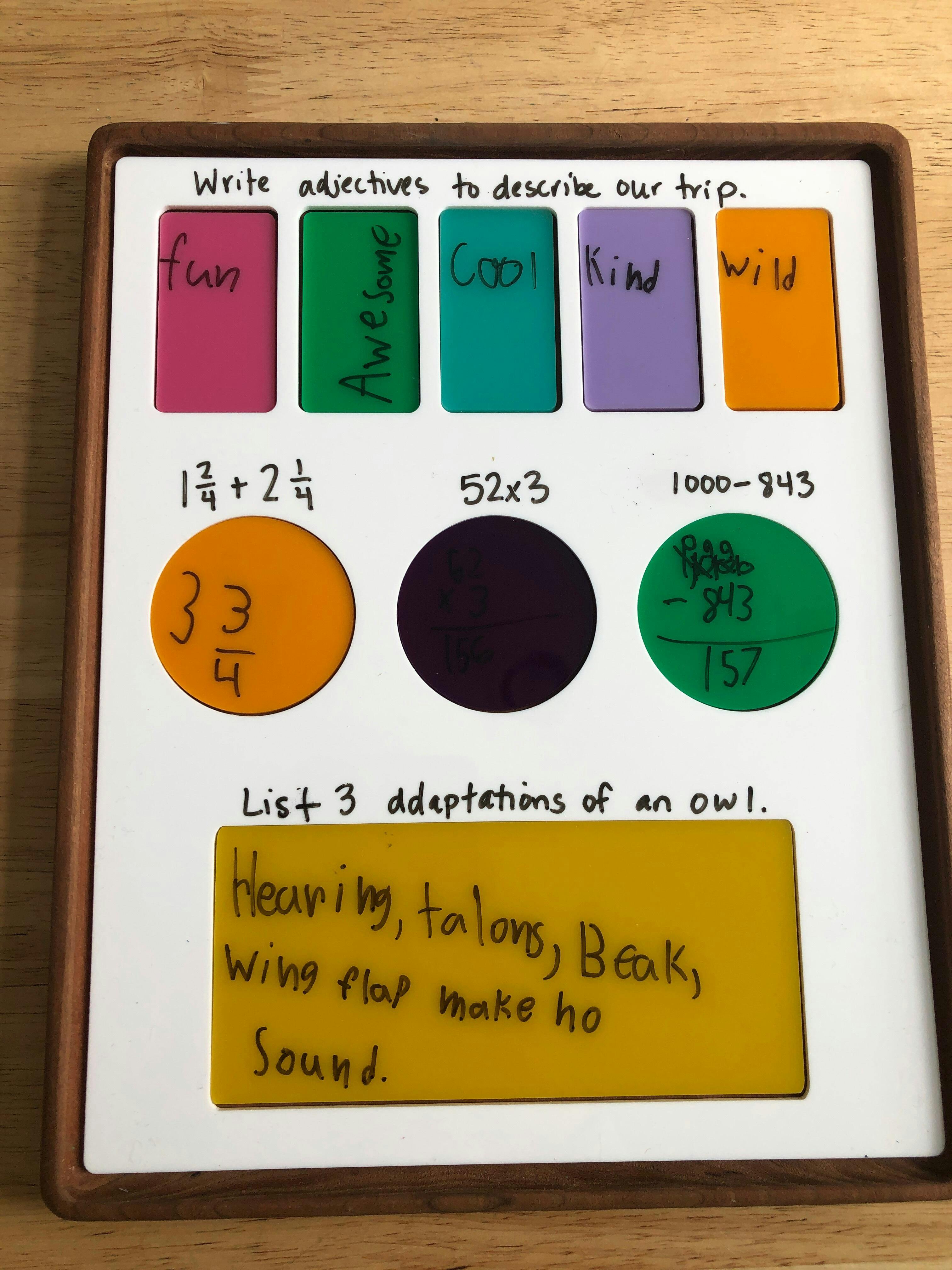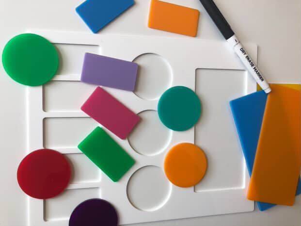 While the small rectangles are unique to this insert, the middle circles are our 2 inch little dry erasables linked here, and the large rectangle on the other side fits one of the rainbow rectangles from this listing linked here.