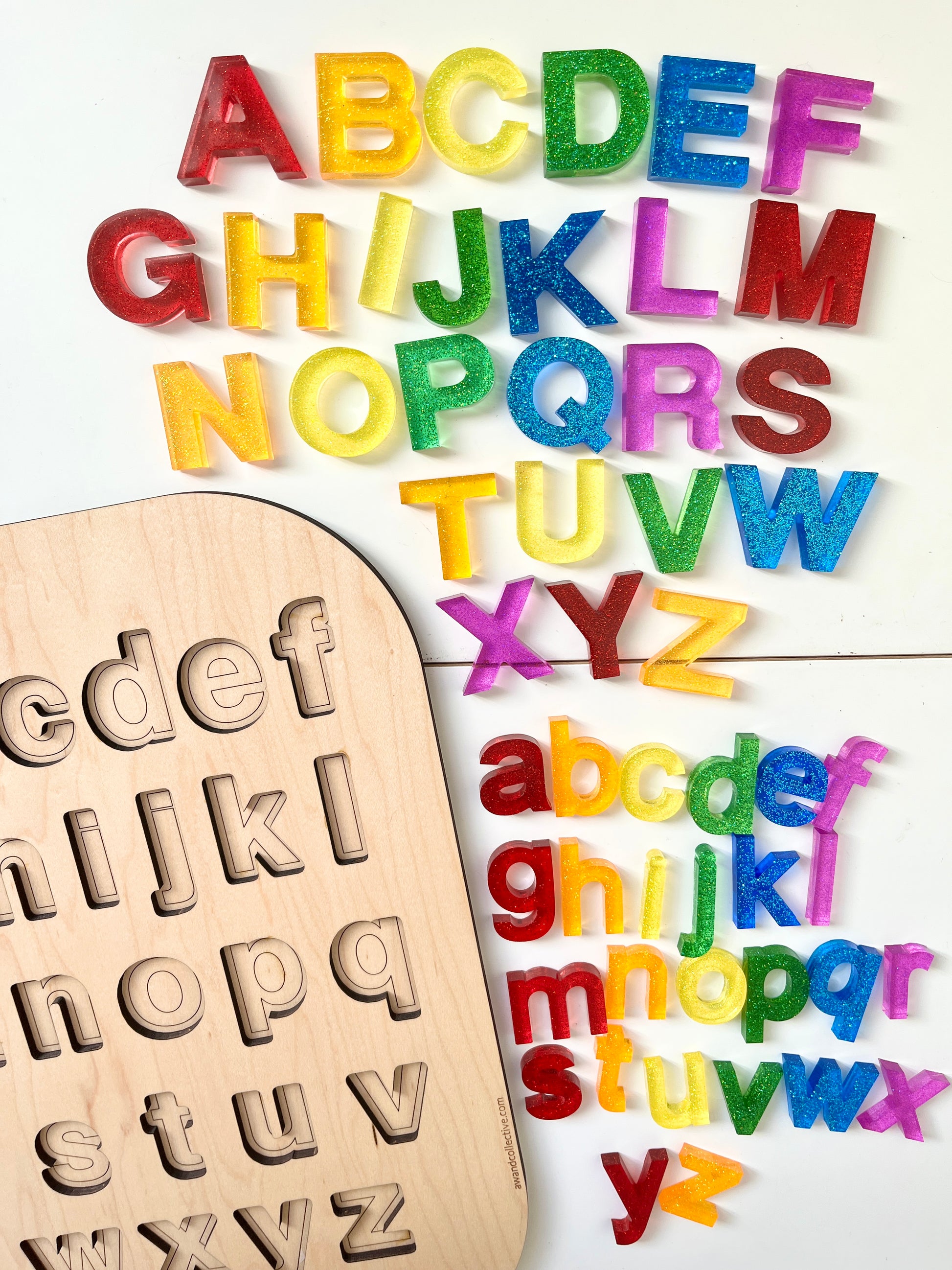 New Rainbow Glitter Resin Lowercase or Uppercase Alphabet • Movable Alphabet Set • Fits Resin Letter Flisat Insert
