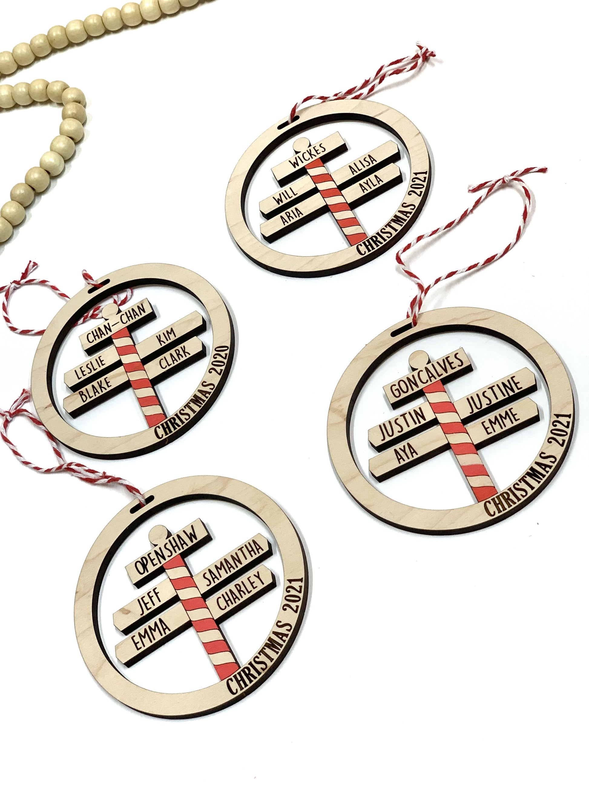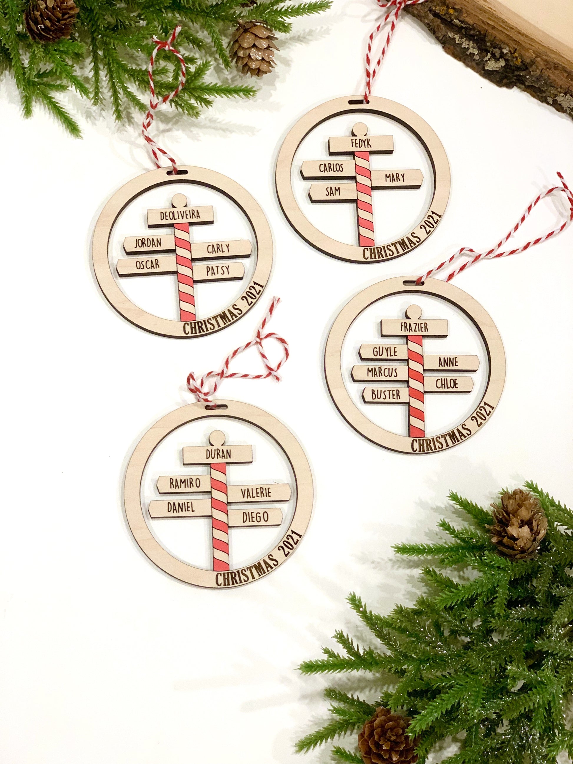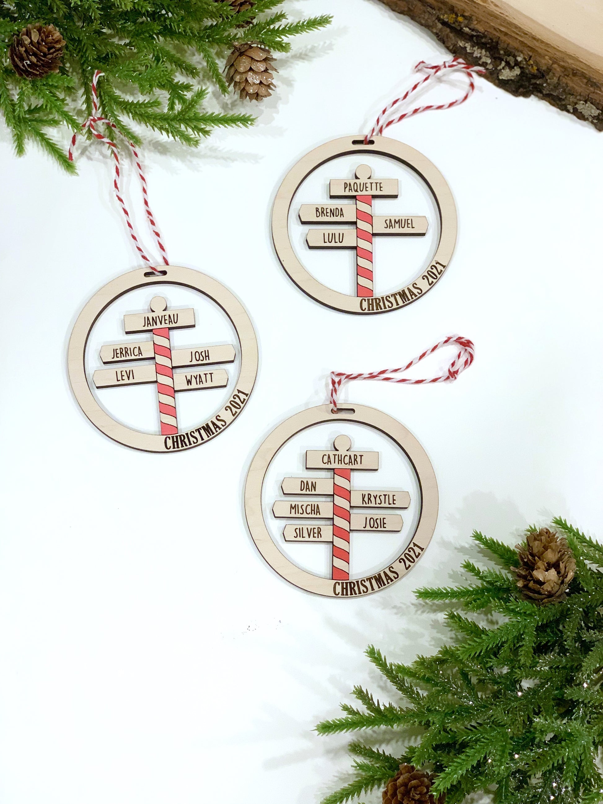 These Family Name North Pole Christmas ornaments are the perfect personalized ornament for your tree this year. An amazing gift for yourself, or gift for your brother or sister, in laws or grandparents with the grandkids names on them!