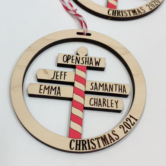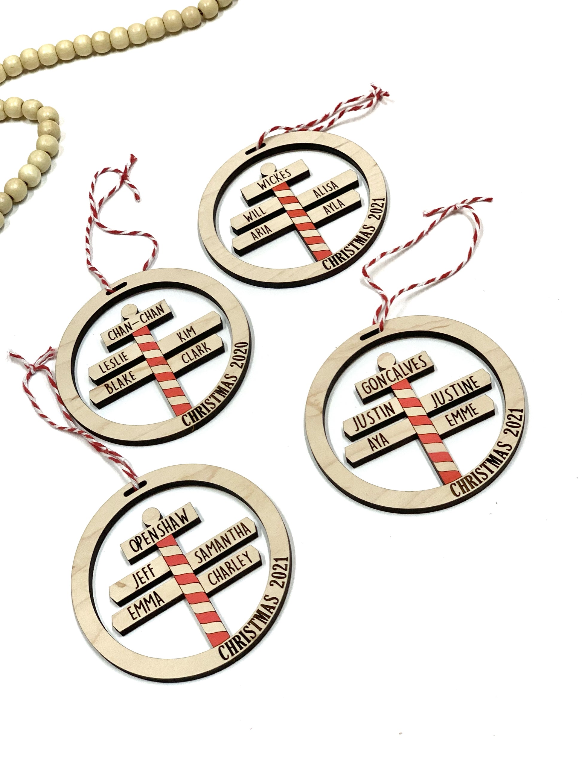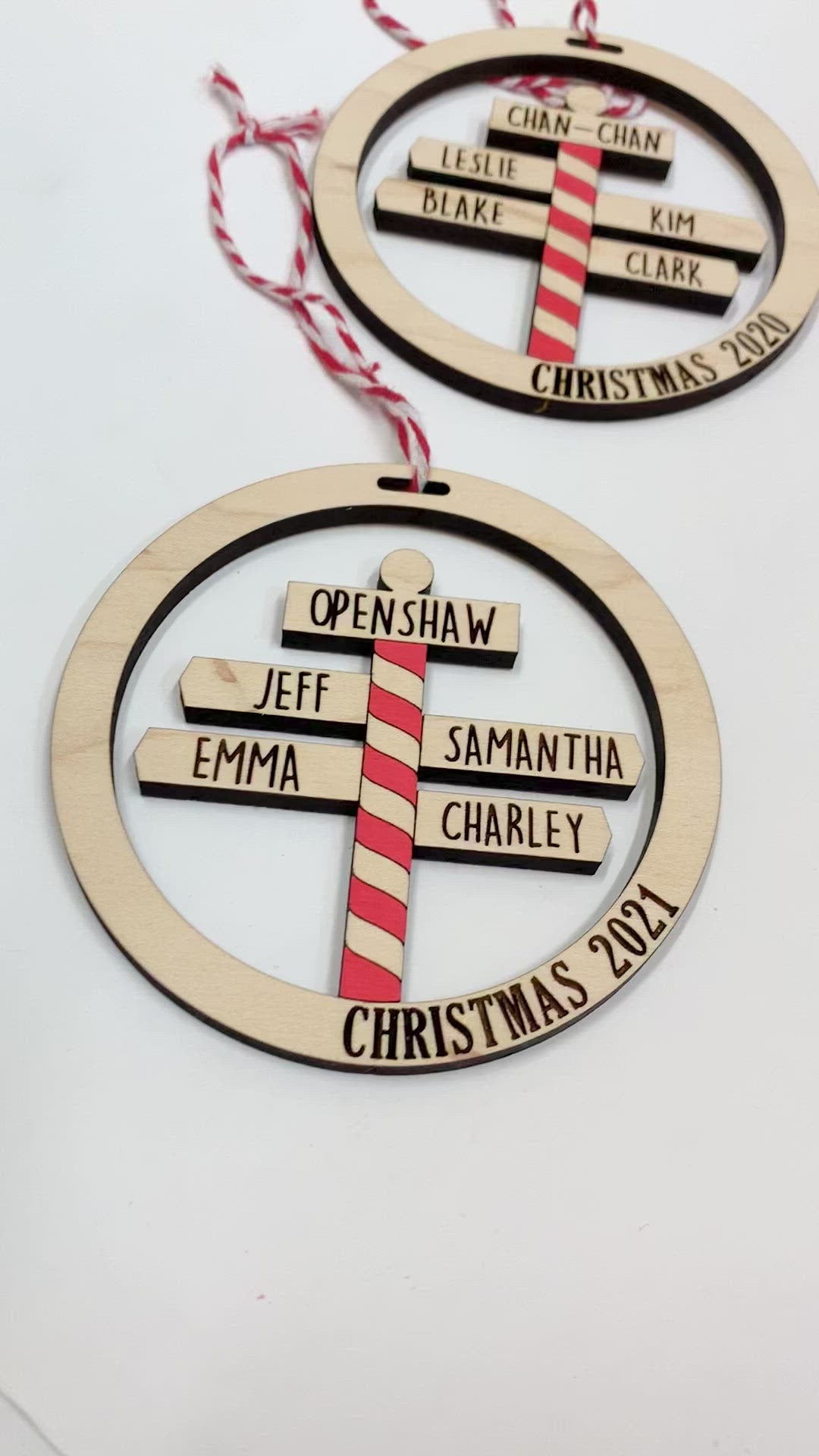 These Family Name North Pole Christmas ornaments are the perfect personalized ornament for your tree this year. An amazing gift for yourself, or gift for your brother or sister, in laws or grandparents with the grandkids names on them!