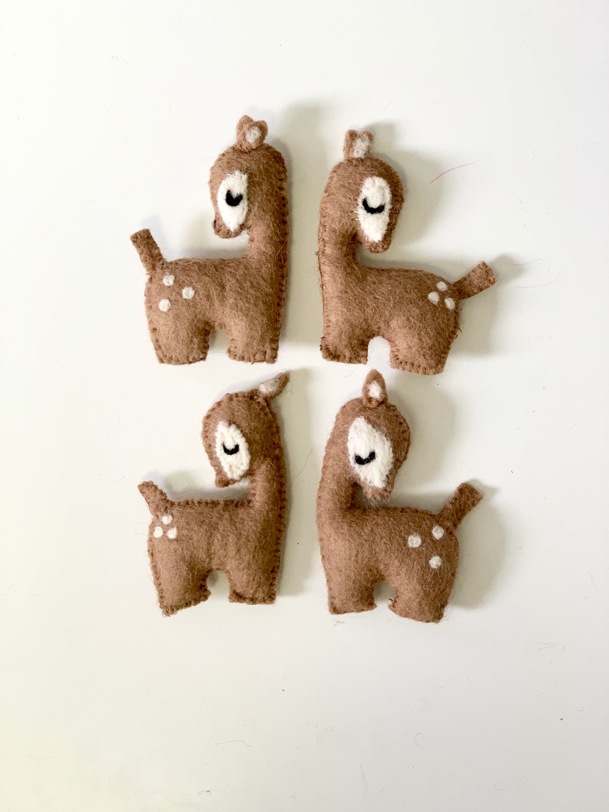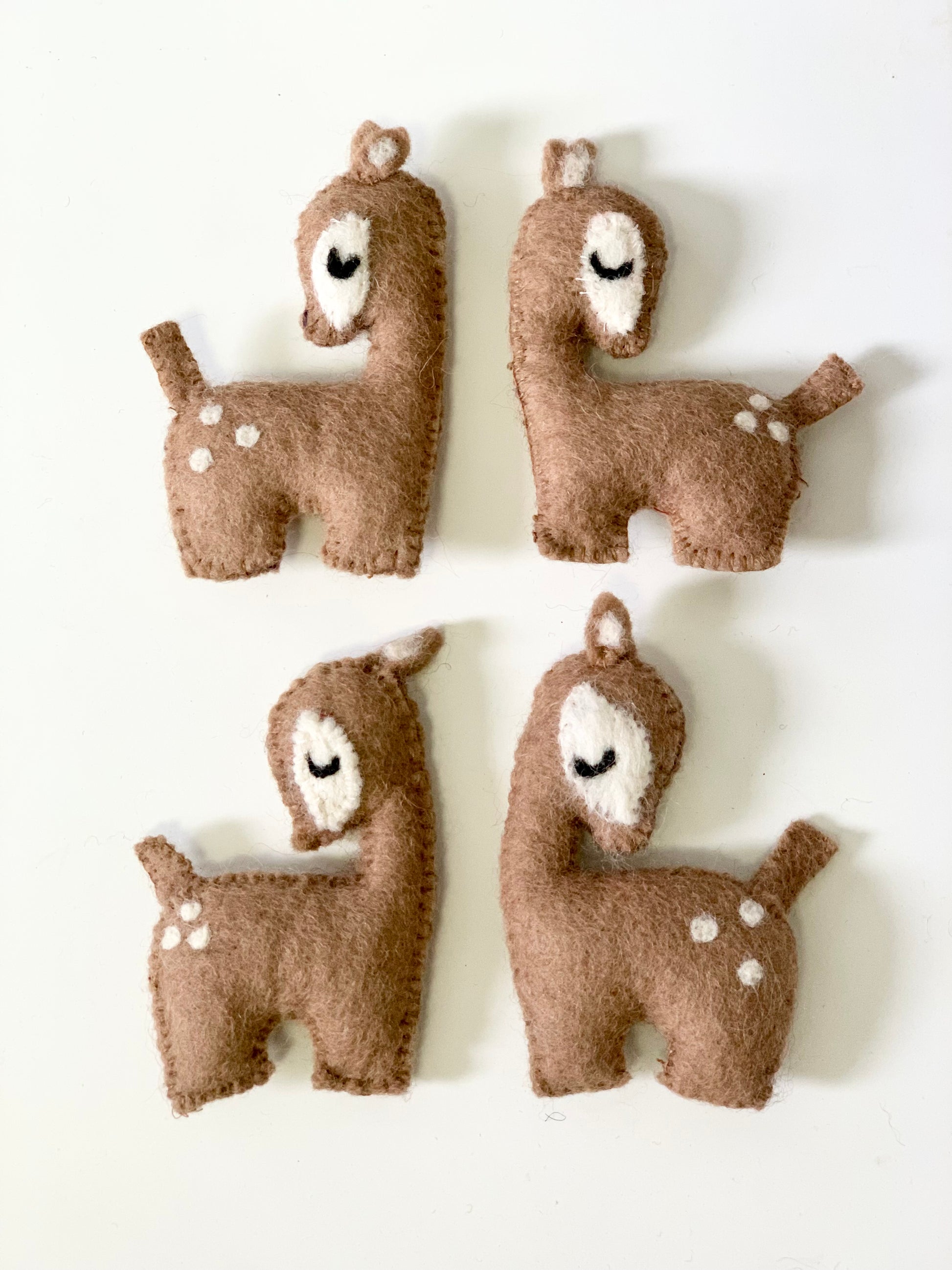Each deer is handmade, fair trade from Nepal, 100% pure wool. They are approximately 9x11cm in size.