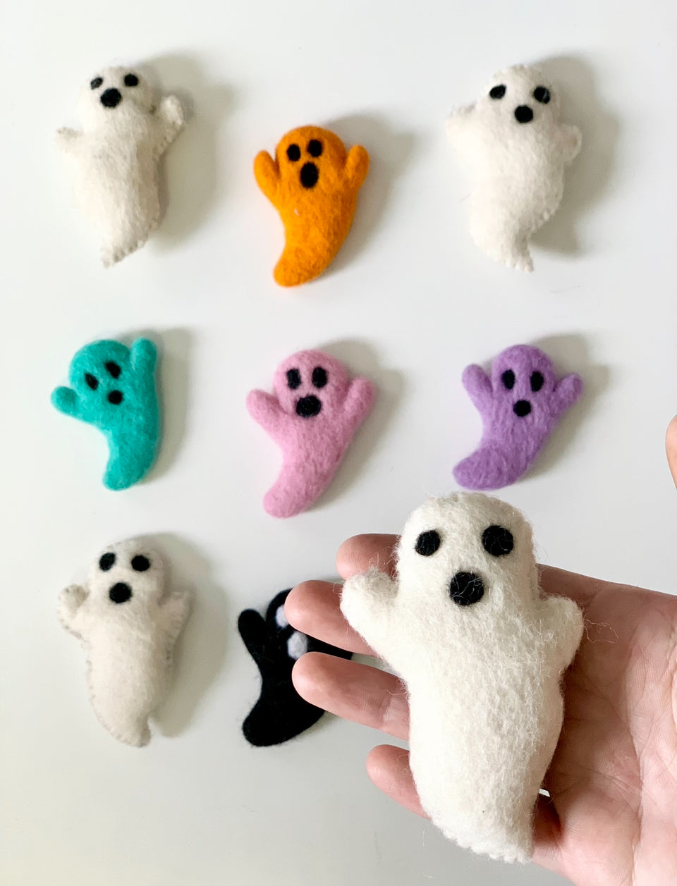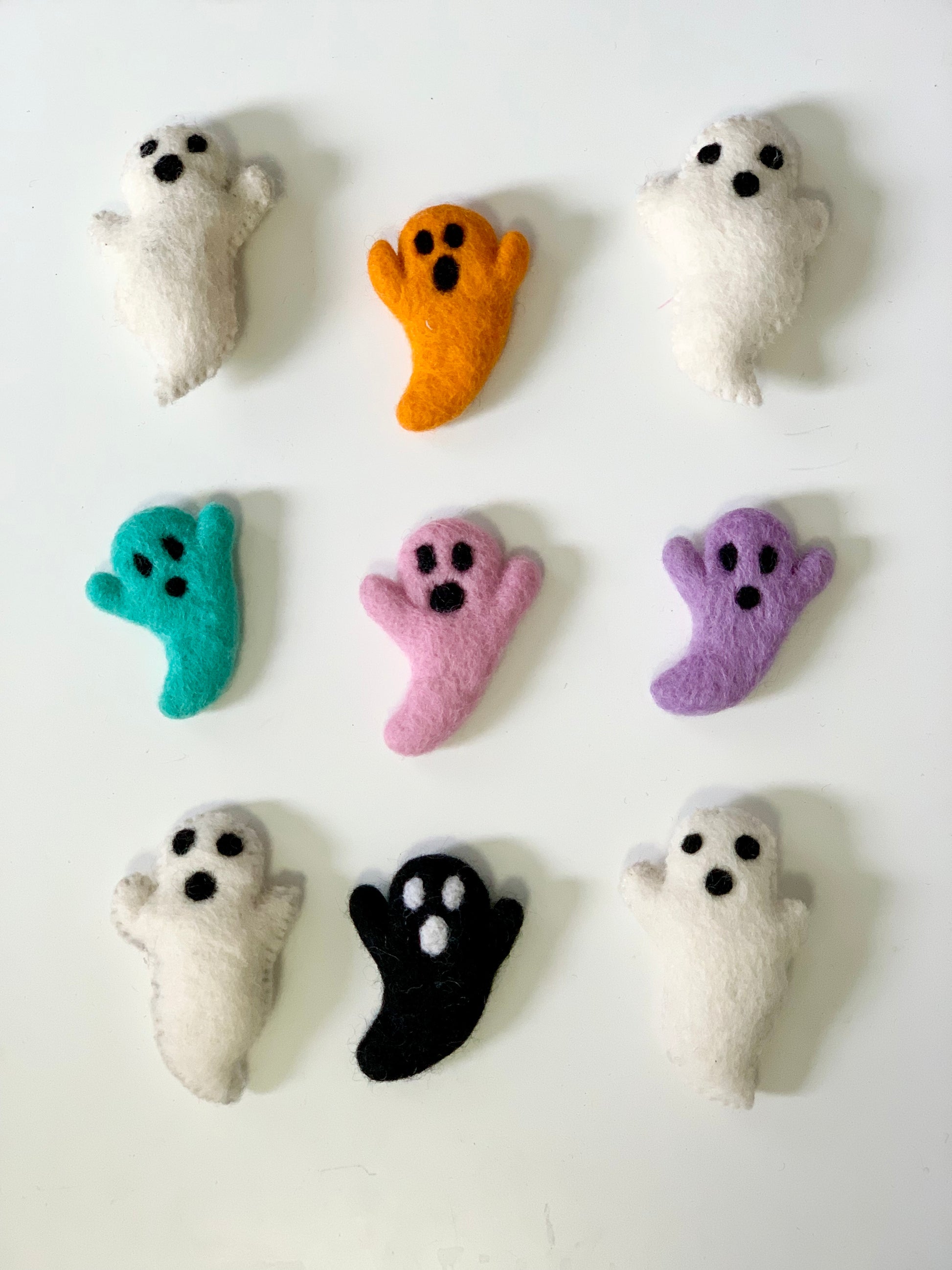 Each item is handmade, fair trade from Nepal, 100% pure wool. Black, Orange, Pink, Blue and Purple are approximately 7cm. White are approximately 7x10 cm