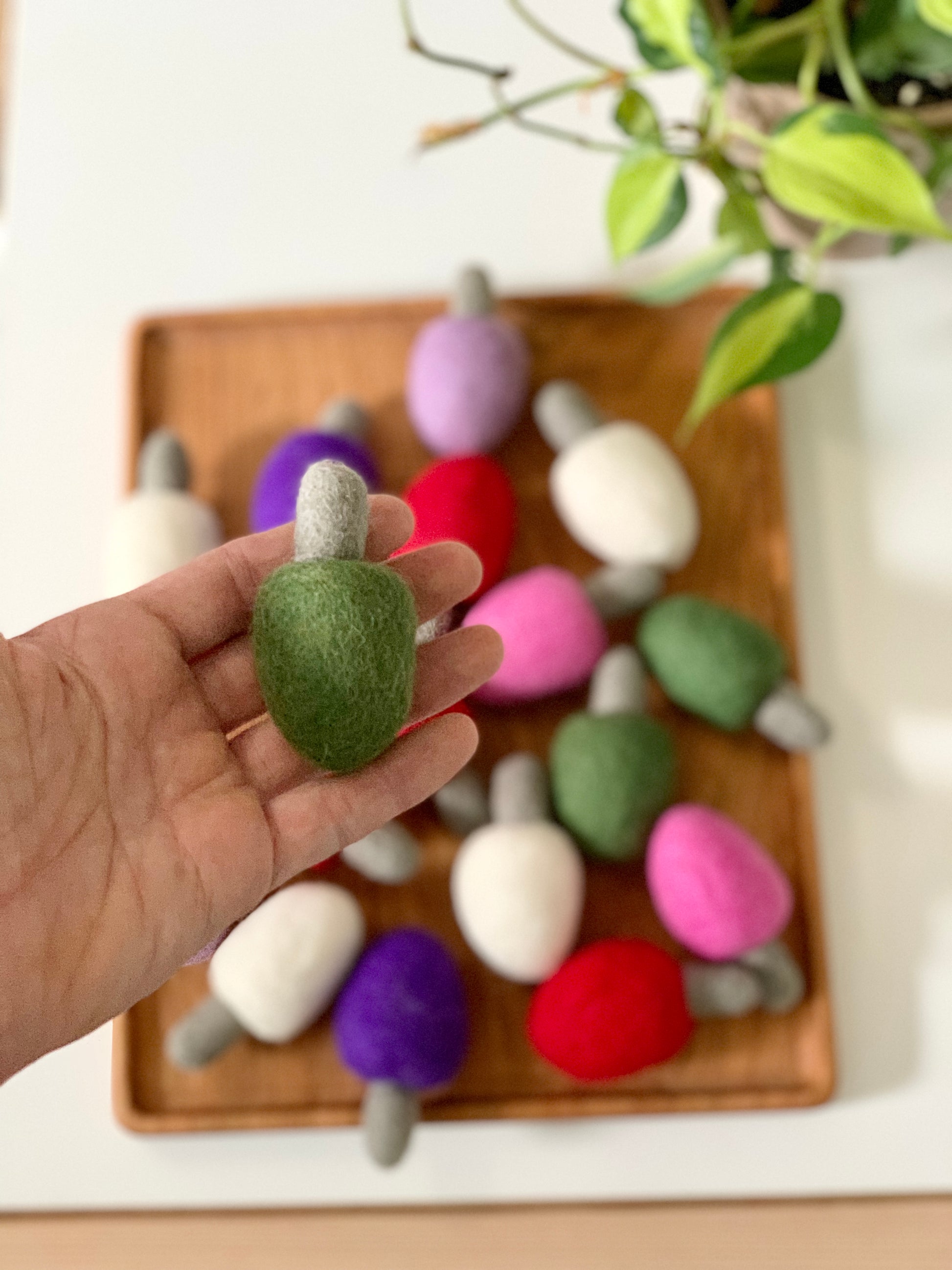 Each item is handmade, fair trade from Nepal, 100% pure wool. They are approximately 7-8cm.