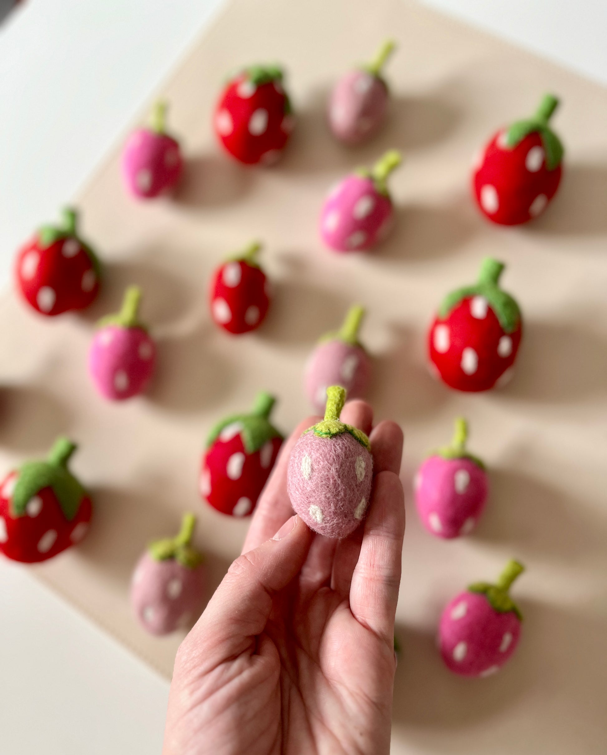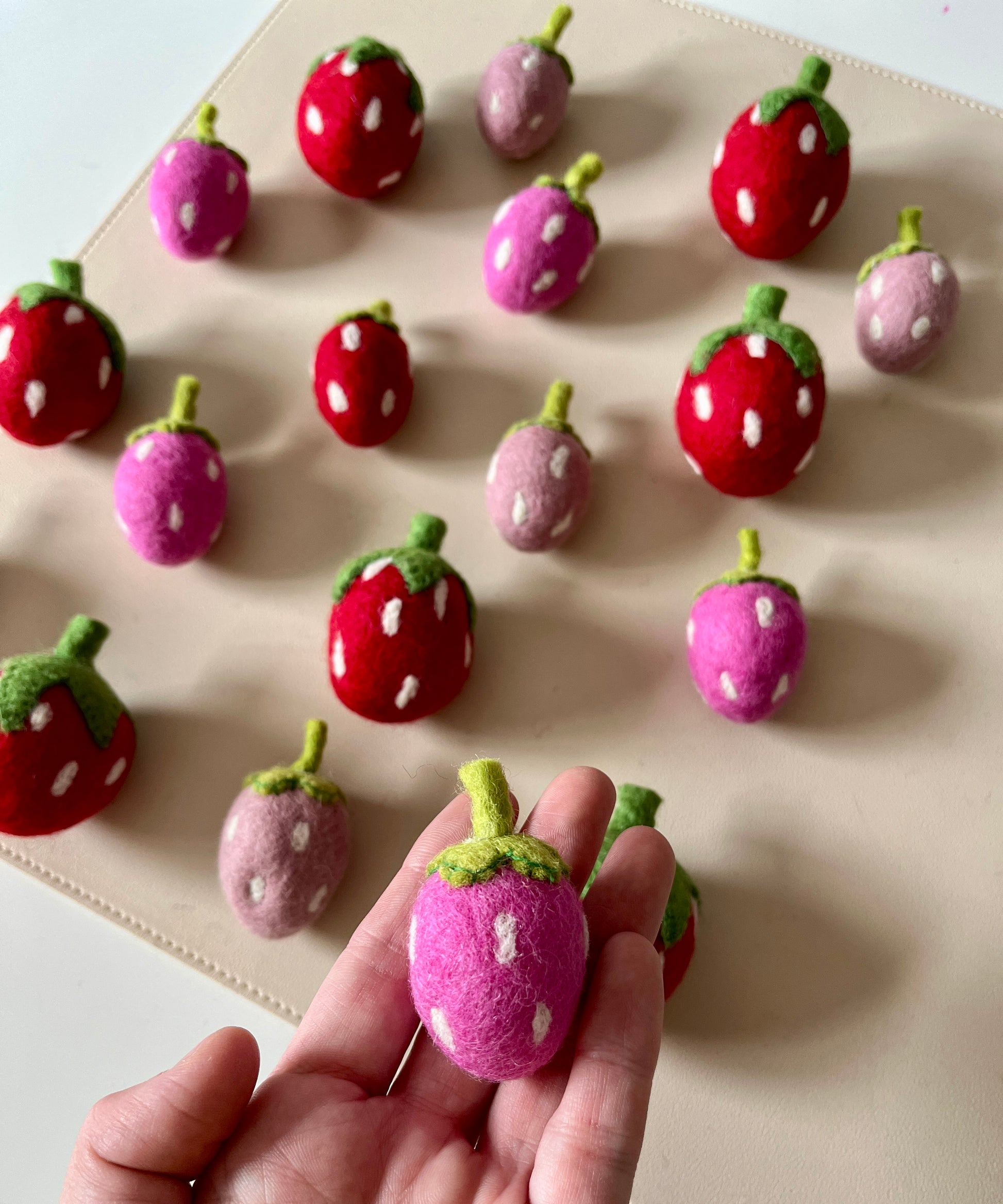 Each Strawberry is handmade, fair trade from Nepal, 100% pure wool.