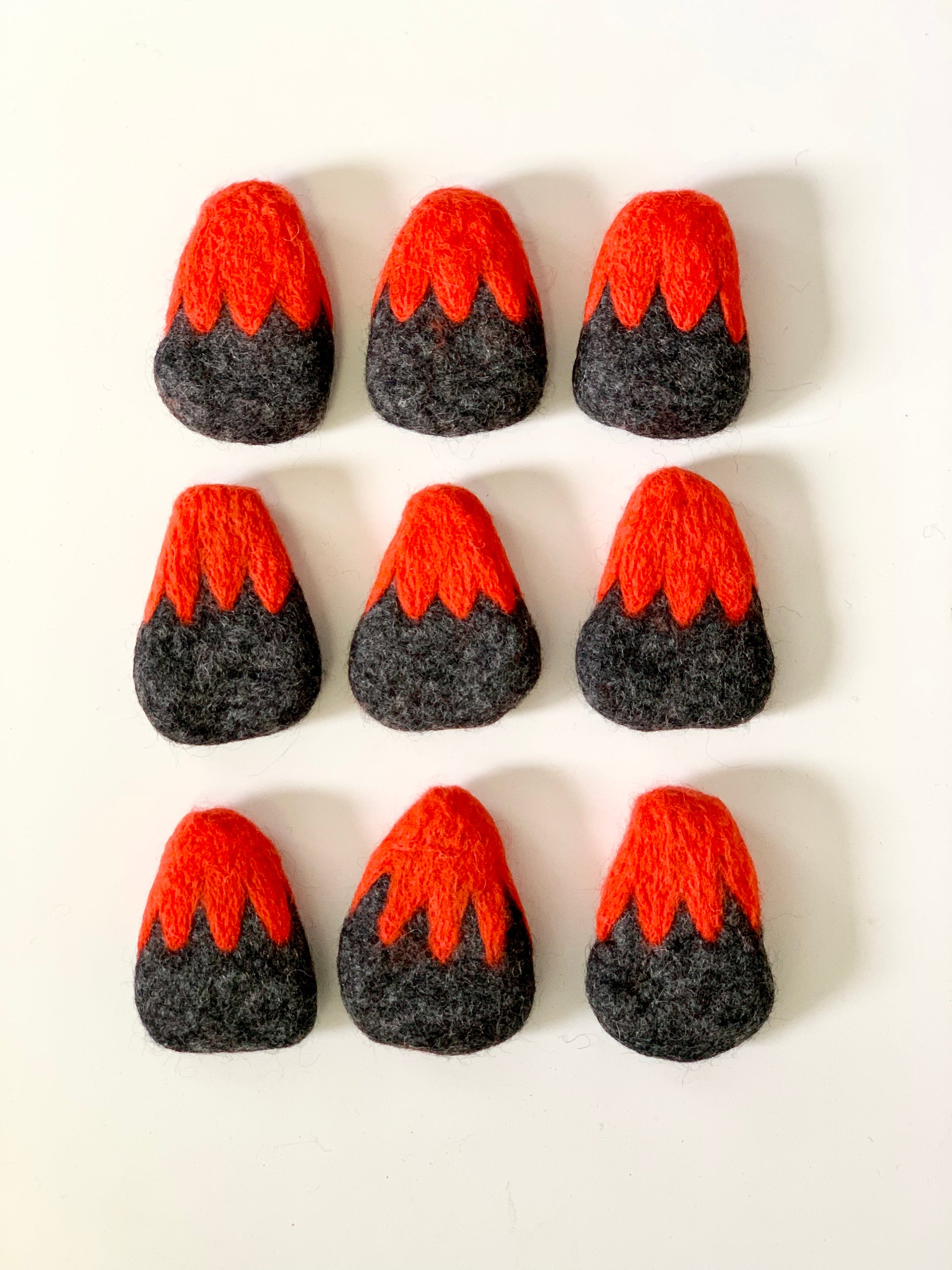 Each volcano is handmade, fair trade from Nepal, 100% pure wool. They are approximately 6x8cm.