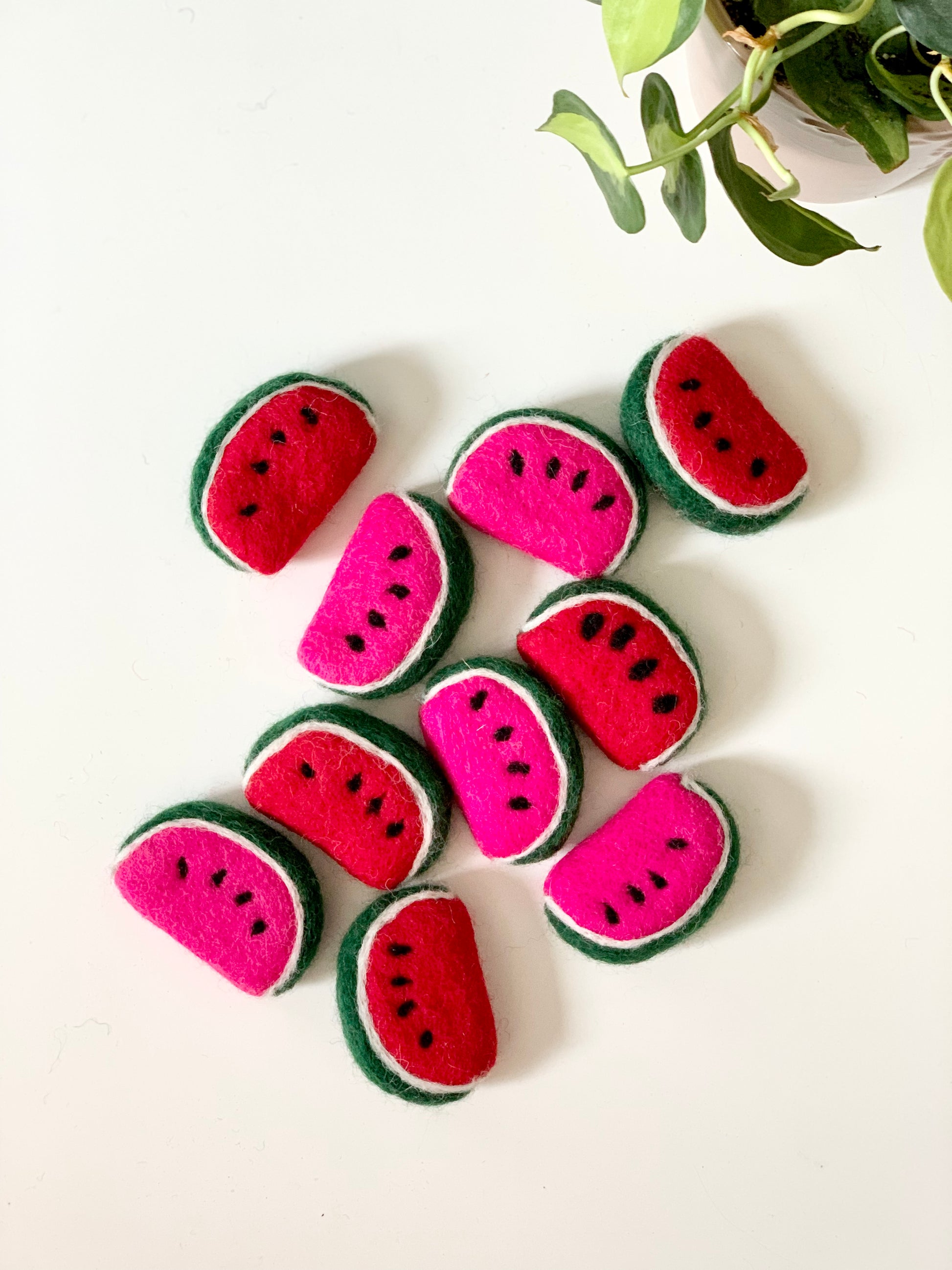 Each Watermelon is handmade, fair trade from Nepal, 100% pure wool. They are approximately 5x7cm.