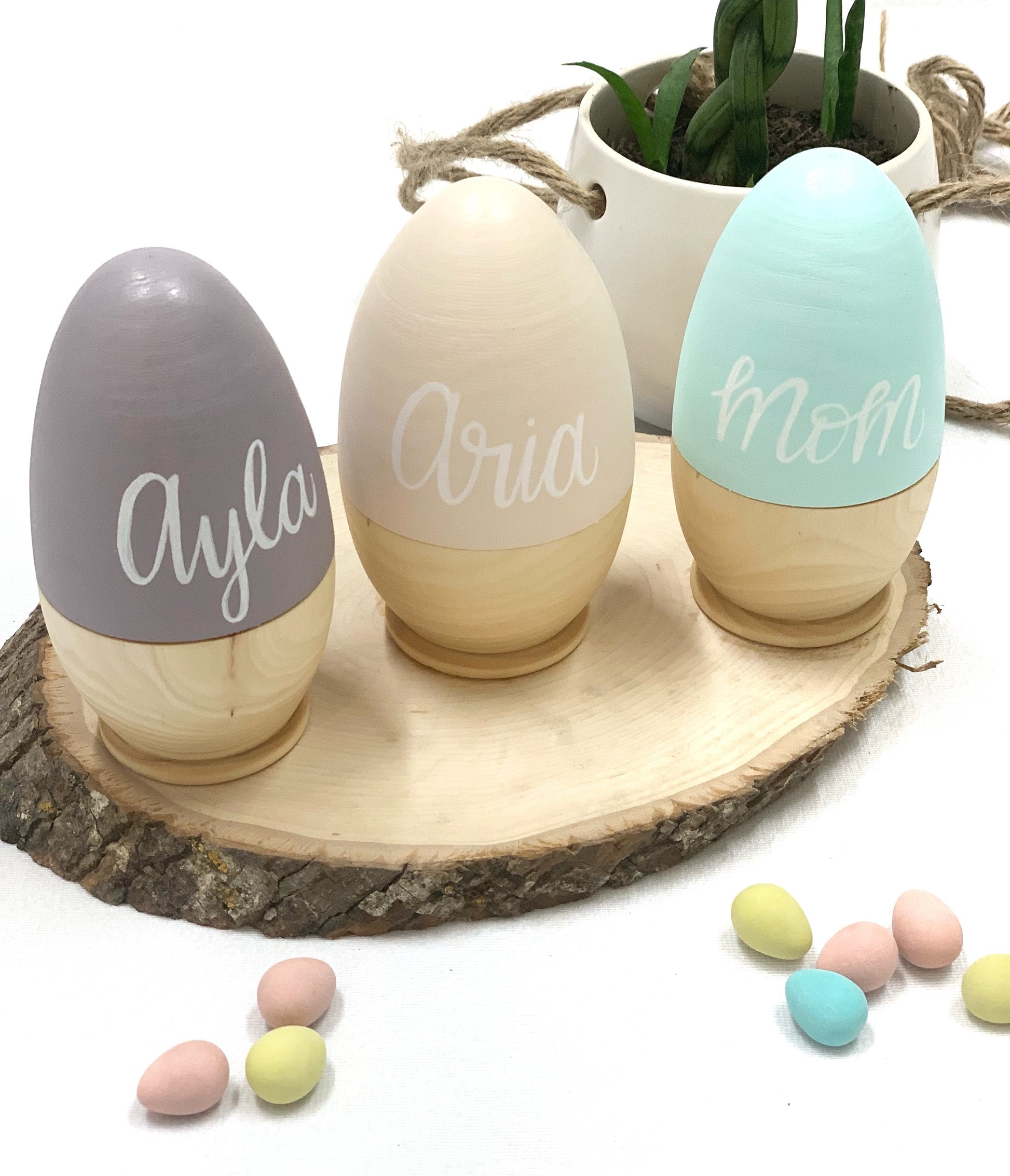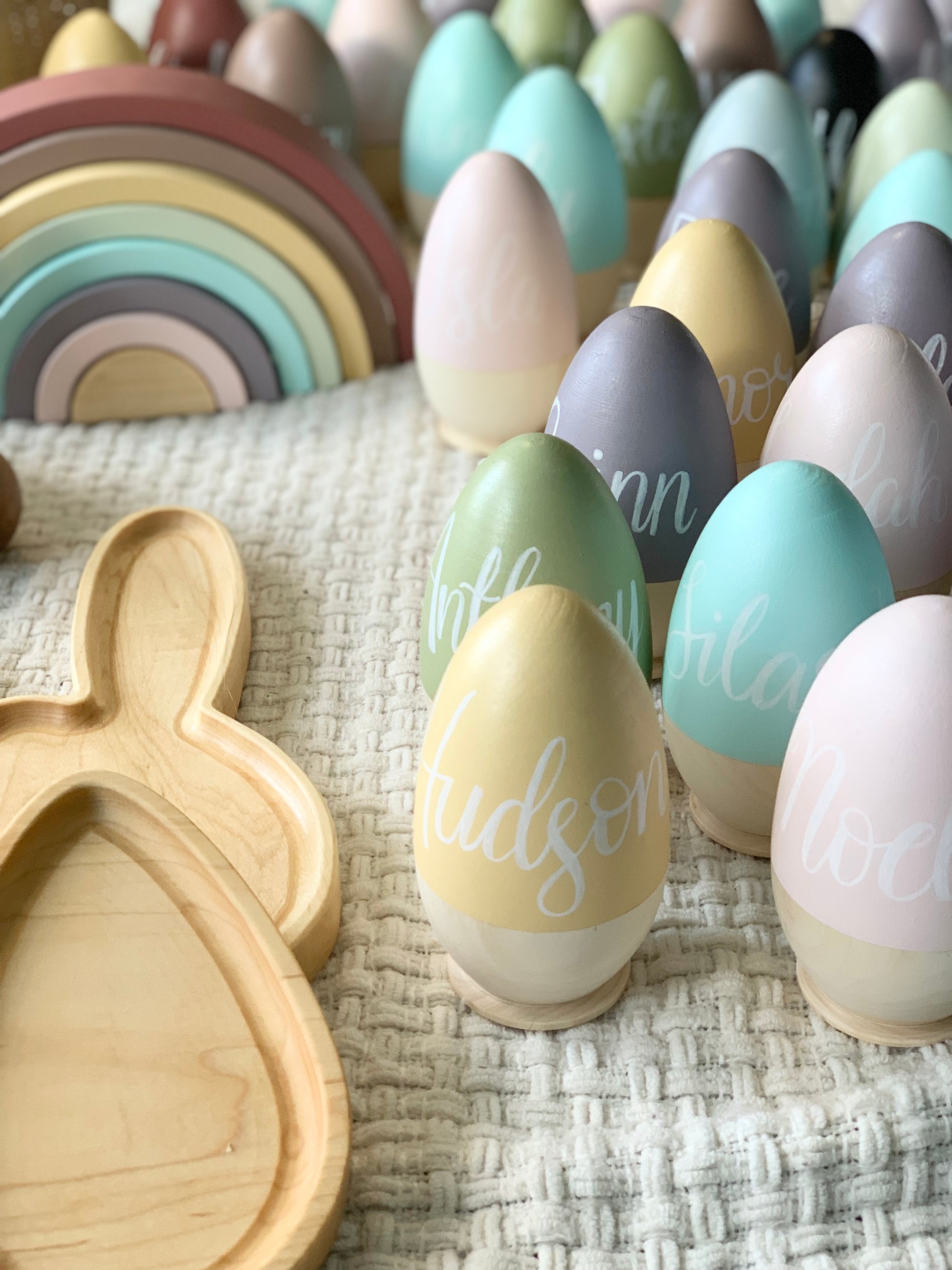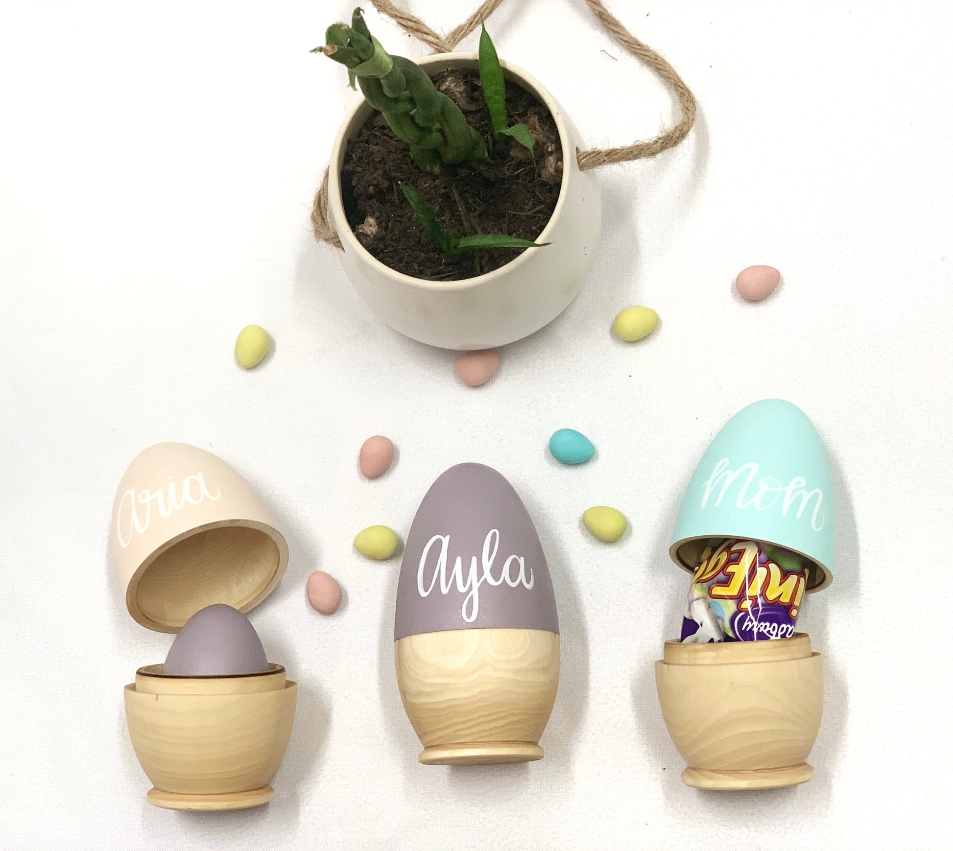 Our Personalized Wooden Hollow Eggs are the perfect gift for your little one this Easter. Reduce waste by buying this special keepsake item that can be used year after year. Fill it with chocolate, our smaller personalized eggs, or any kind of goodies of your choice. Our baby bunnies fit inside too!