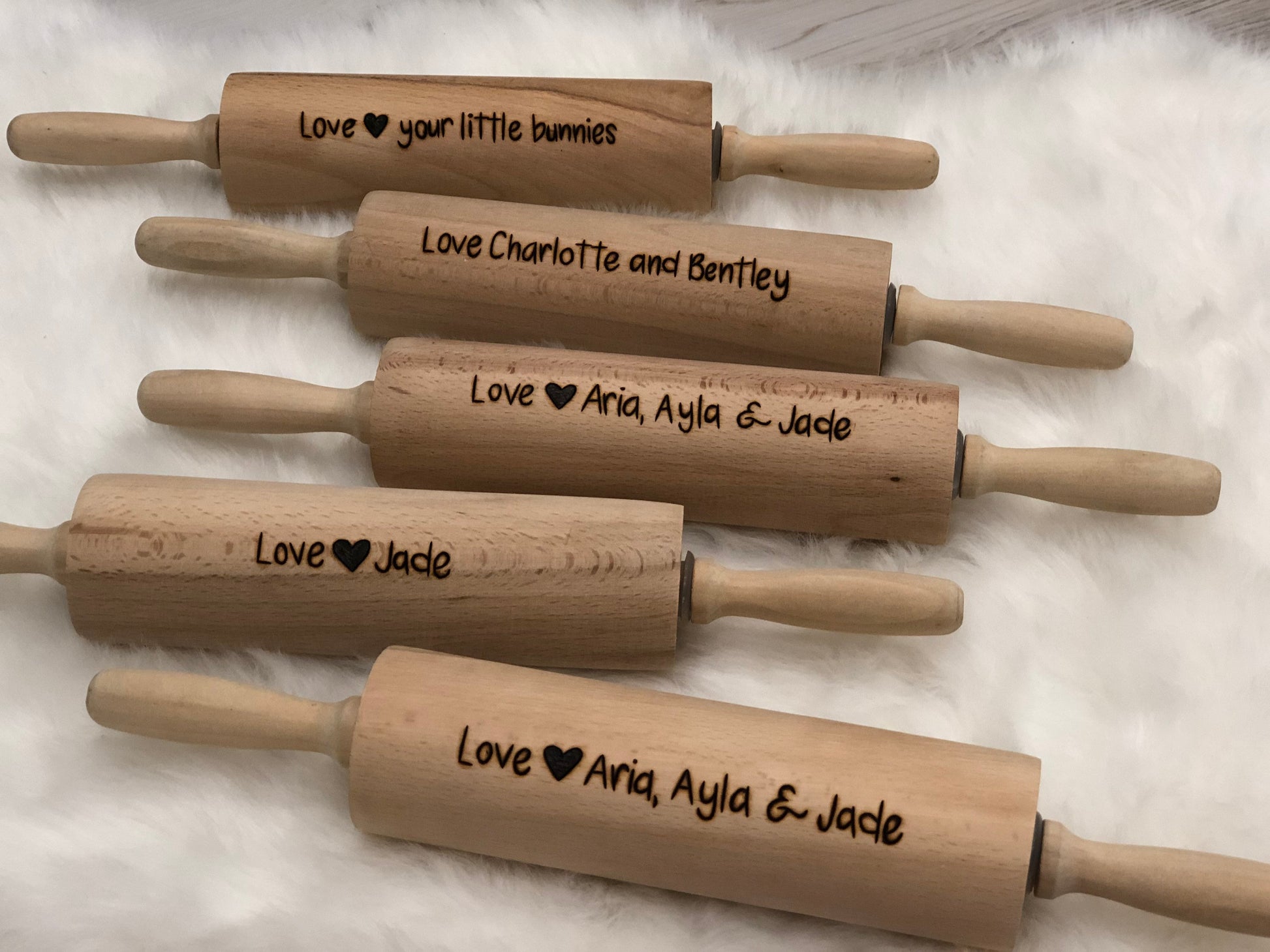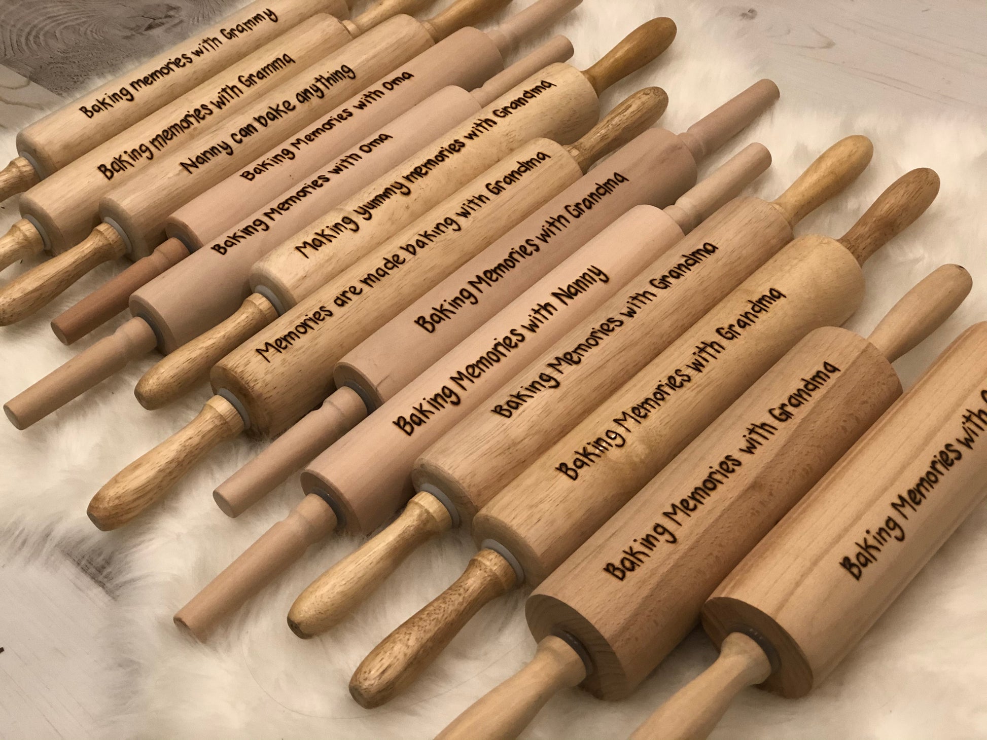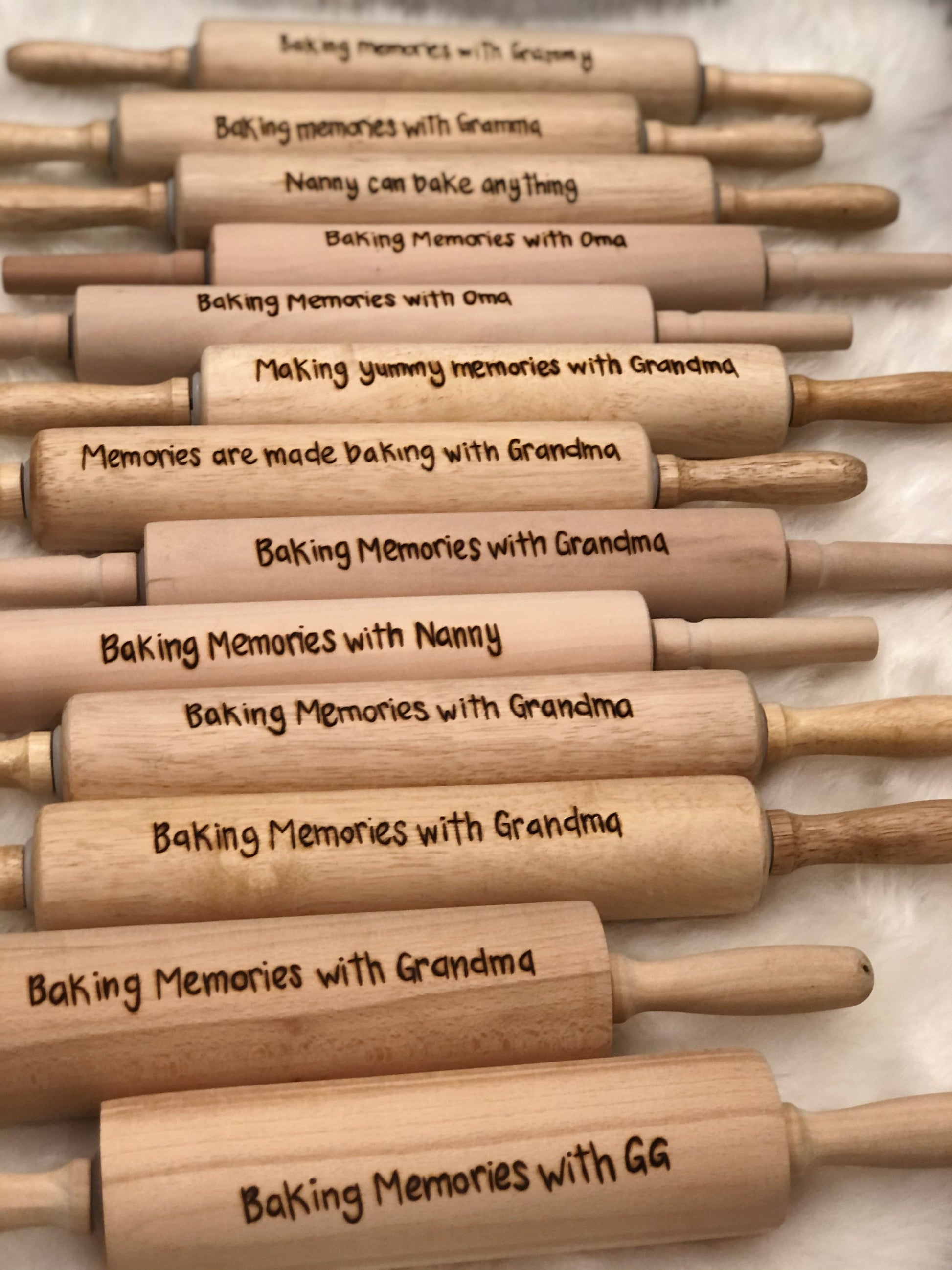 Please note that your rolling pin may differ slightly from the others pictured as all have variations in both wood colour & grain. Please keep in mind that each is burnt by hand, each one will be unique and made just for you - no two rolling pins will be identical.