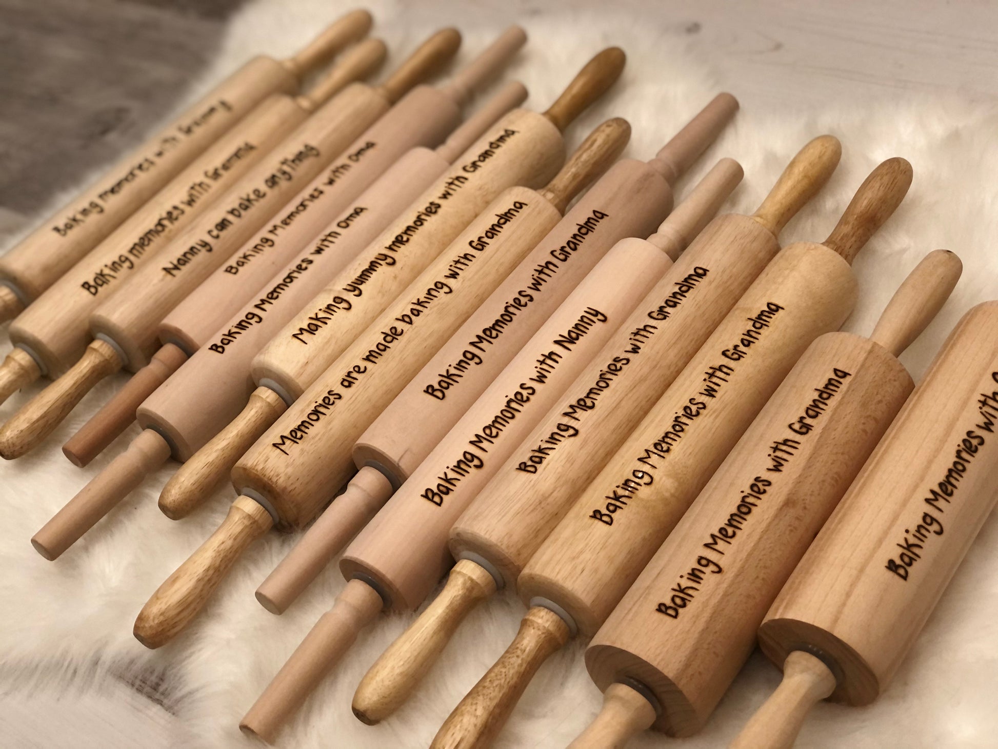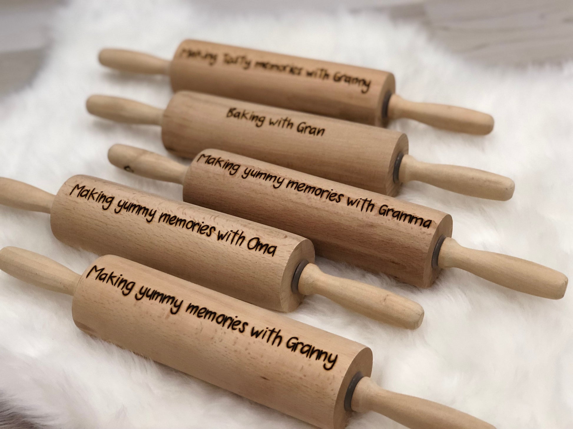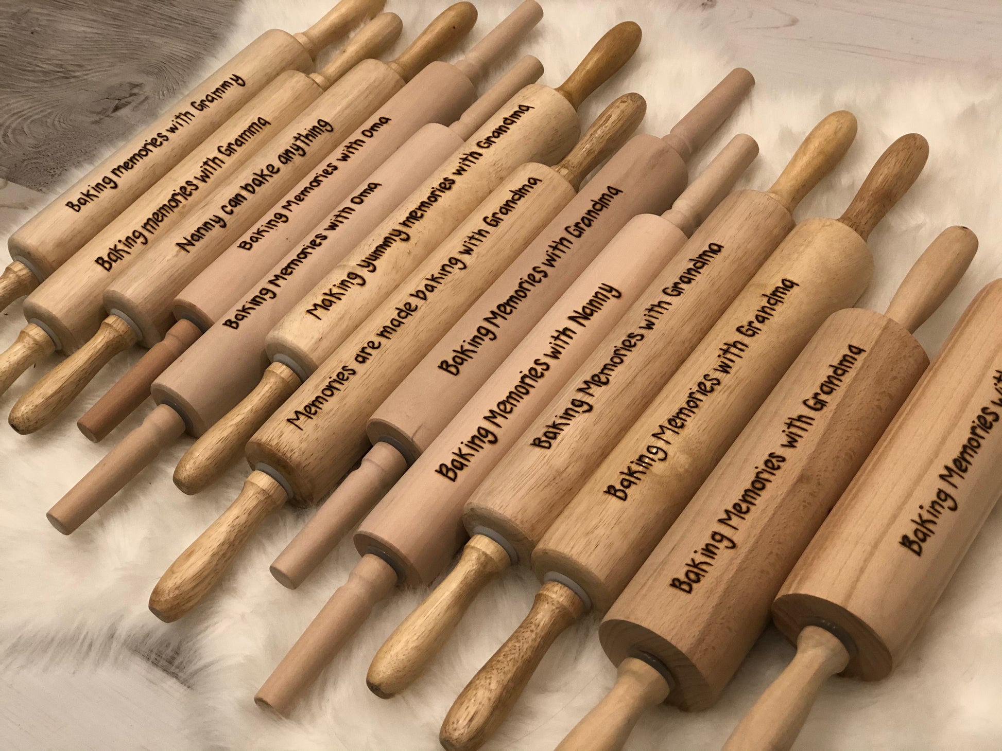 Please note that your rolling pin may differ slightly from the others pictured as all have variations in both wood colour & grain. Please keep in mind that each is burnt by hand, each one will be unique and made just for you - no two rolling pins will be identical.