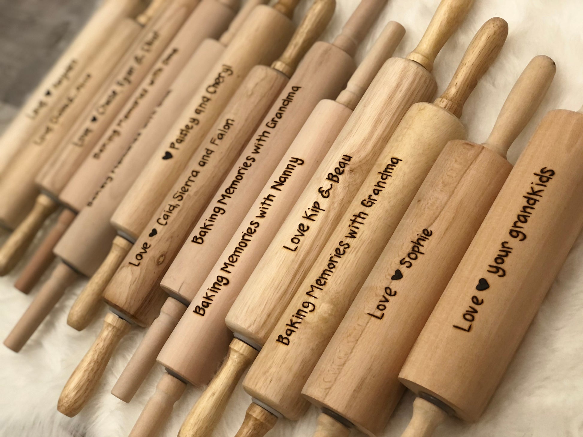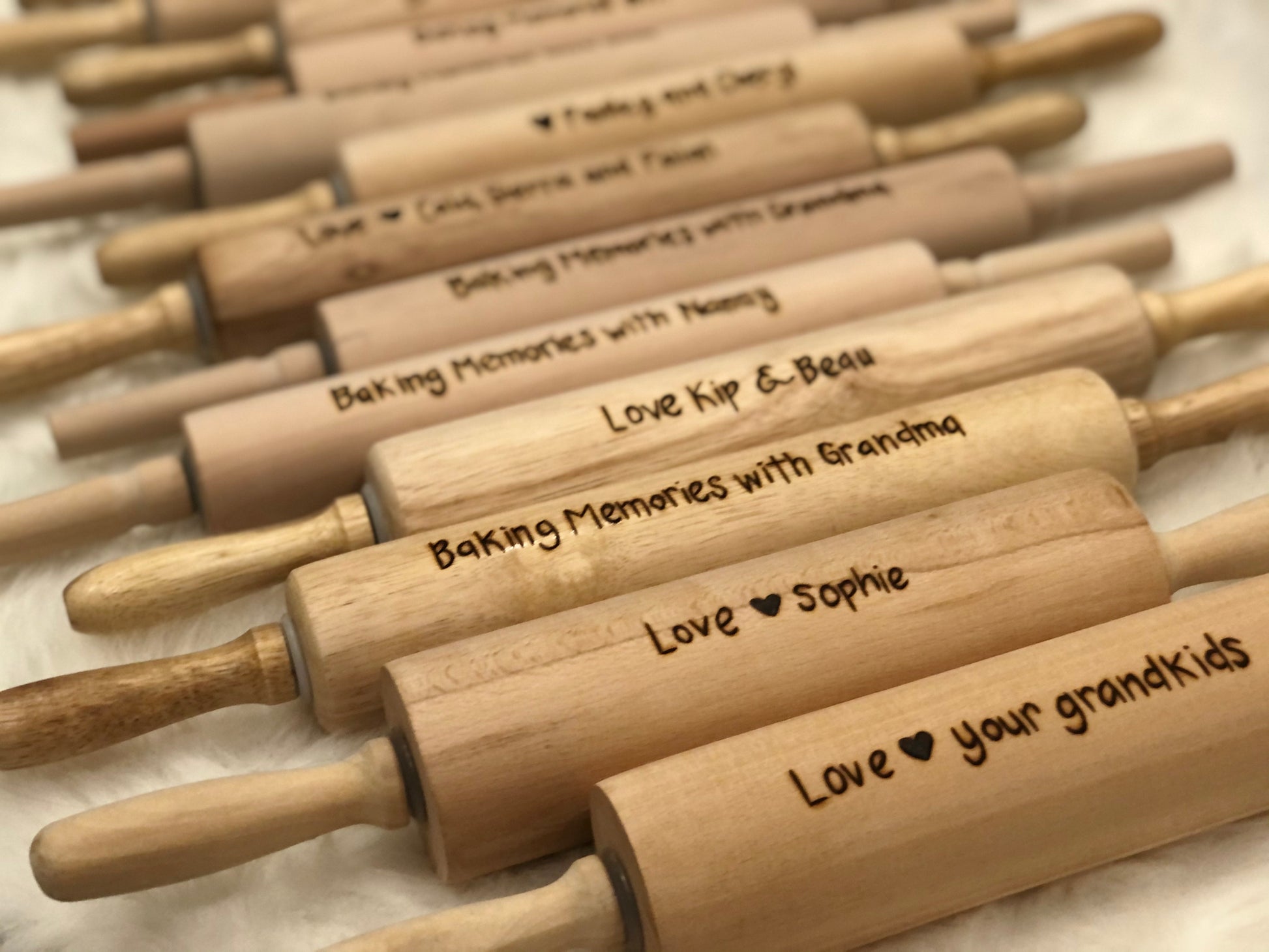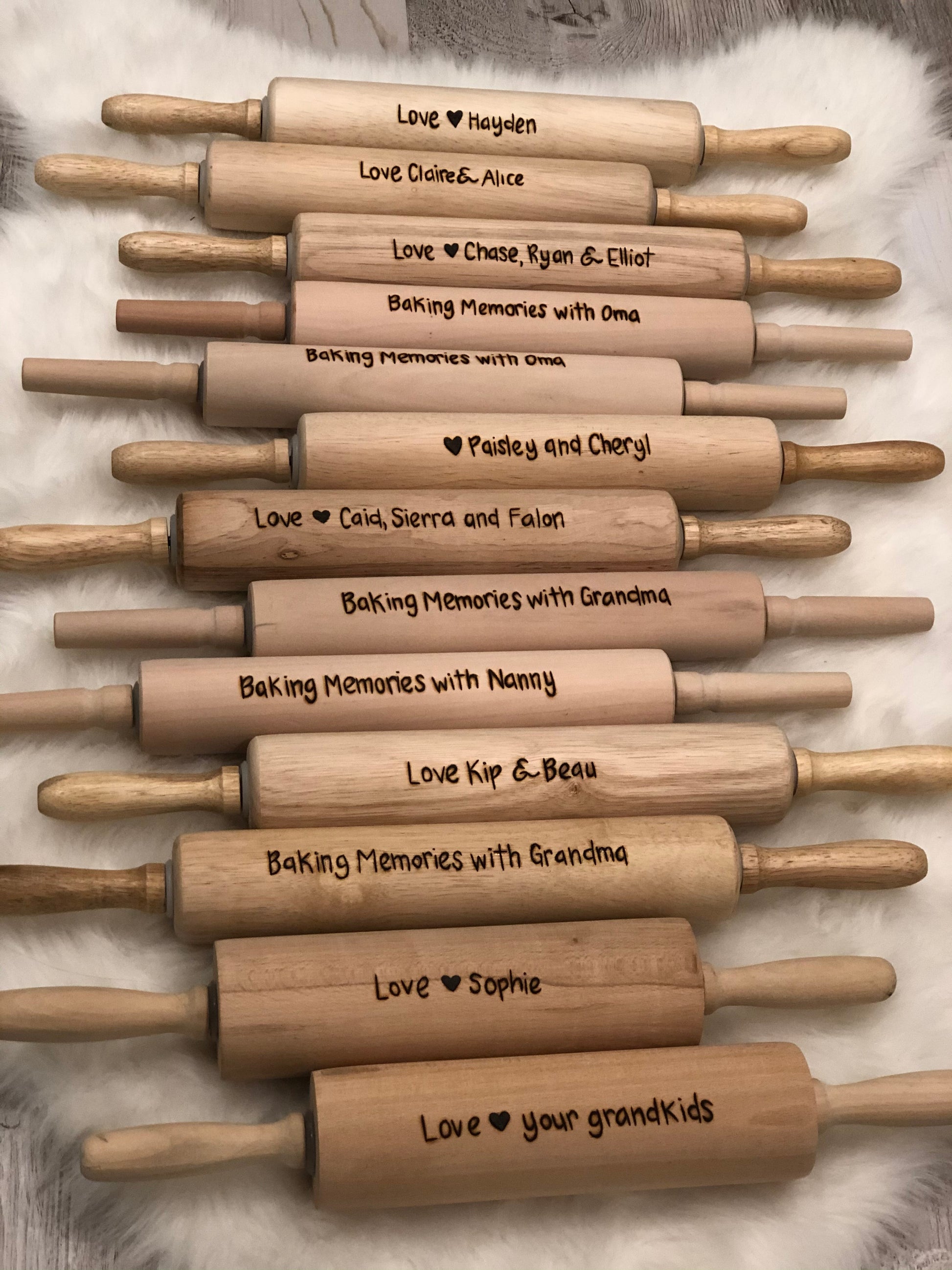 I would love to make you this Personalized Rolling Pin with your own custom message wood burned into the pin. This custom rolling pin is a great gift for the baker in your life! , whether it be for Father’s or Mother’s Day, Christmas, Birthdays, this is the perfect unique and personalized gift. It also makes a good 5th Anniversary gift!!!