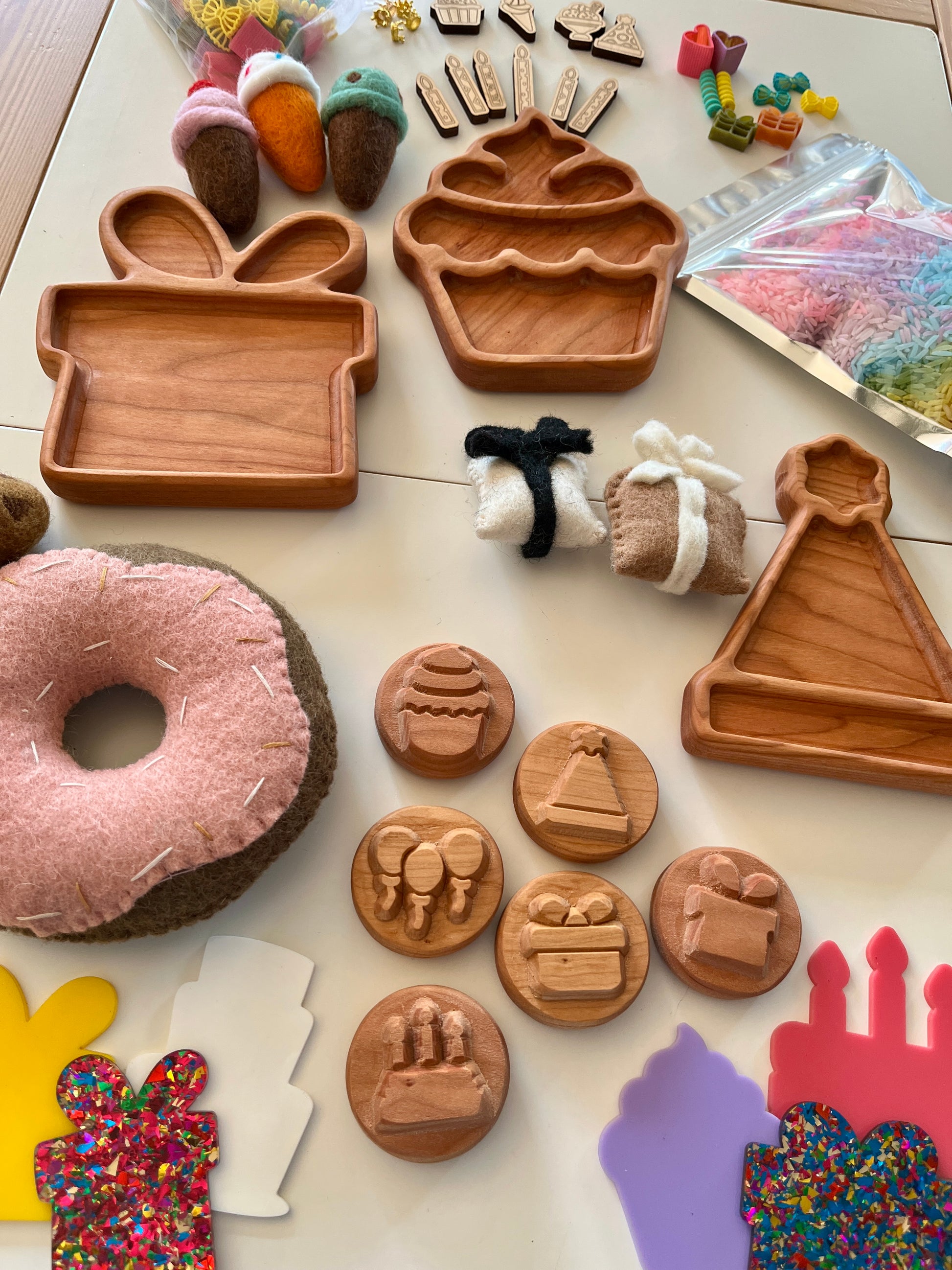 Hello from our beautifully crafted hardwood play dough stamps! Explore our range of ferocious lightning clouds, radiant suns, delightful rainbows, fluffy snowflakes, windy days, and pitter-pattering raindrops—all meticulously handcrafted from sustainable wood. These charming stamps are perfect for sparking creativity and imaginative play, allowing children to craft their own weather-inspired scenes with ease. Each stamp is carefully made for durability and safe, eco-friendly play. Join us in celebrating the wonders of nature through the magic of play dough!