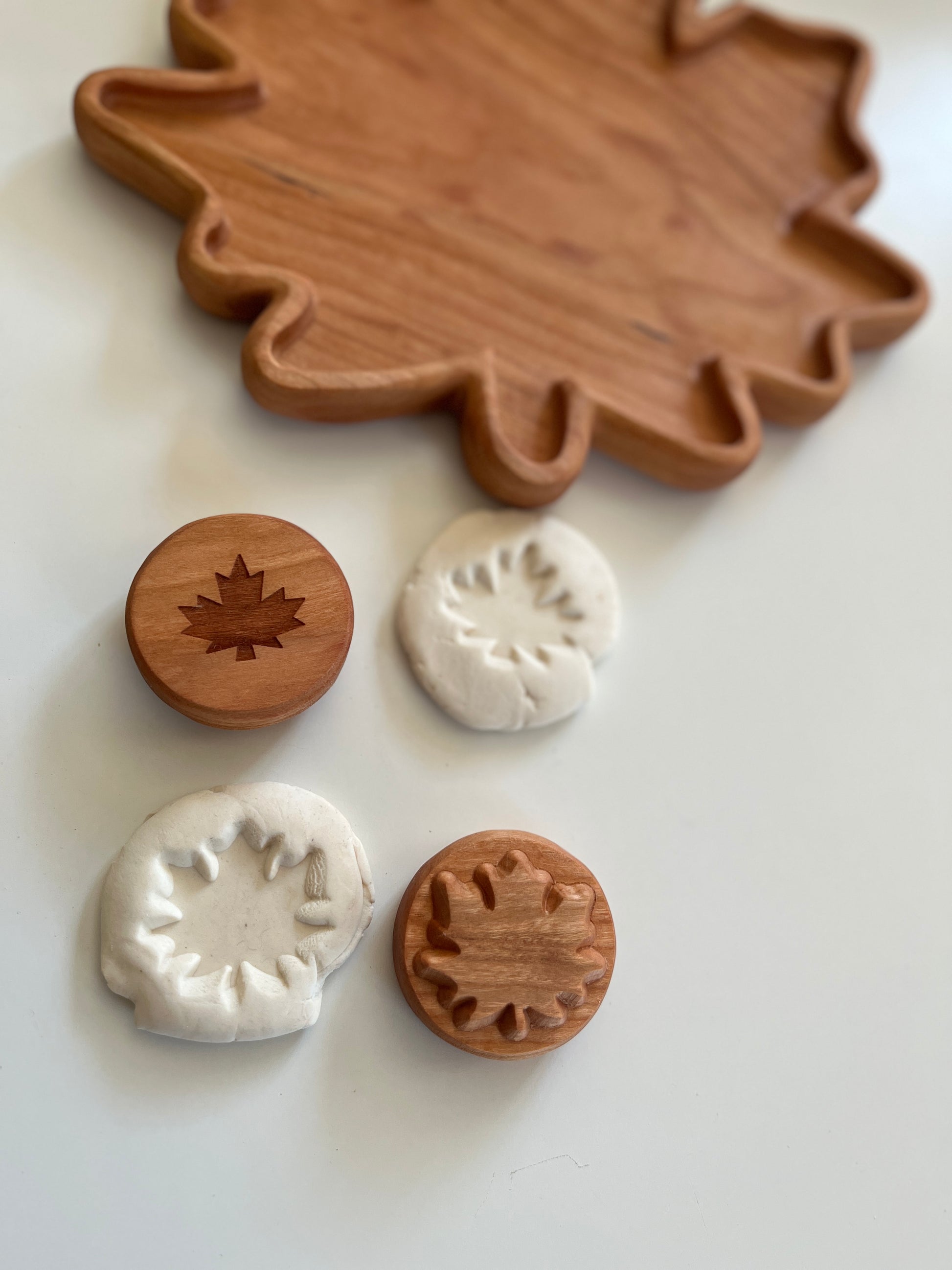Each Stamp has the corresponding image laser engraved on the top, making them easy to find and use.They are made from cherry wood, and are 2.25 inches round and 3/4” deep — perfect size for little hands!