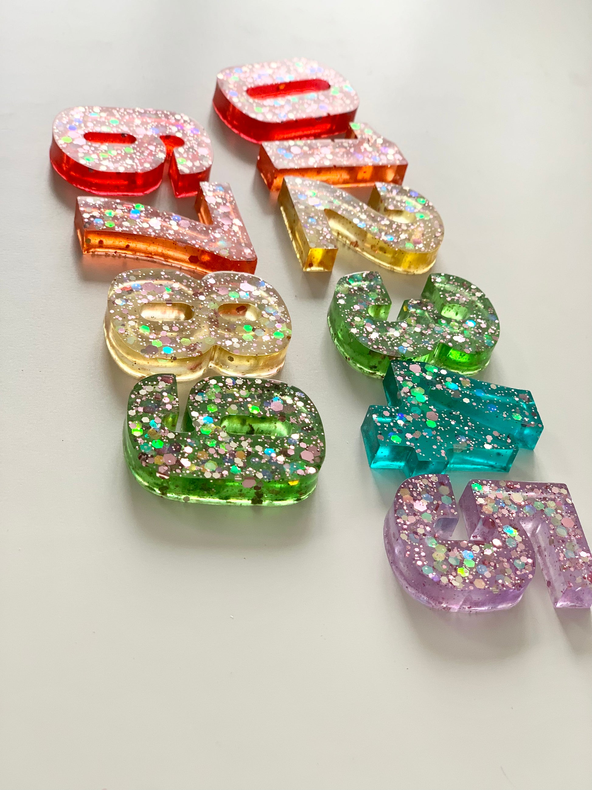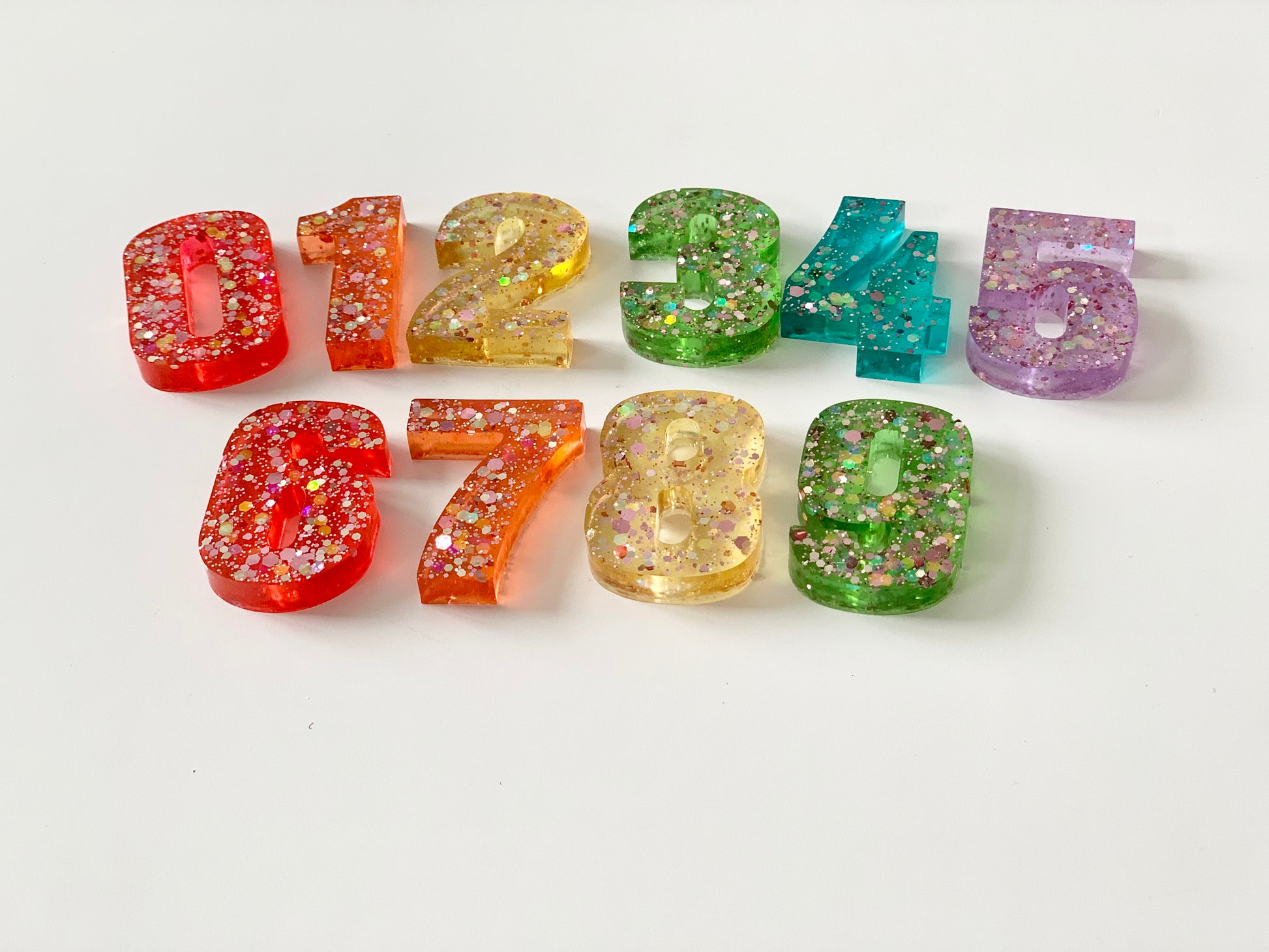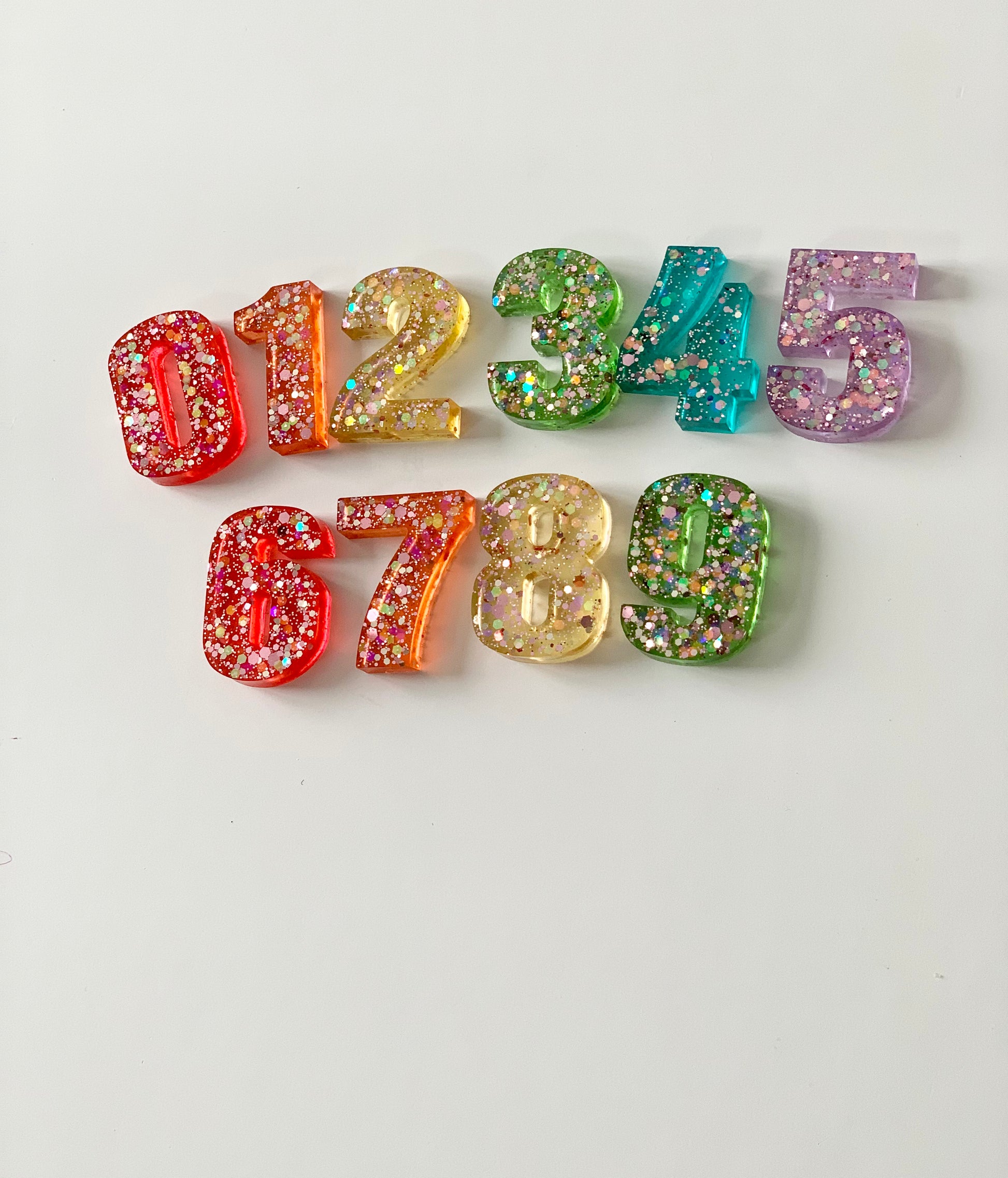 Rainbow Glitter Resin Numbers • Movable Numerical Set • Fits Flisat Insert
