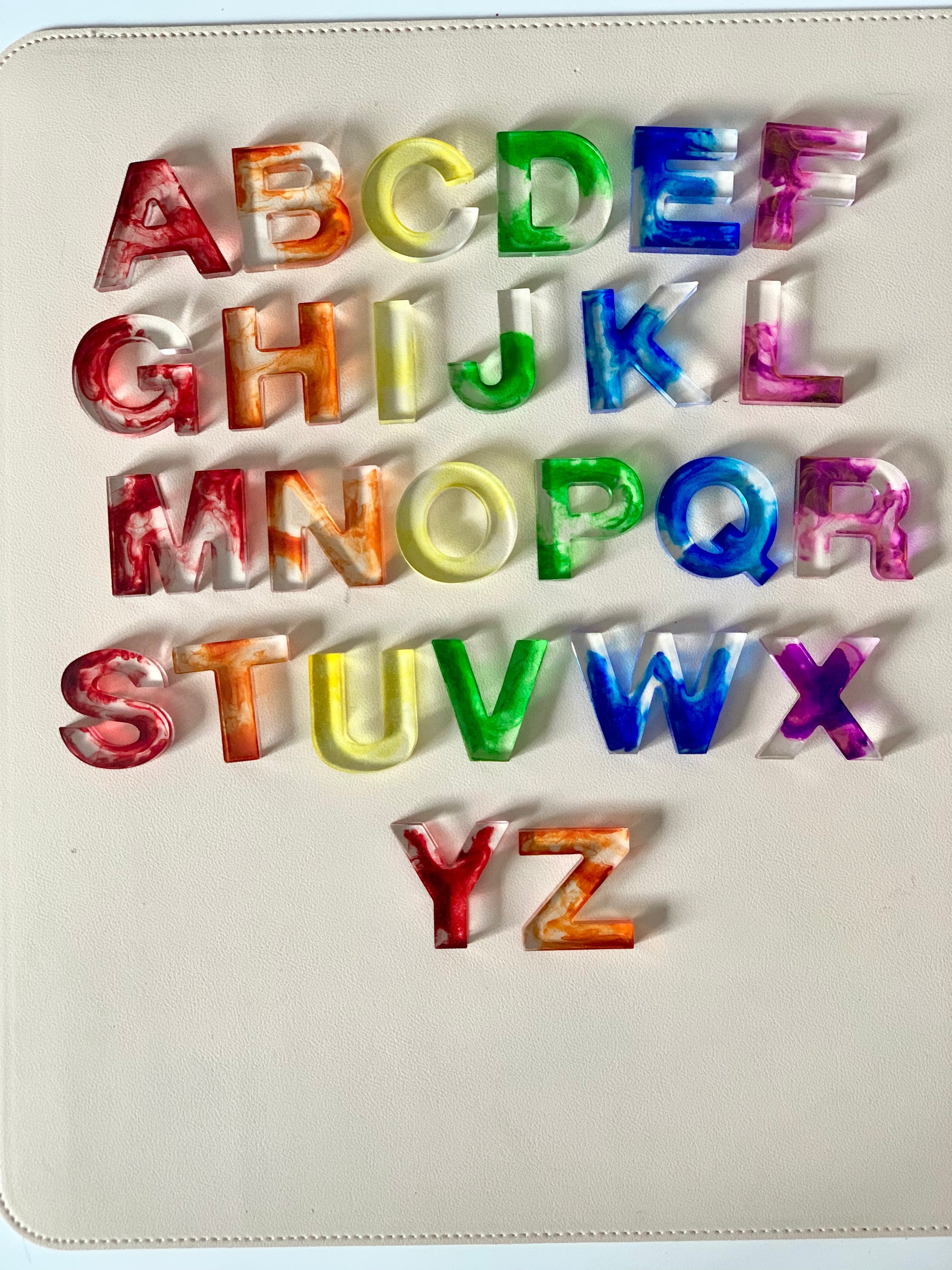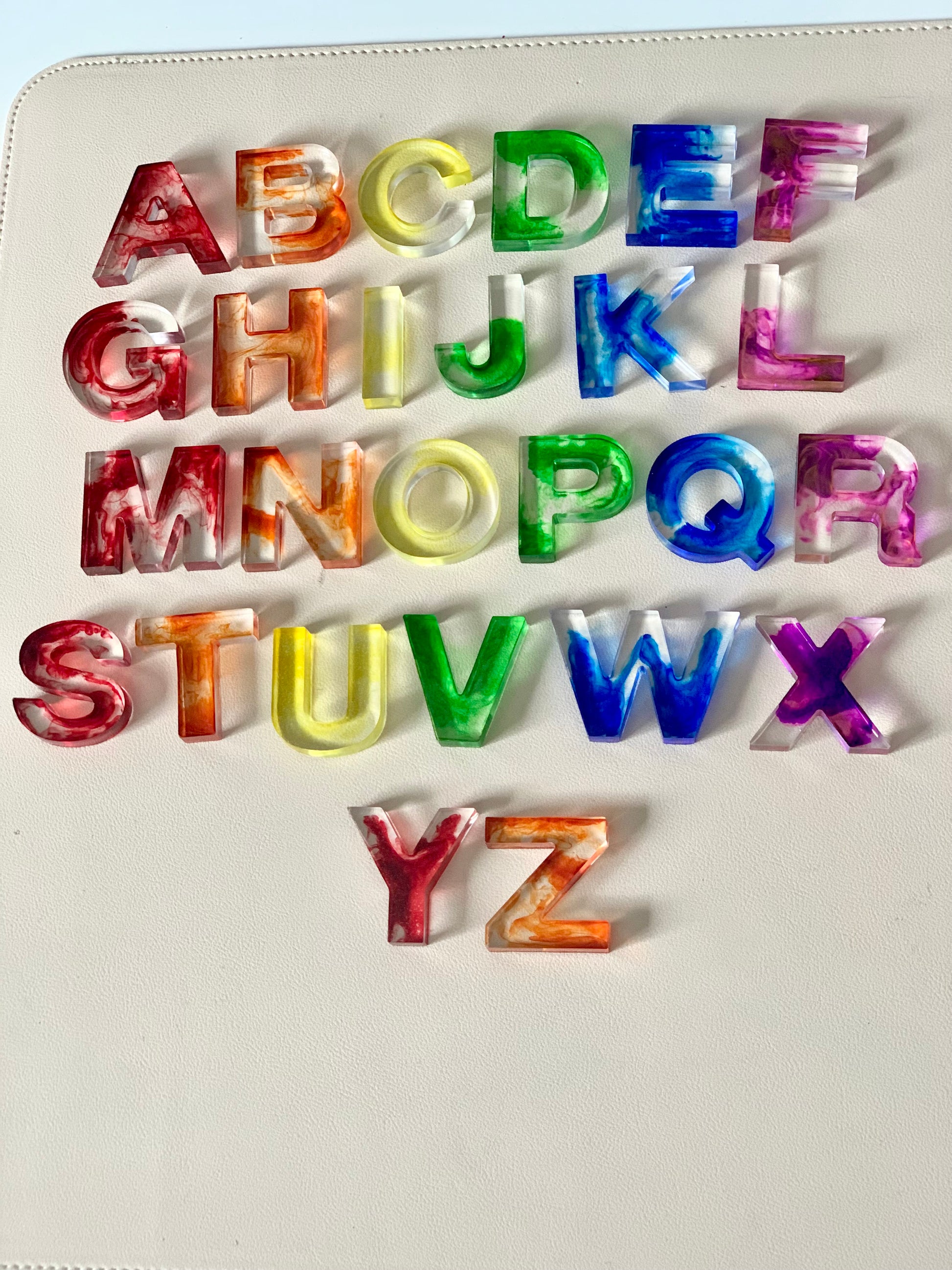 Rainbow Resin Uppercase Alphabet • Movable Alphabet Set • Fits Resin Letter Flisat Insert