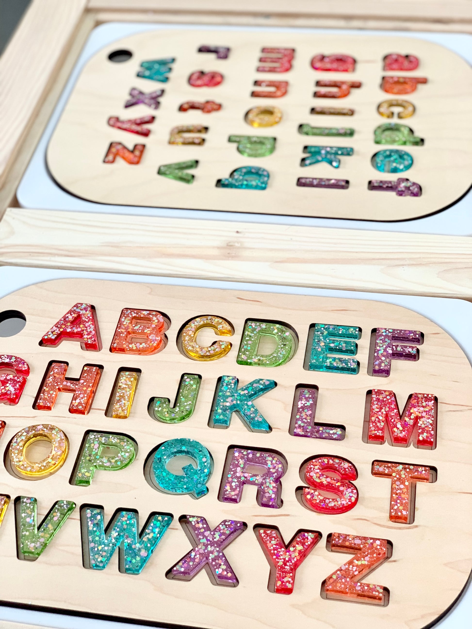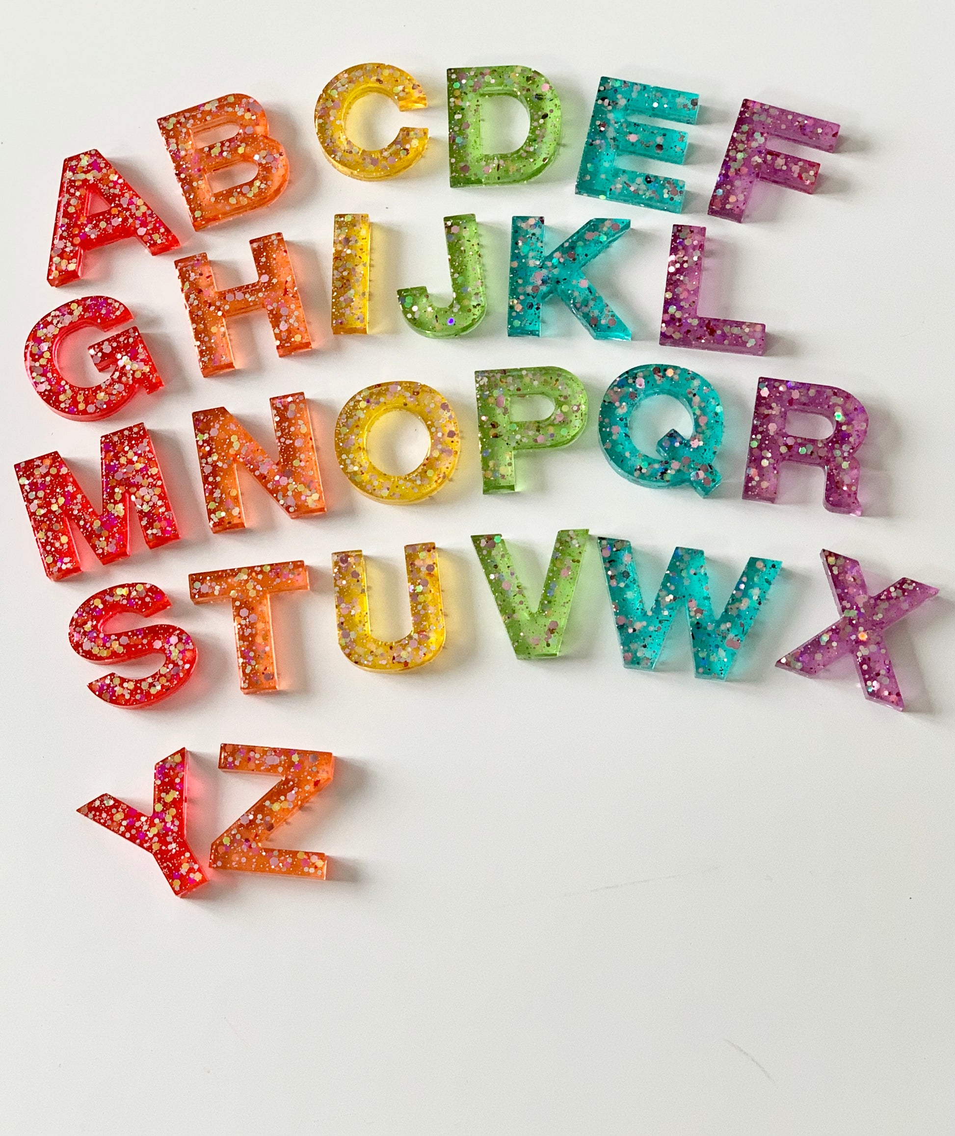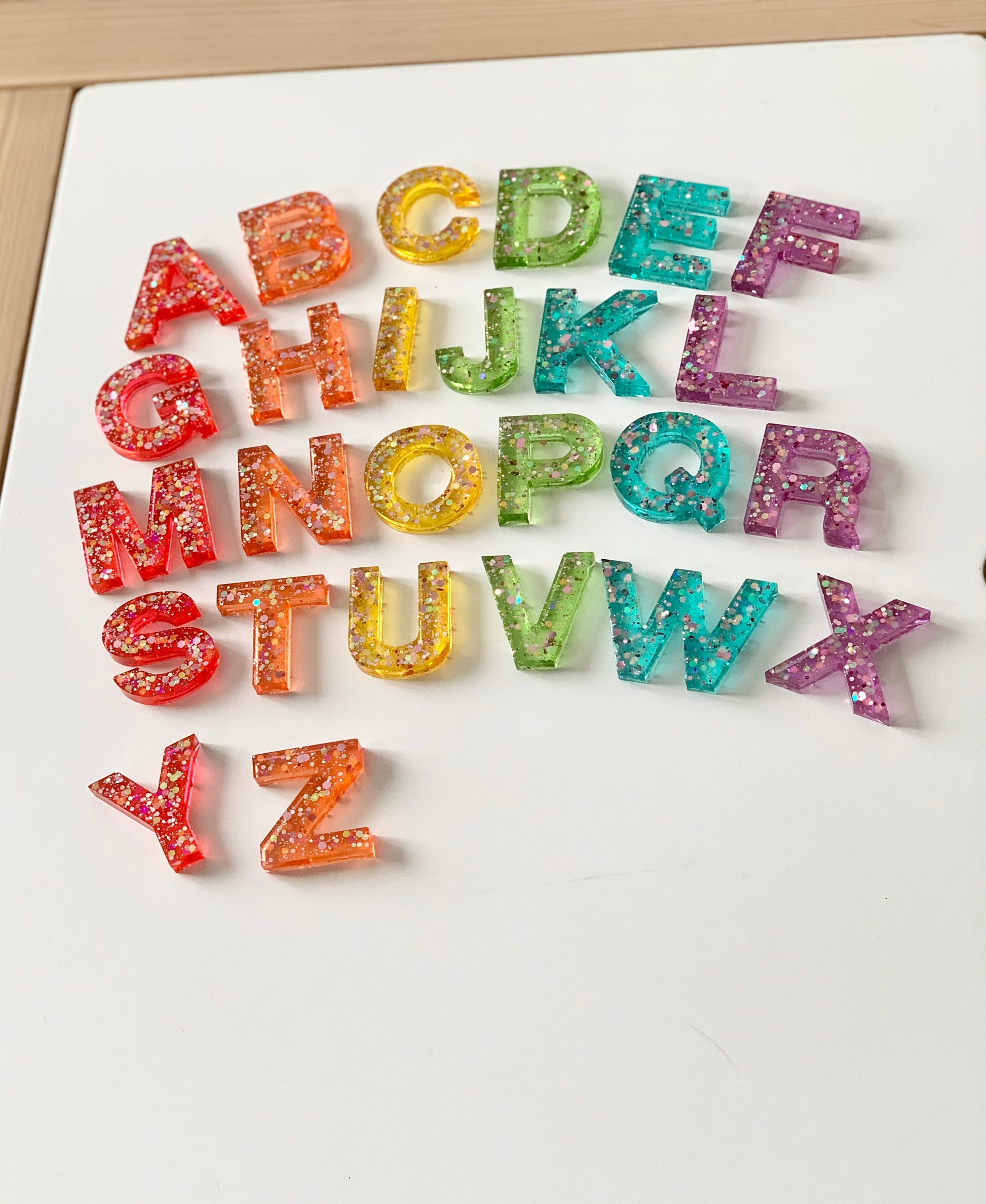 Rainbow Glitter Resin Uppercase Alphabet • Movable Alphabet Set • Fits Resin Letter Flisat Insert