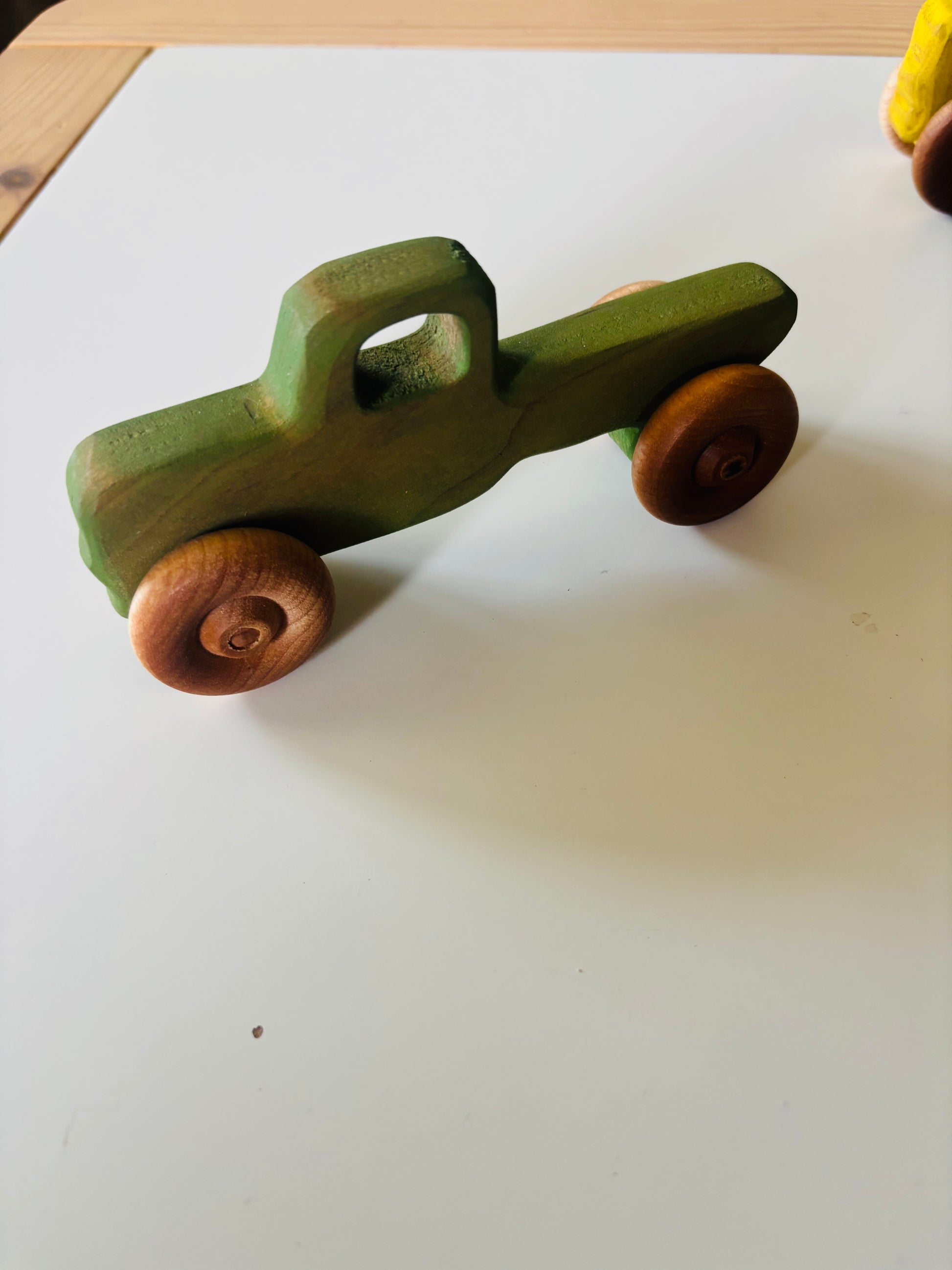 These toy vehicles are designed and produced completely in house made out of solid cherry or maple hardwood and sealed with a non toxic food safe sealer. They are sanded buttery smooth and perfect for little hands. Each one is made to order, giving you the option for personalization as well.
