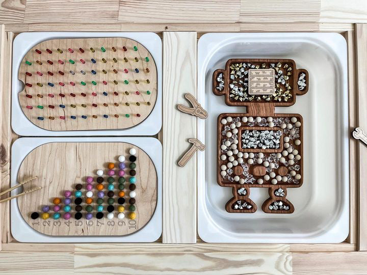 Love this! We have done so much including sensory, playdough, wool balls. Craftsmanship is beautiful, I highly recommend