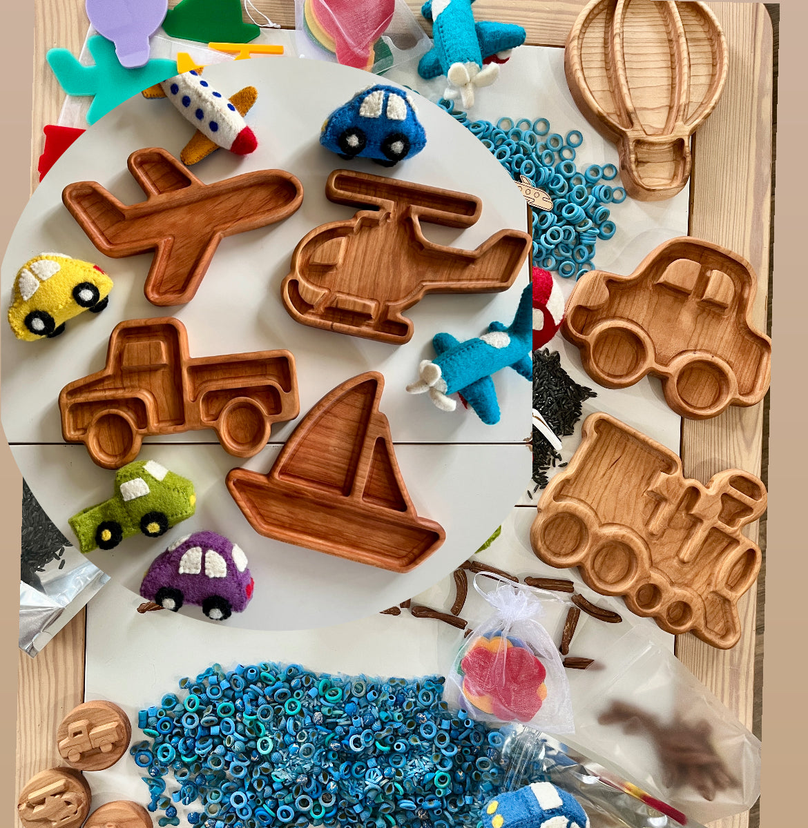 Wood Sensory Tray, Hot Air Balloon, Balloon, Kids Gift, Homeschool, Educational Toy, Wood Toys, Sensory Bin, Toddler Toys, Wood Sorting Tray