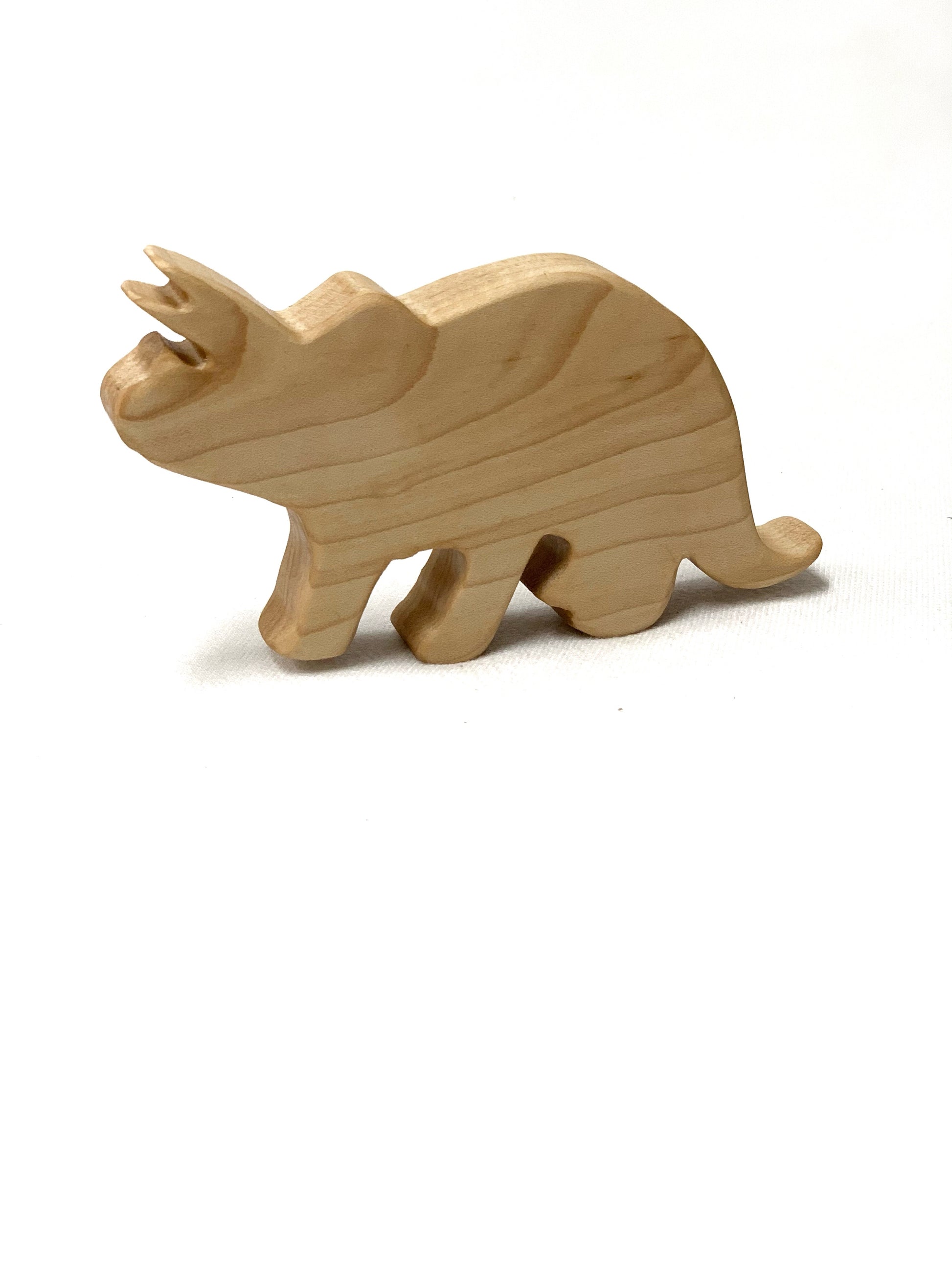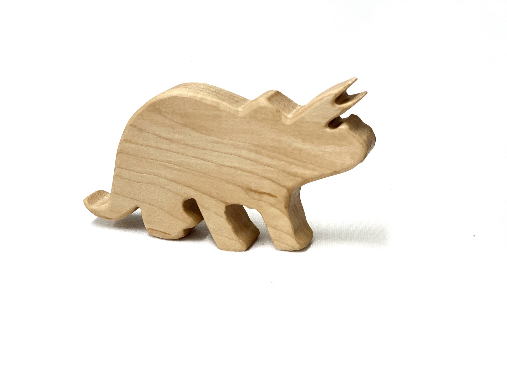 Each dino is cut in house, meticulously sanded smooth in every corner, nook and cranny; and finished with love. These heirloom quality toys are made to be passed down for generations. These are eco-friendly, safe, natural and long-lasting. Choose from beautiful light hardwood (maple) or rich dark hardwood (walnut).