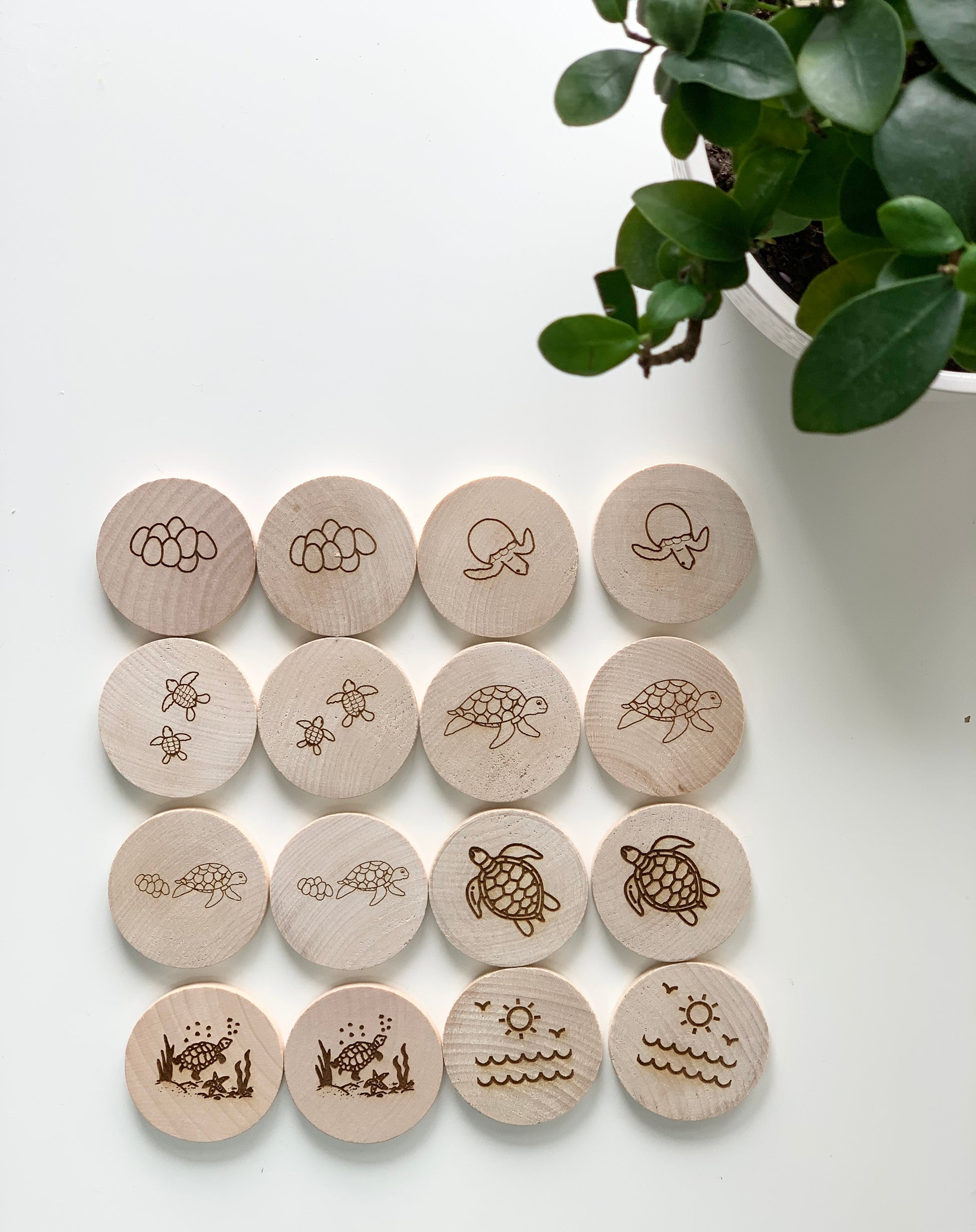 All images are laser burned into the wood, creating a permanent non toxic image. Order a set today to keep your little one busy.