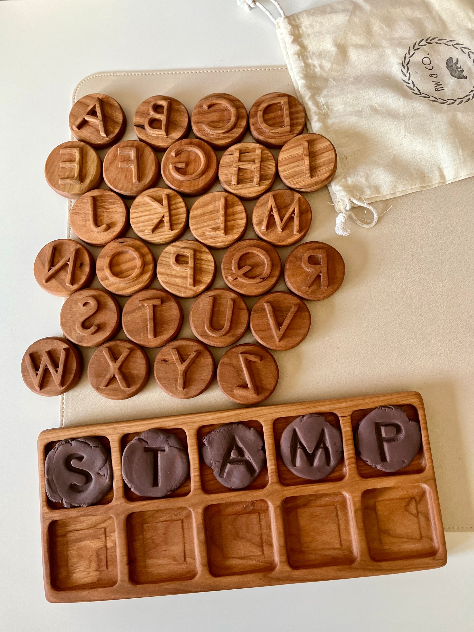 Uppercase Alphabet Play Dough Stampers — Cherry Wood
