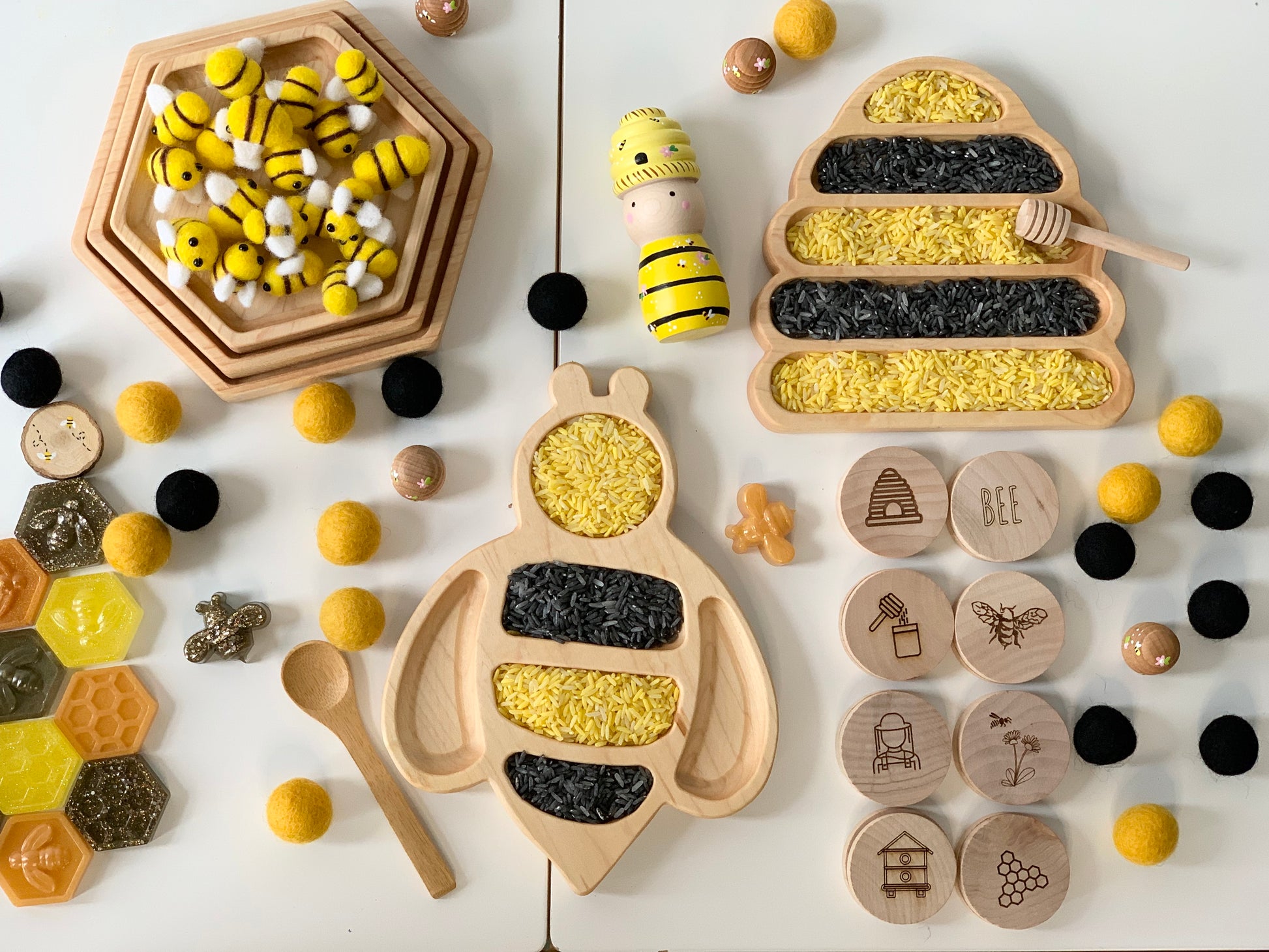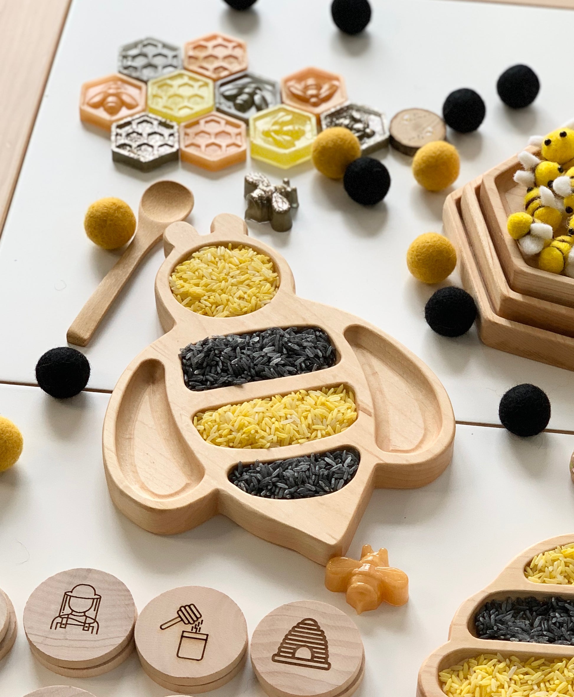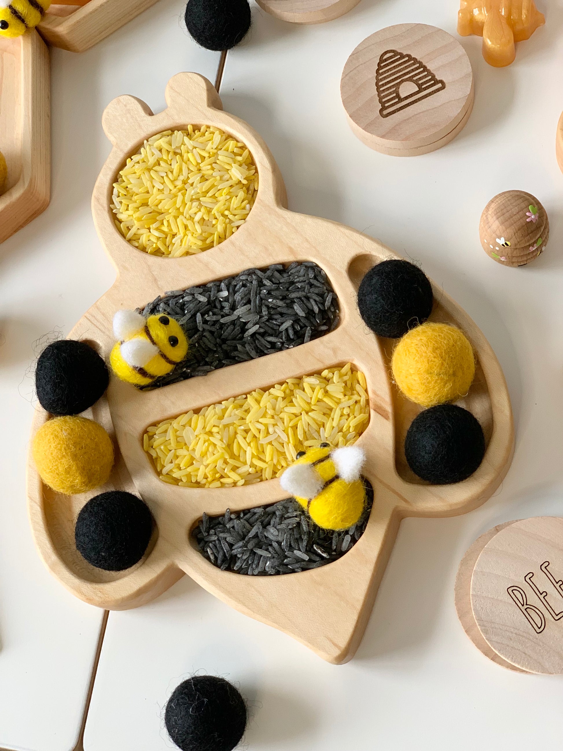 Wood Sensory Tray | Bumblebee Plate | Bees | Kids Gift | Homeschool | Flisat | Montessori | Sensory Bin | Wood Toys | Sensory Play | Sensory