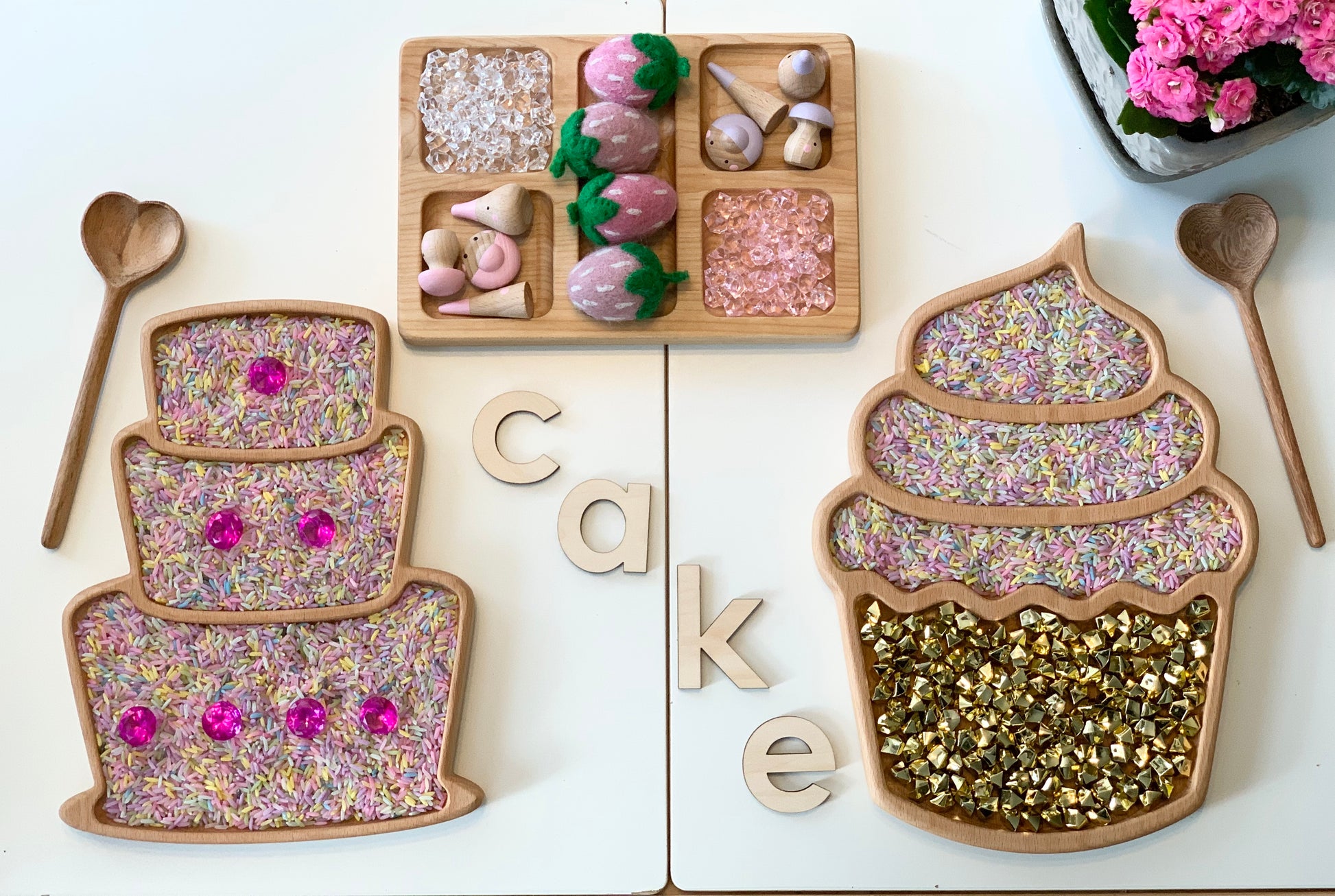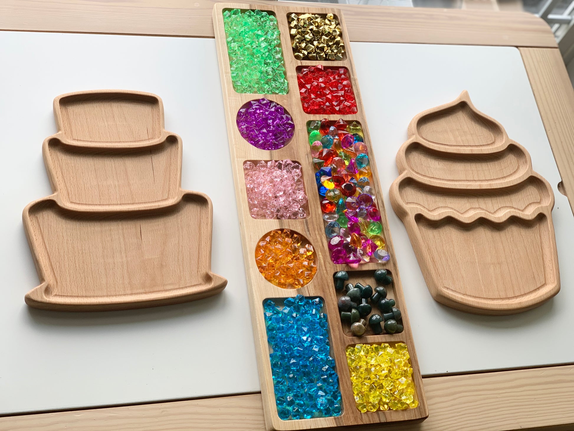 Introducing our exquisite Wooden Sensory Tray: A Cake-inspired Sensory Delight for Tactile Exploration!