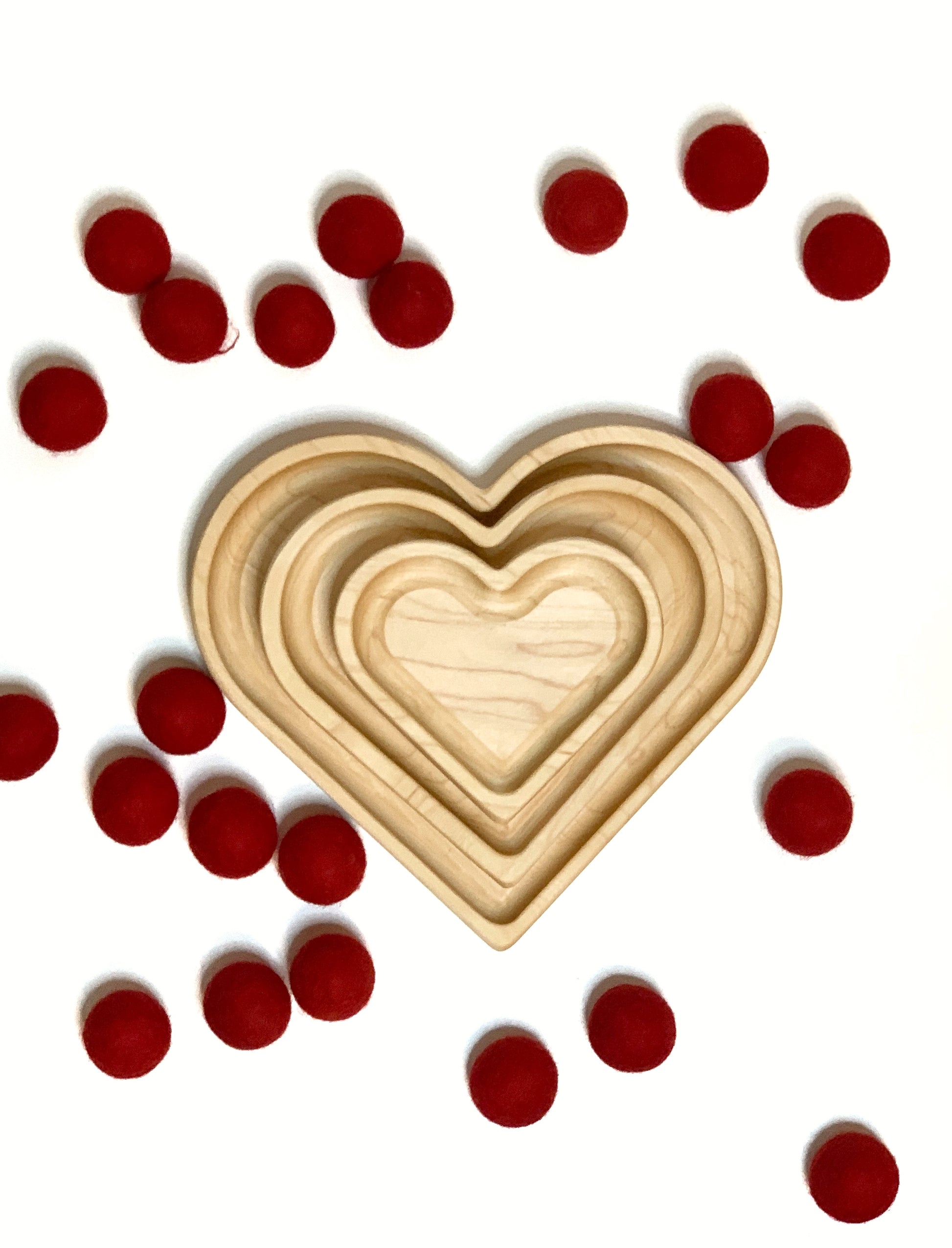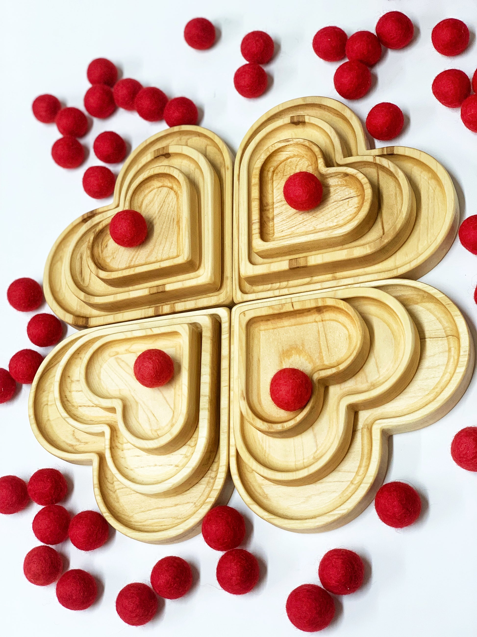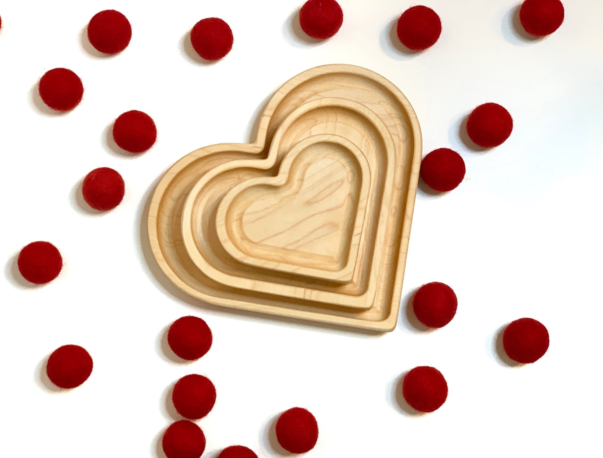 These Nesting Hearts are fun for all year around but especially fun for Valentine’s Day! Use them for plates, sensory trays, tinker trays, throw your rings in one — so many cute options!