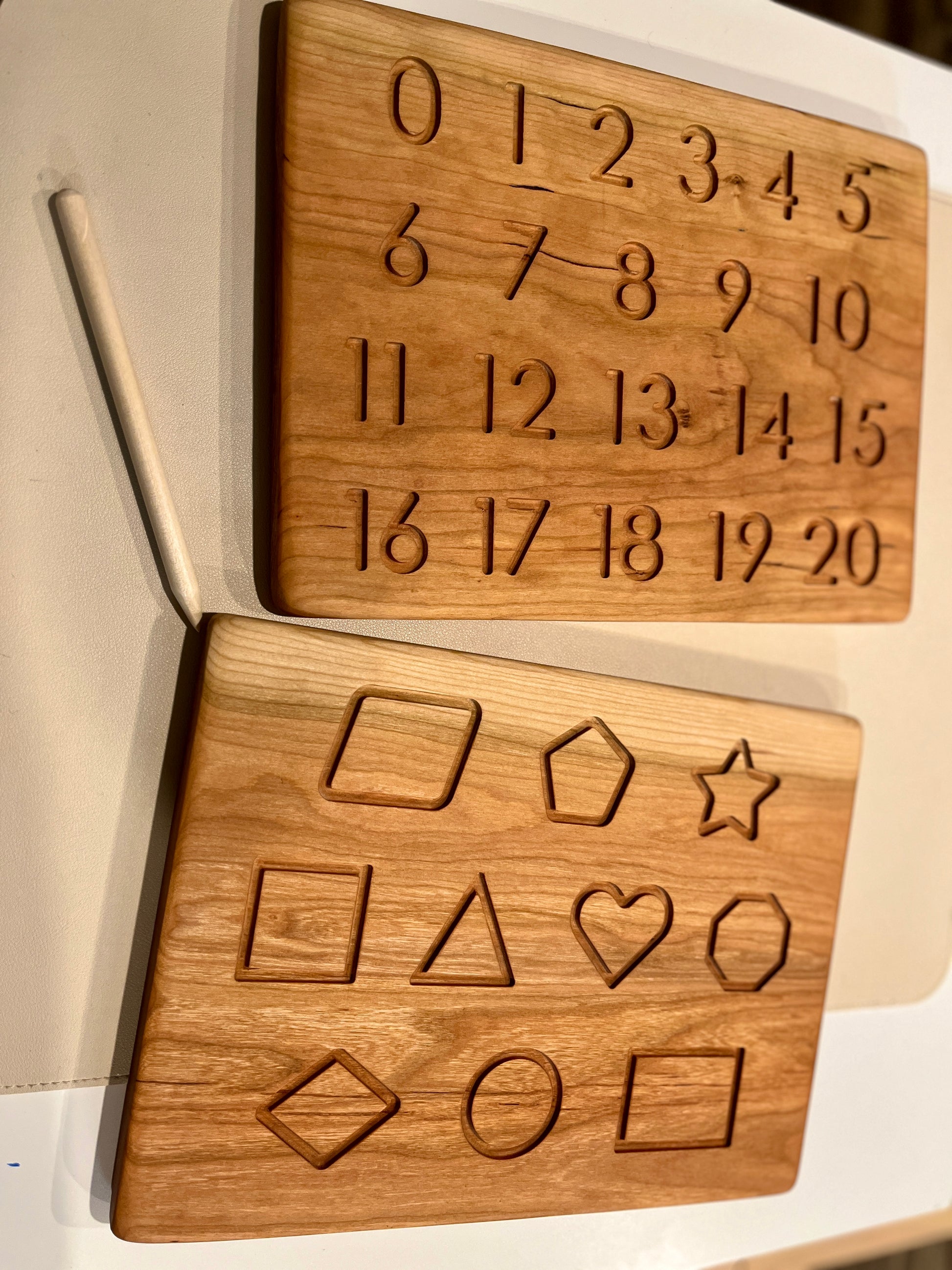 Designed for use with our stylus’, discover the perfect tool to enhance your child's learning with our Wooden Tracing Board. Expertly crafted from high-quality, eco-friendly wood, this educational toy offers a hands-on approach to mastering shapes and numbers. Each one is meticulously engraved, providing tactile and visual learning experiences that promote fine motor skills, number and shape recognition, and early writing abilities. Designed for durability and safety, our tracing board is ideal for toddlers and preschoolers, ensuring endless hours of educational fun. Make learning interactive and engaging with our Wooden Tracing Board, where the journey to literacy begins with a touch.