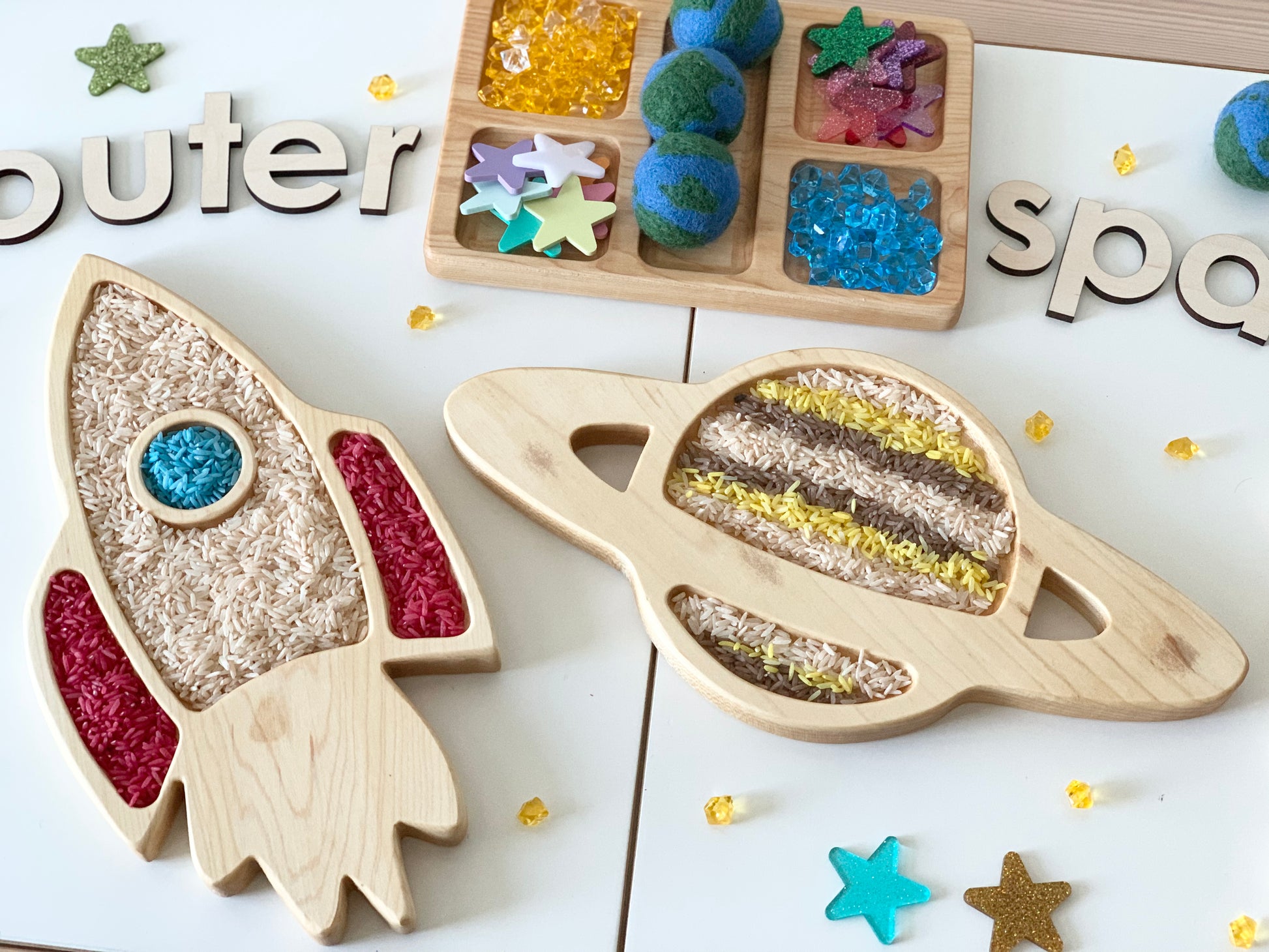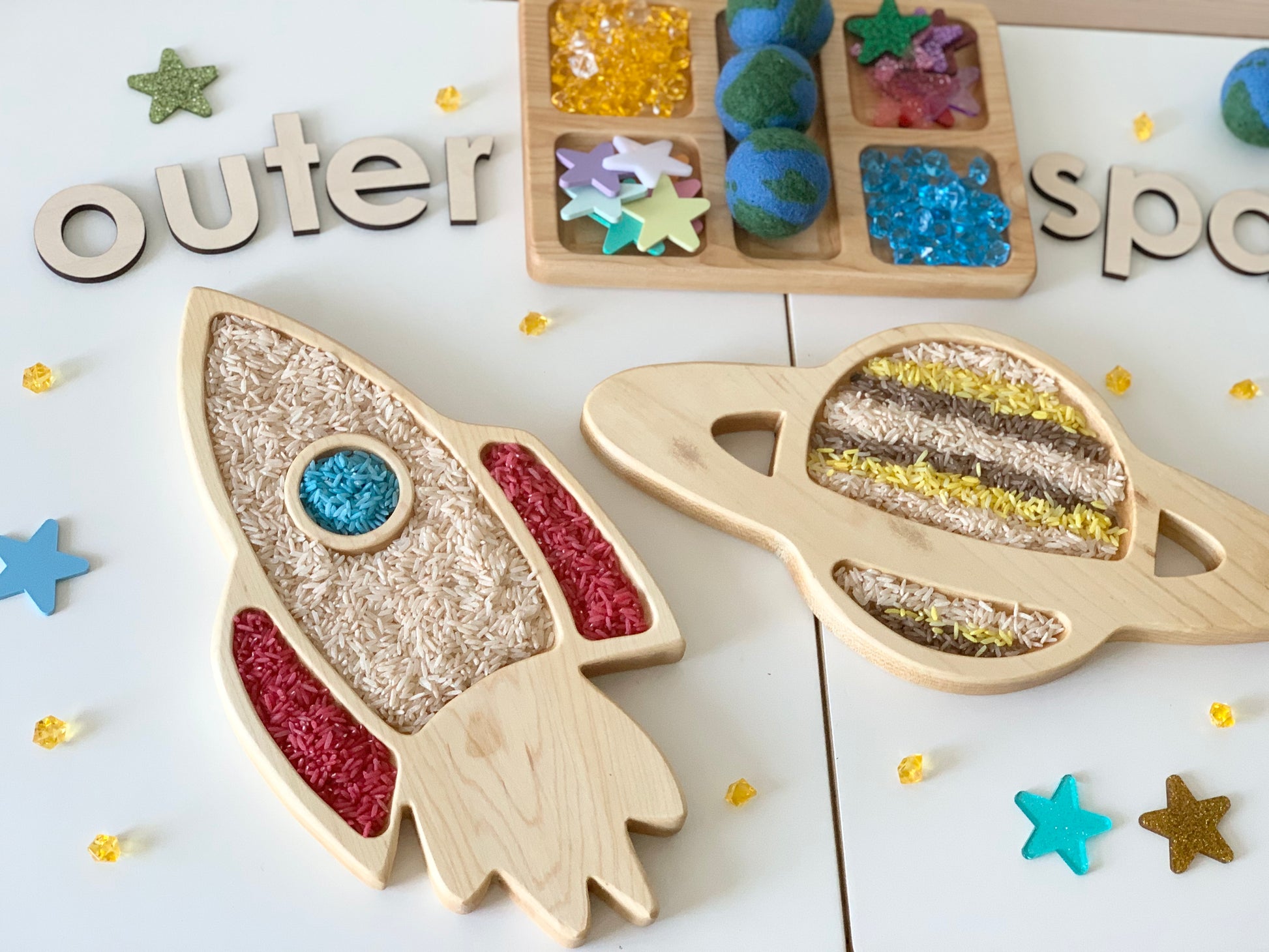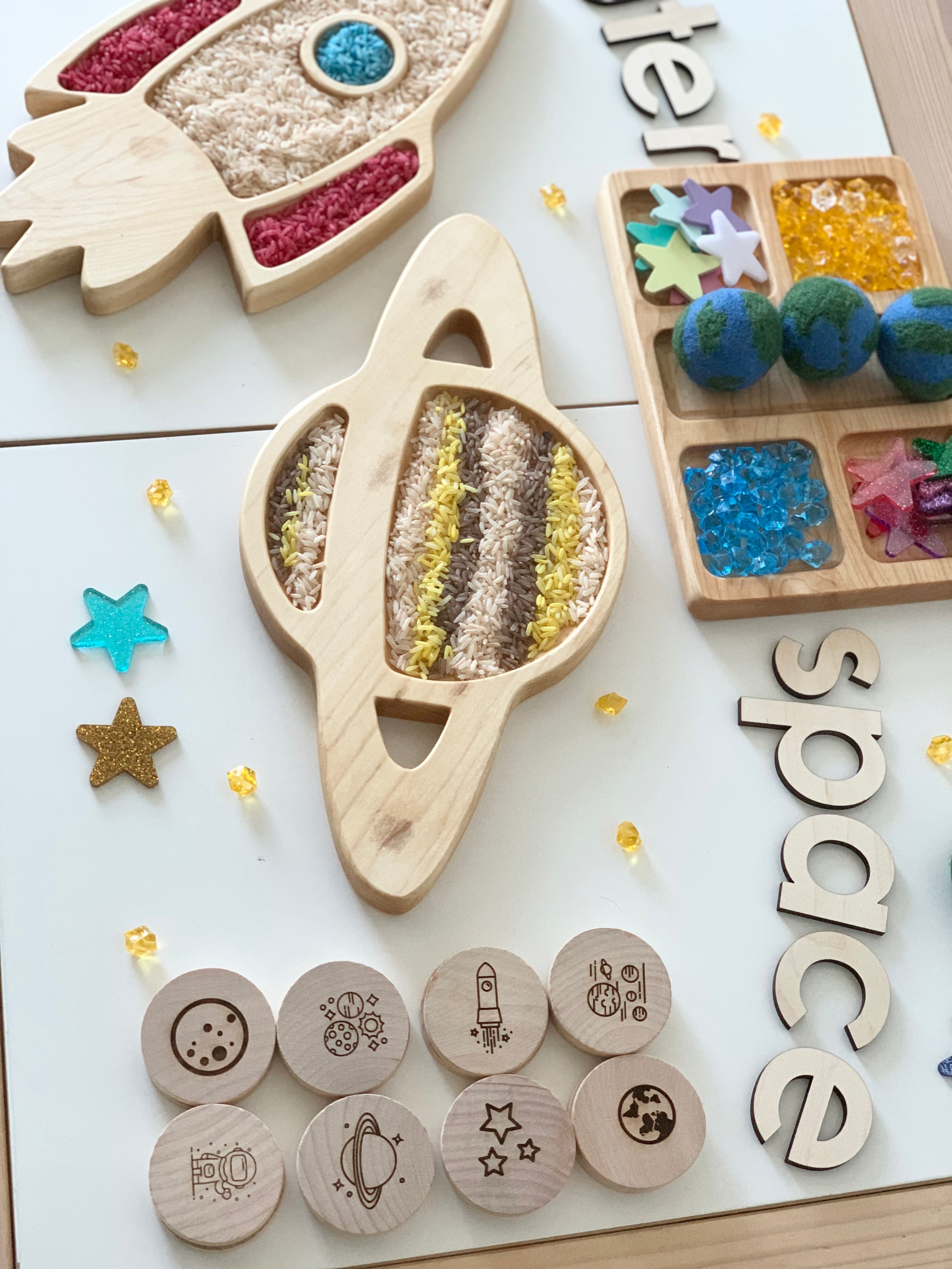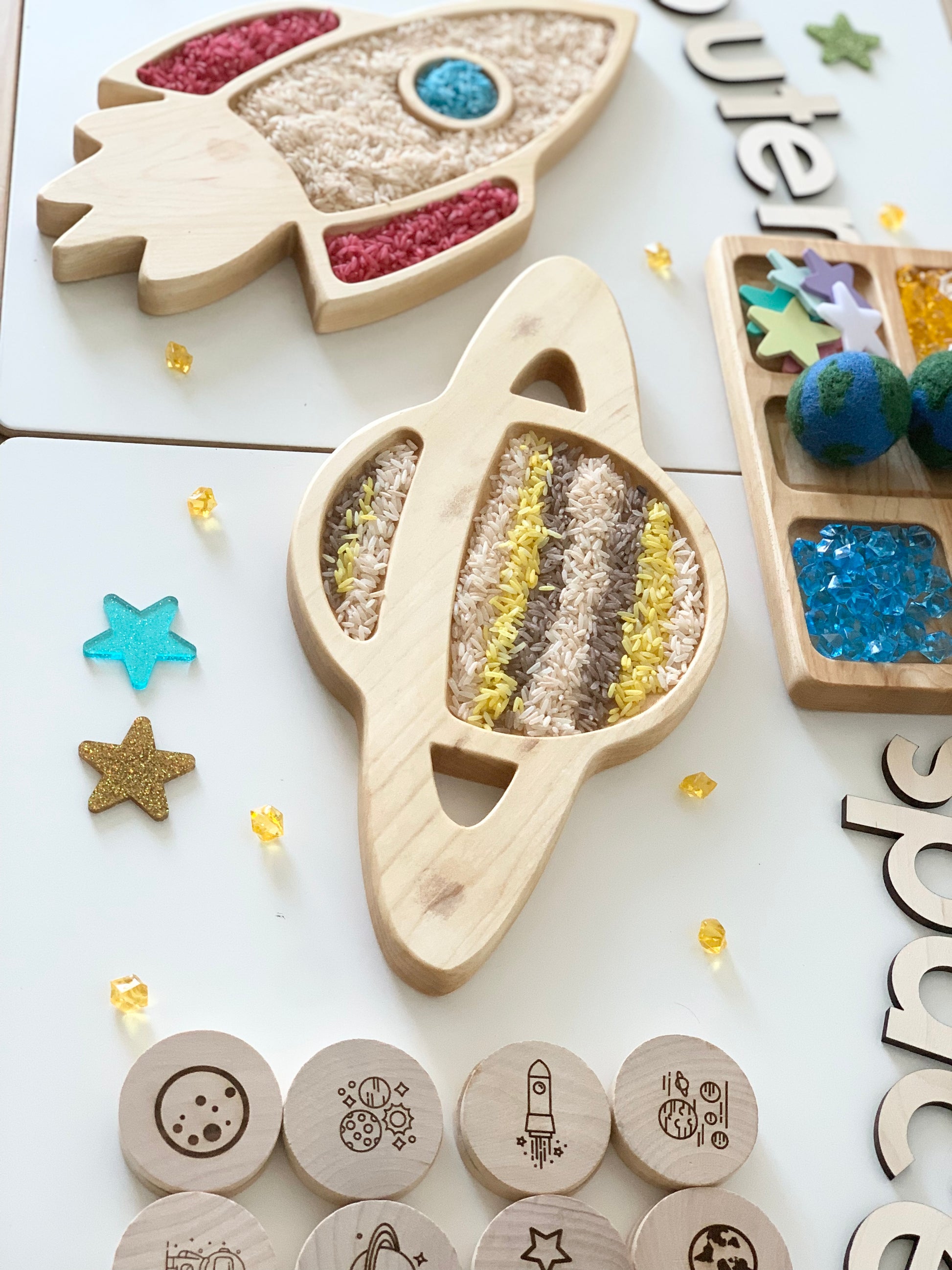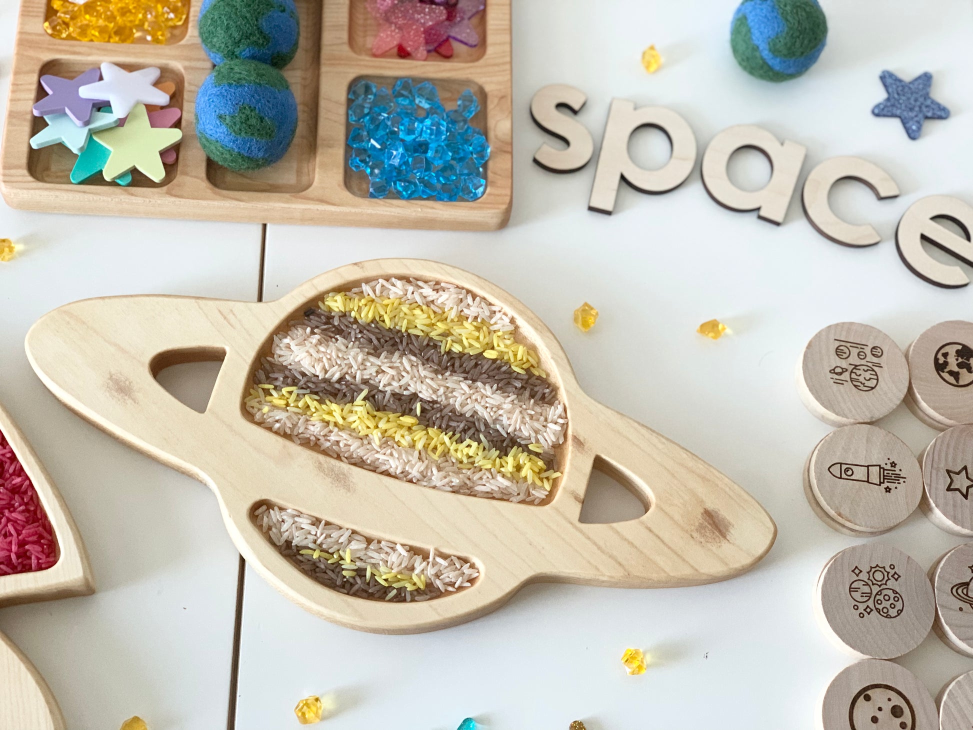 Wood Sensory Tray, Saturn Plate, Sensory Play, Space Play, Kids Gift, Outer Space Toys, Homeschool, Educational Toy, Wood Toys, Sensory Bin