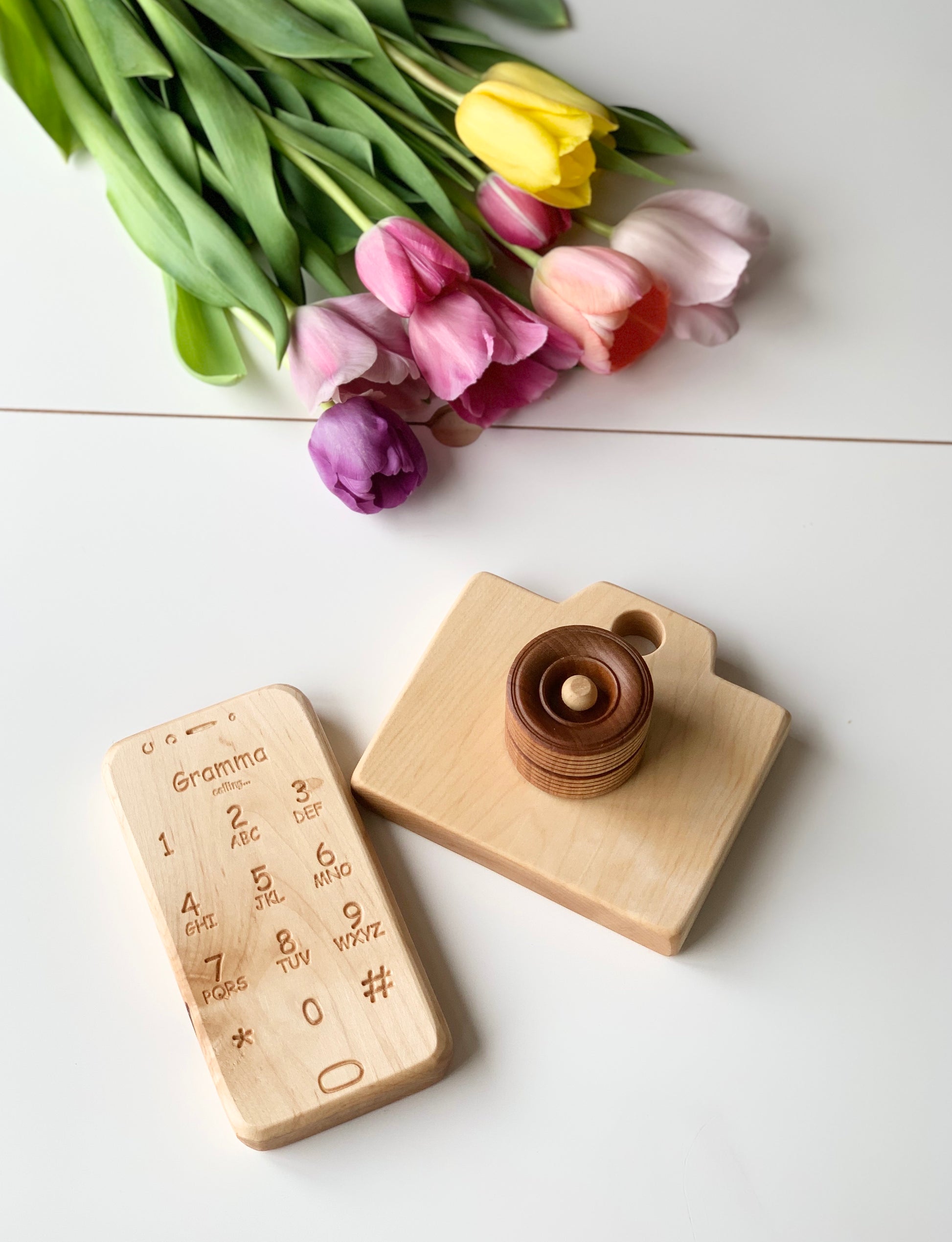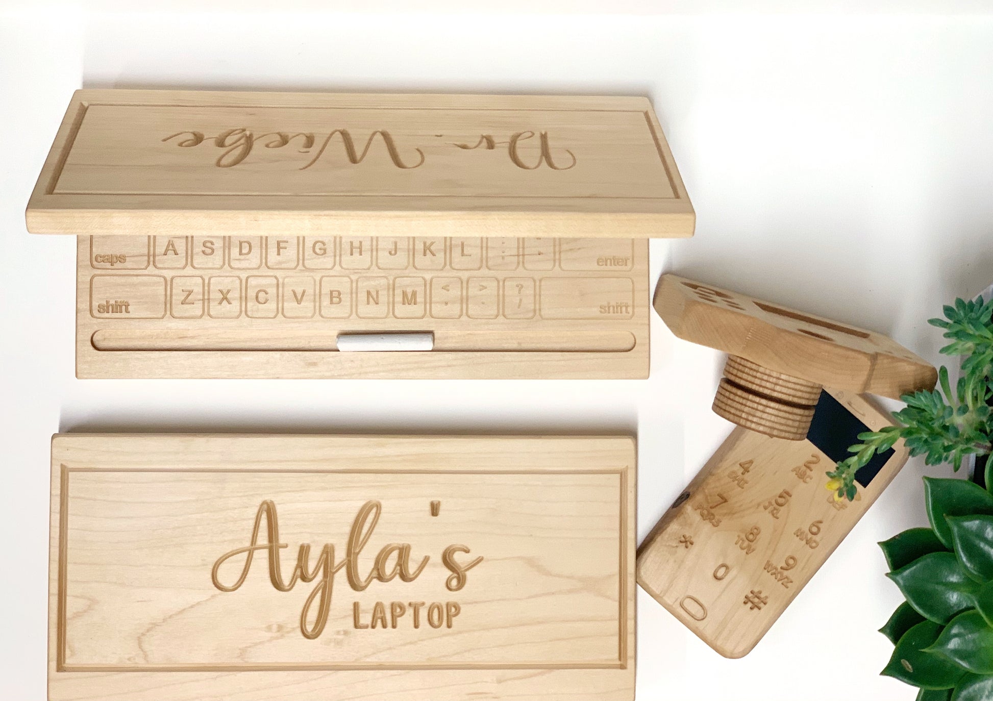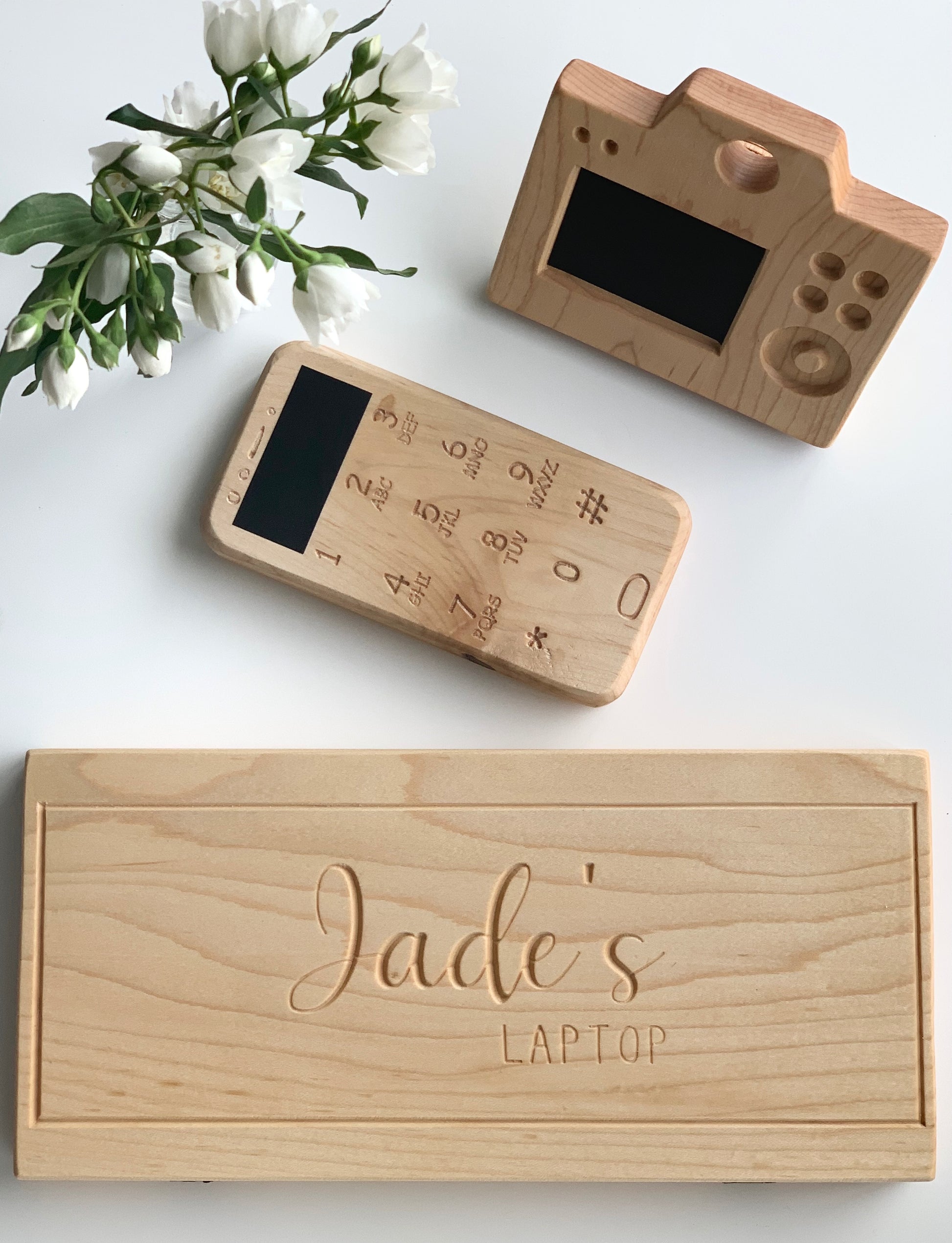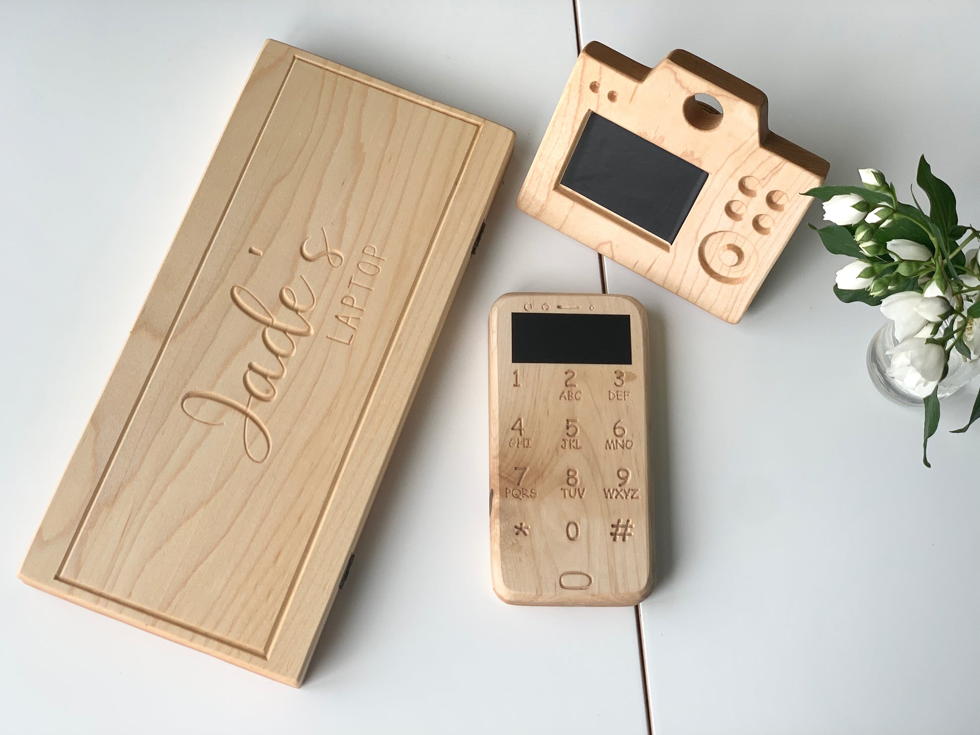 Complete your technology combo with our wooden laptop and cell phone toys !