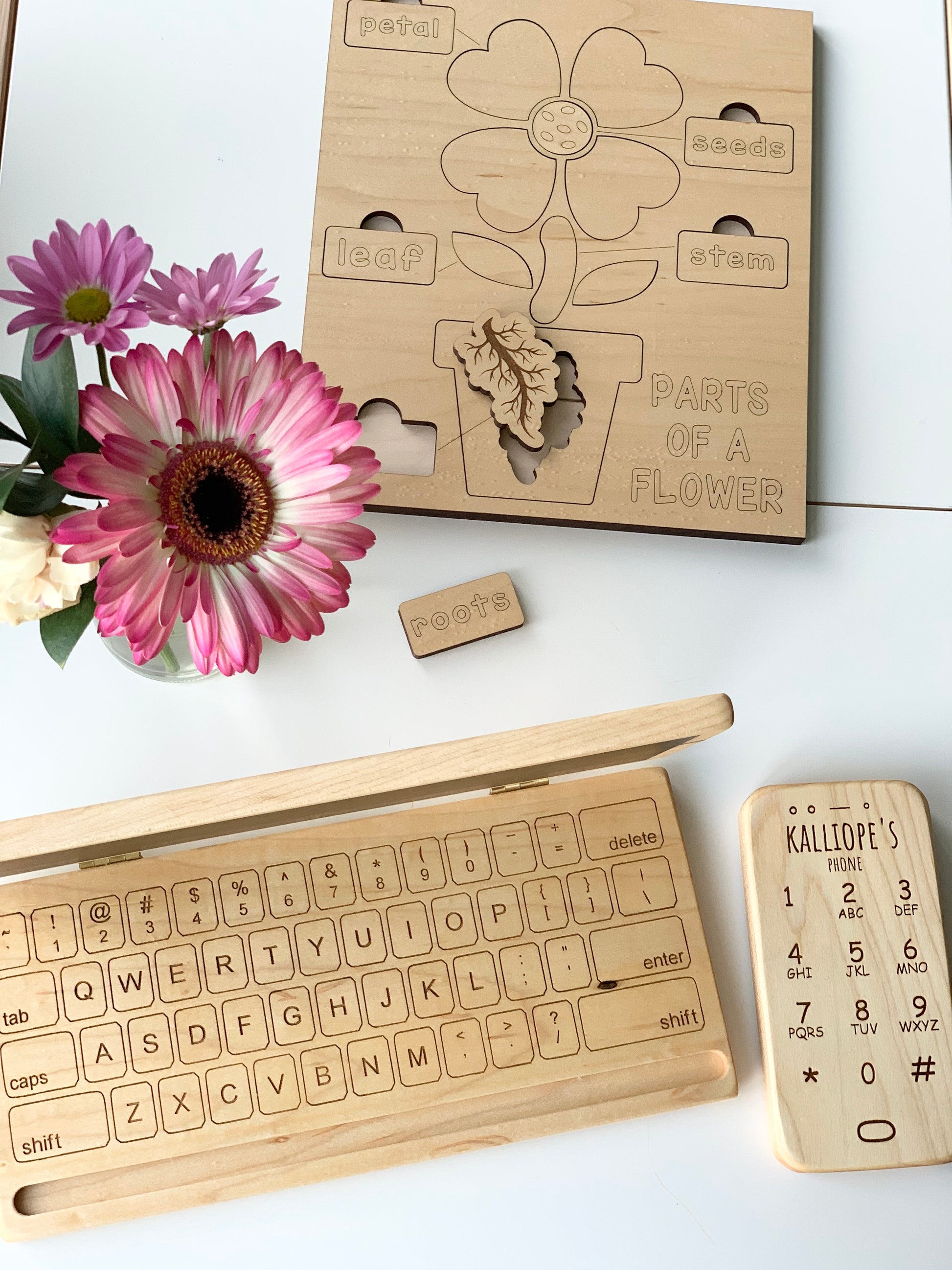 These wooden phones are designed and made completely in house, featuring engraved details and the option for personalization. Is that Daddy or Grandma calling?! These phones are made out of solid, natural maple hardwood and sealed with a non toxic food safe sealer. They are sanded buttery smooth and perfect for little hands. Every phone is made to order, giving you the option for personalization as well.
