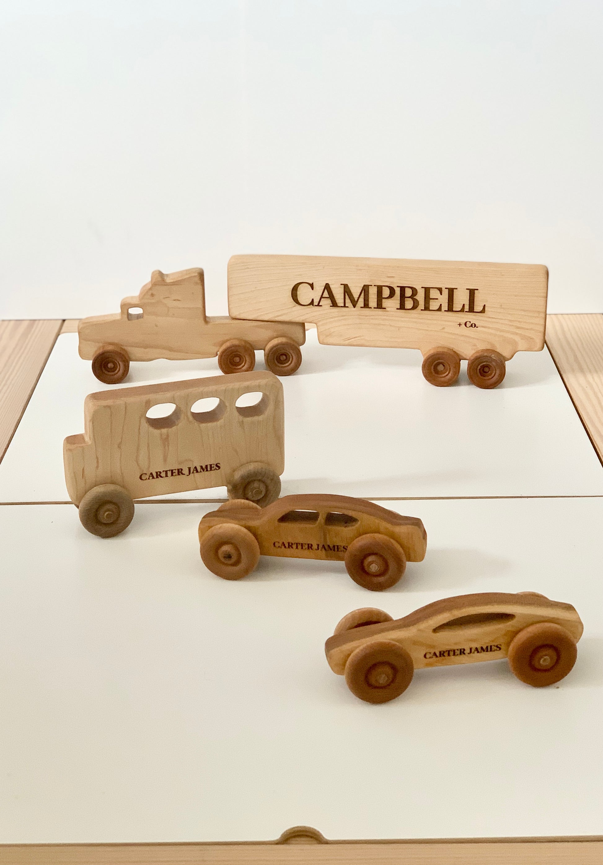 These toy trucks are designed and produced completely in house made out of solid, natural maple hardwood and sealed with a non toxic food safe sealer. They are sanded buttery smooth and perfect for little hands. Each truck is made to order, giving you the option for personalization as well.
